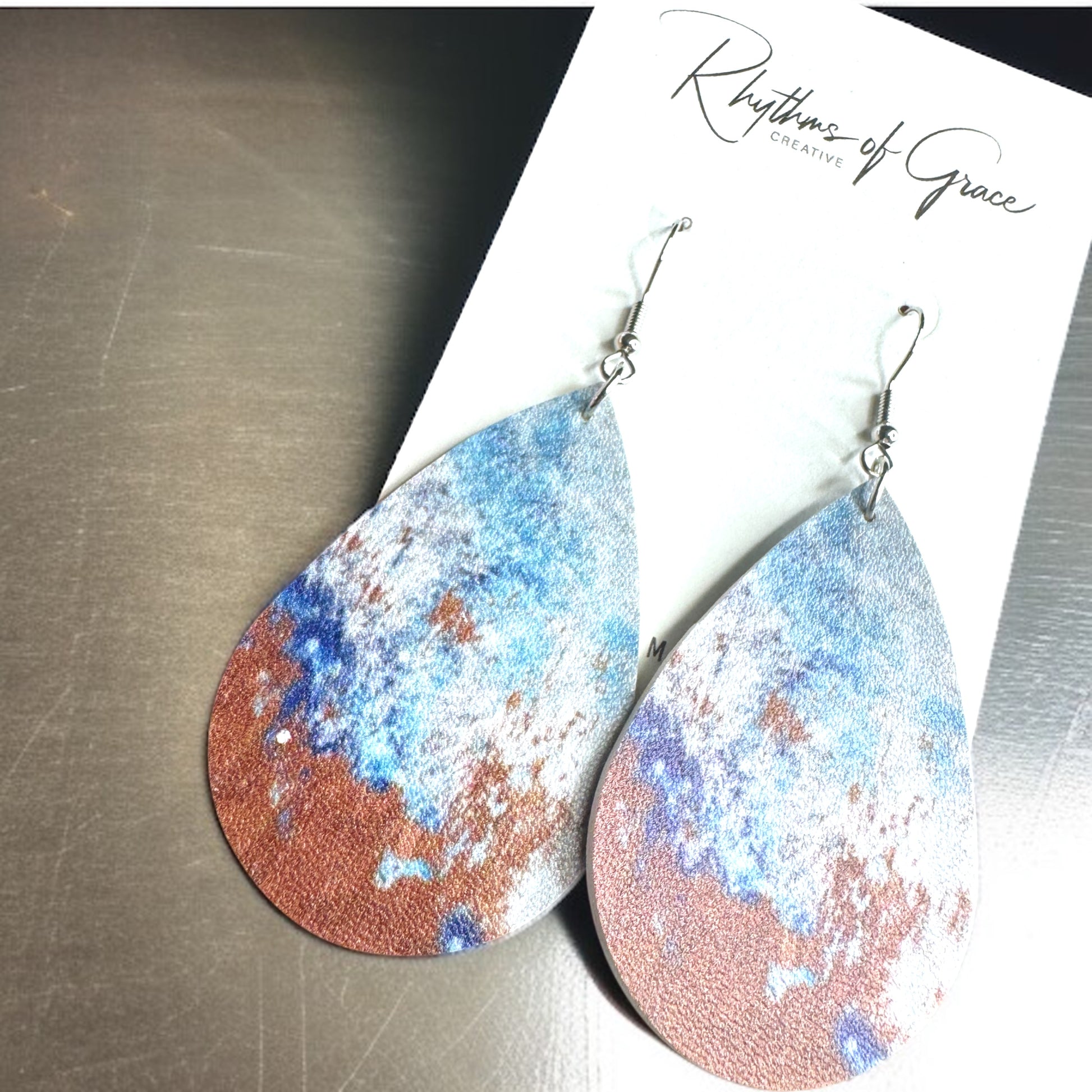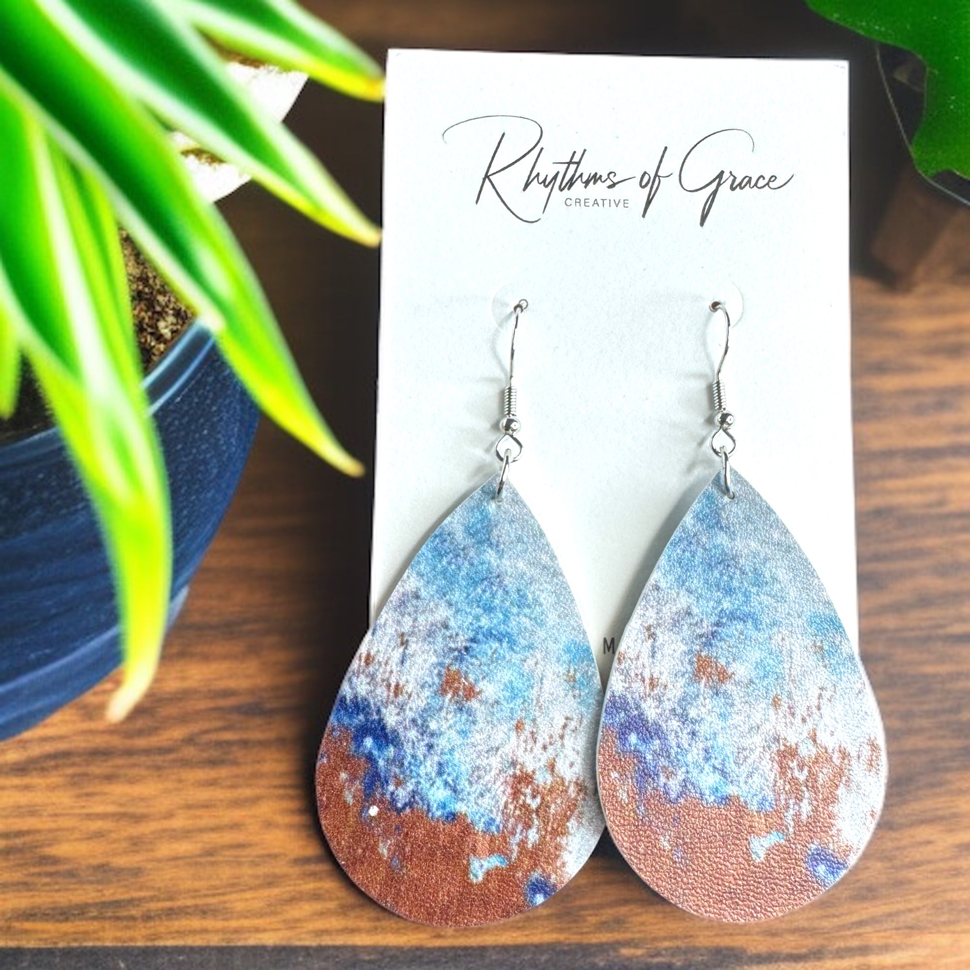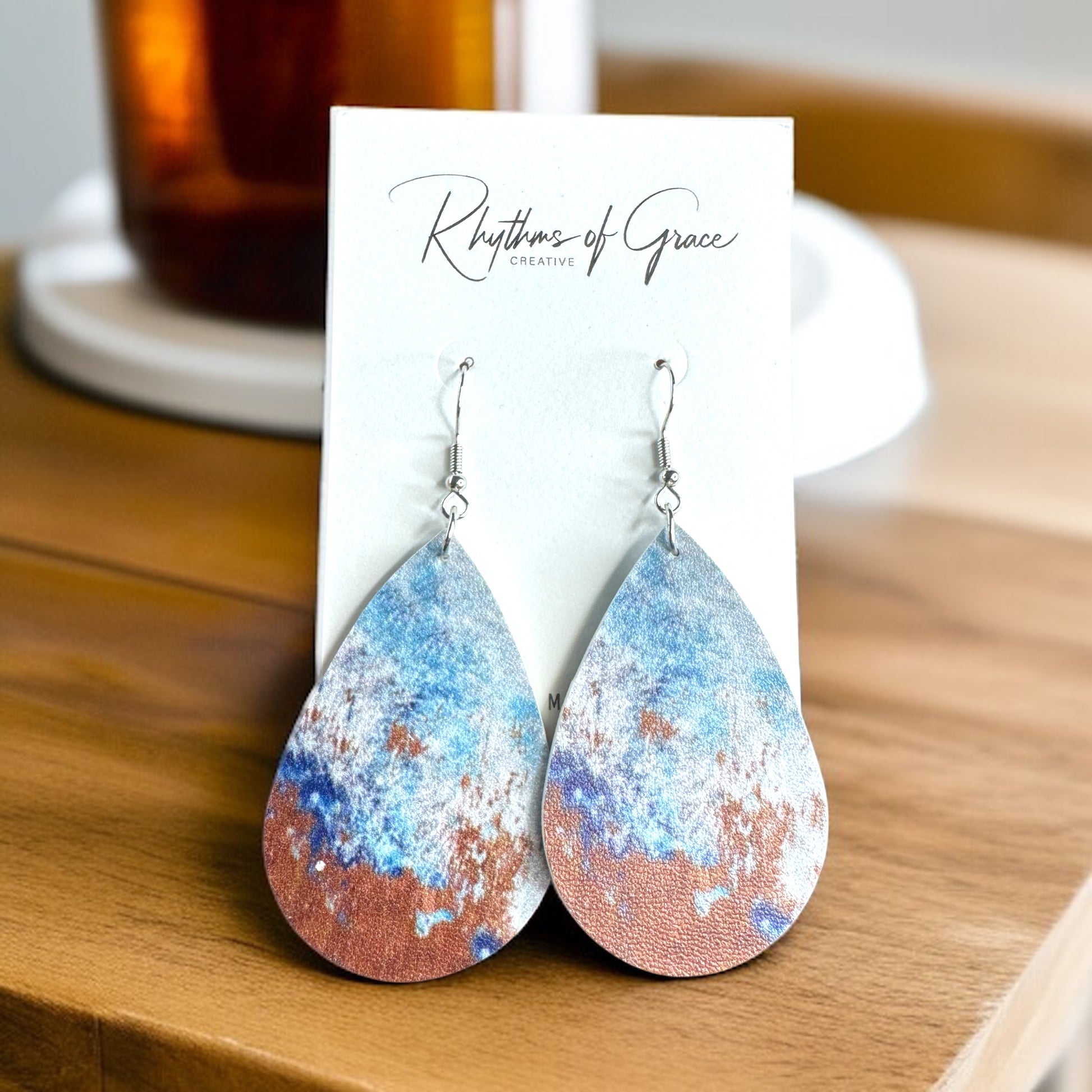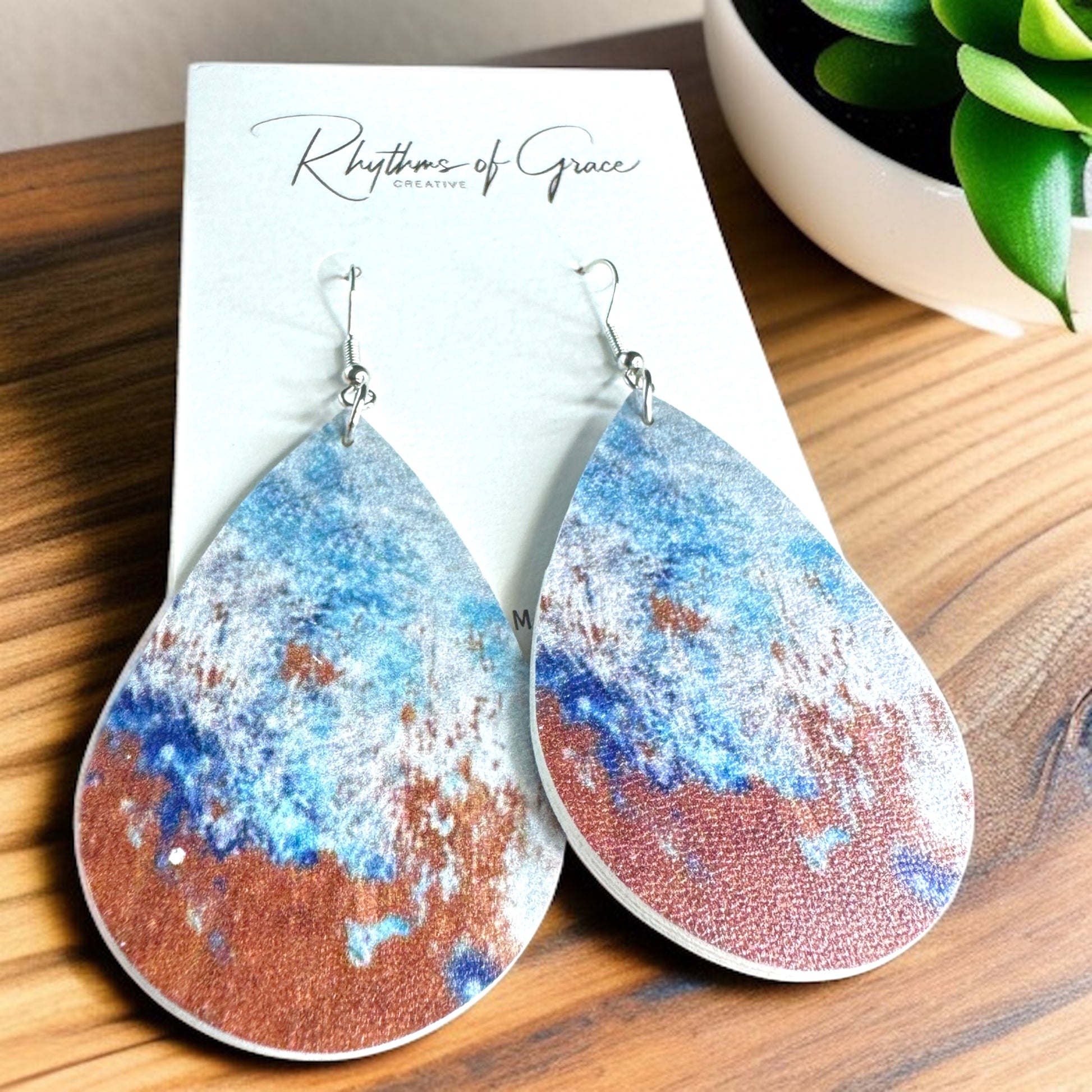 Elevate Your Style with Blue, White & Brown Teardrop Earrings! 🌟
