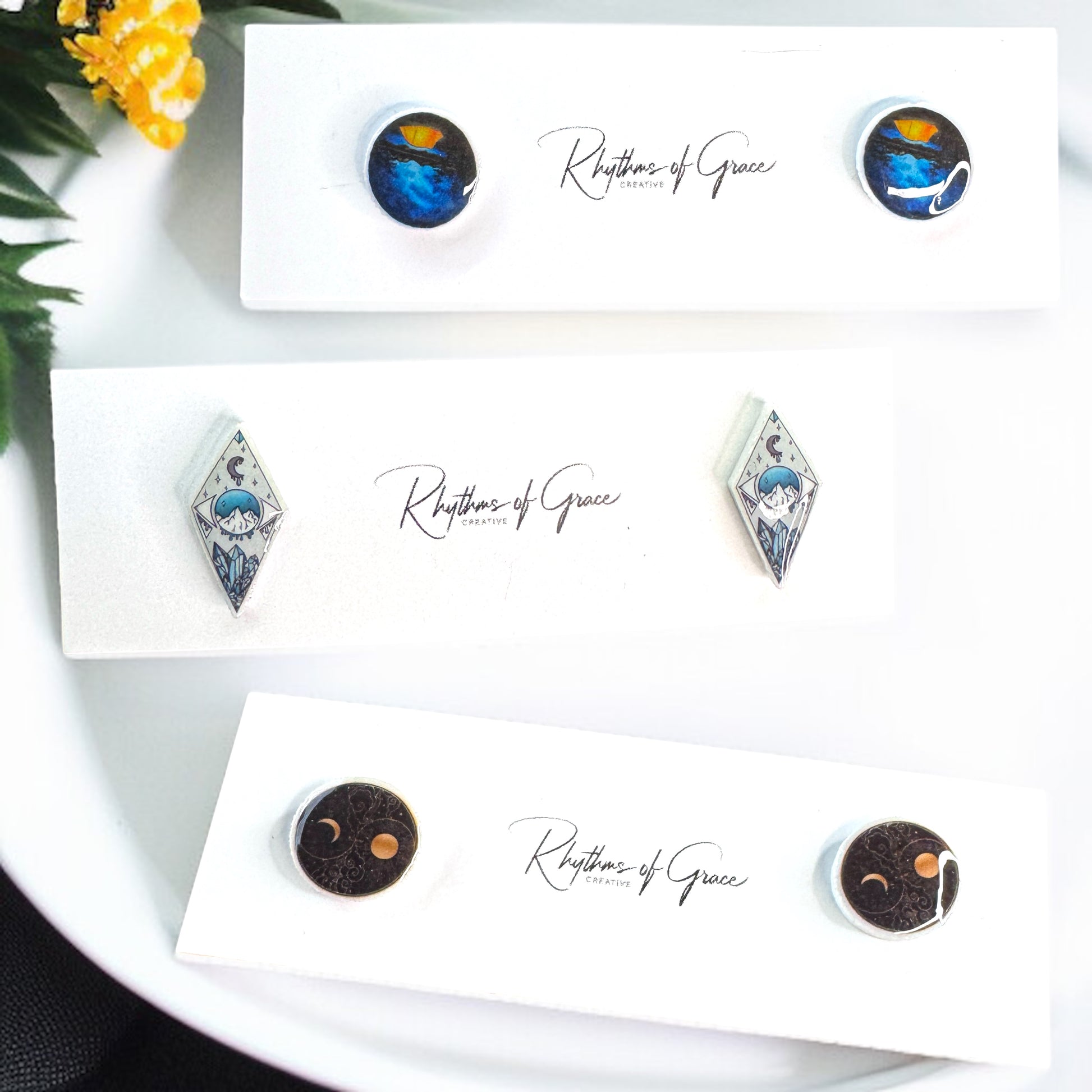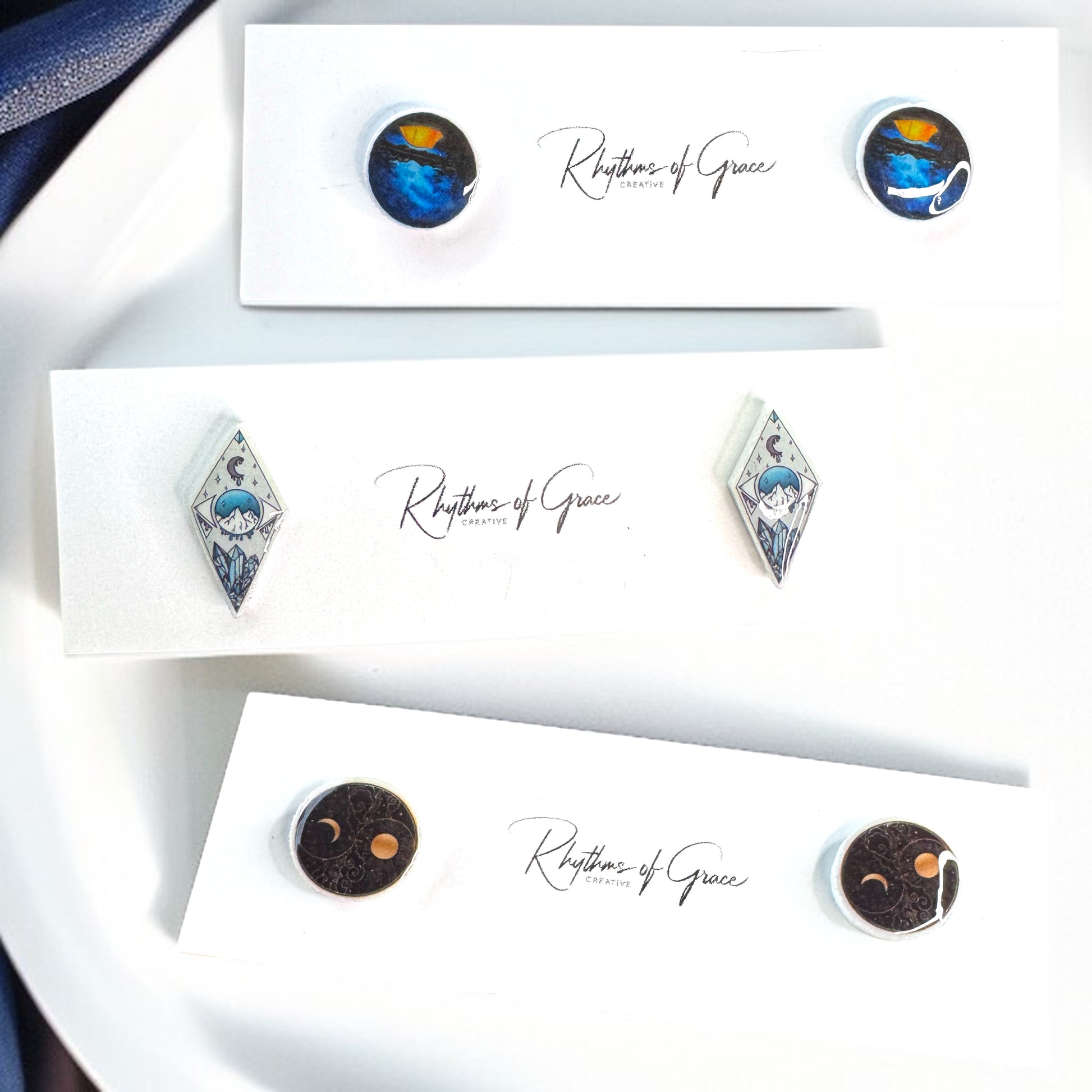 Reach for the stars with our enchanting celestial stud earrings! Choose your cosmic vibe with three dreamy styles: