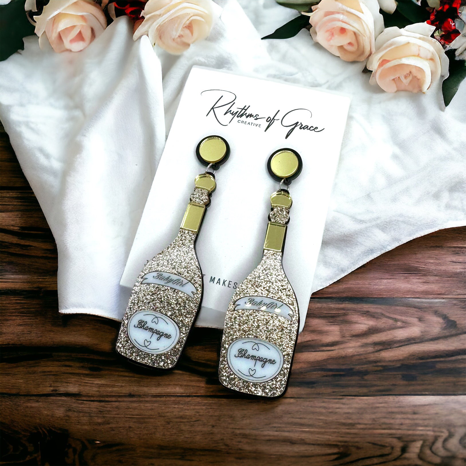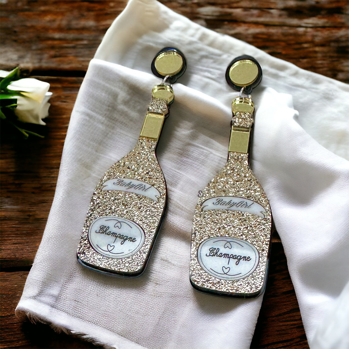 Champagne Earrings - Champagne Bottle, Wine Earrings, Wine Jewelry, Poppin Bottles, Wine Accessories