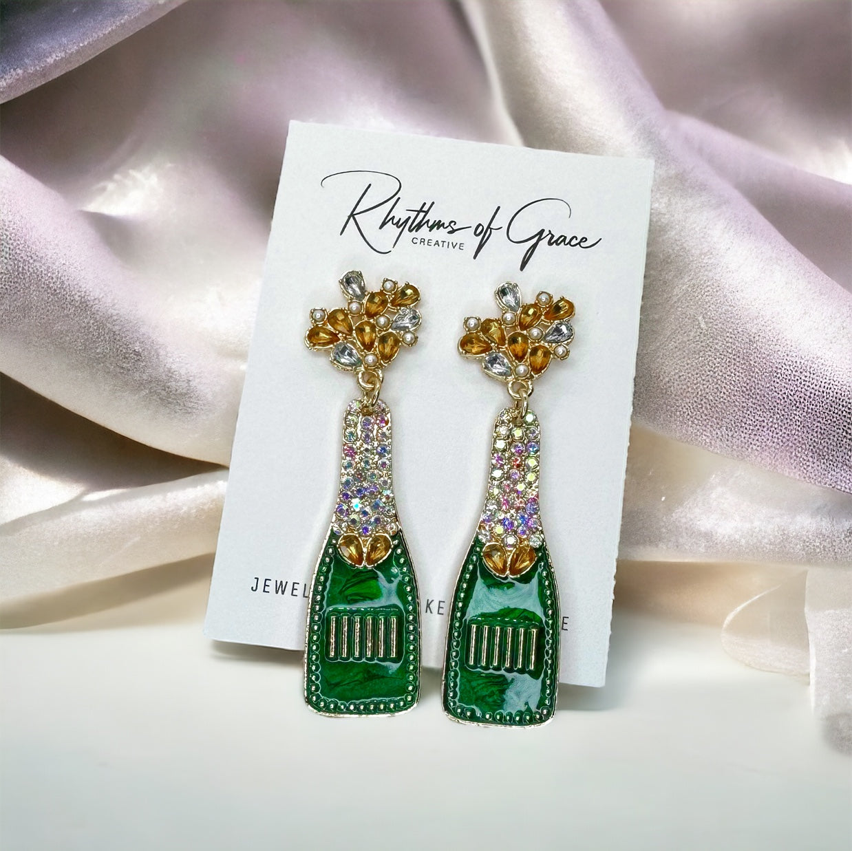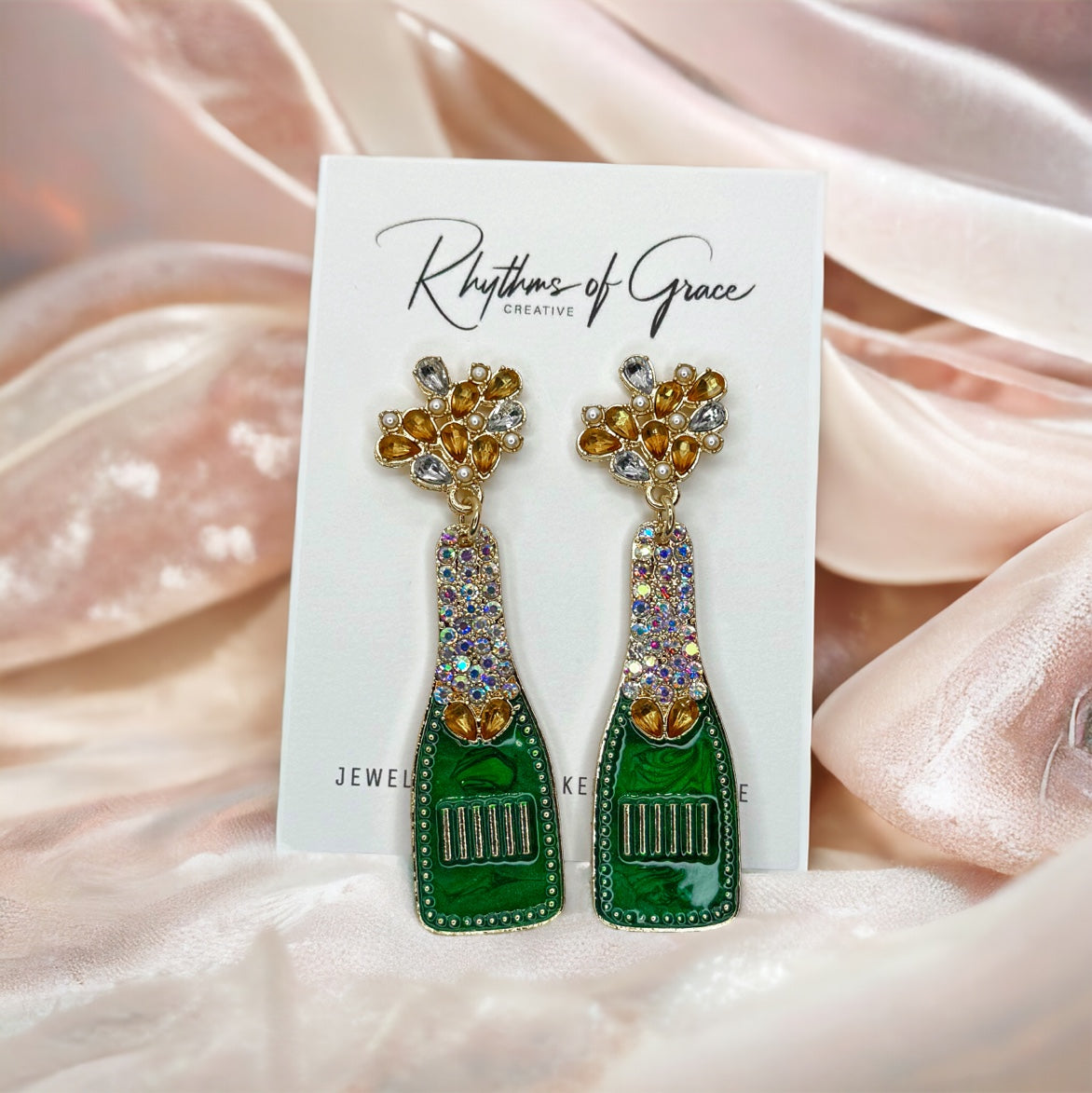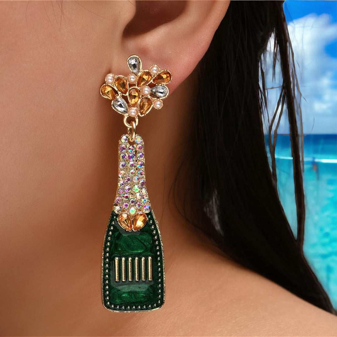 Cheers to Chic! Dazzling Champagne Bottle Earrings 🍾