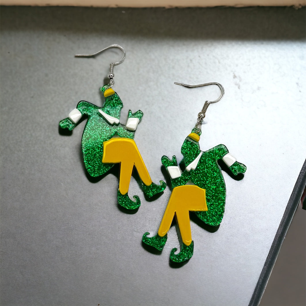 Evoke the enchanting spirit of the holidays with these whimsical green and gold elf Christmas earrings. These charming earrings capture the magic of the season, adding a touch of festive cheer to your ensemble. Perfect for spreading joy and celebrating the wonder of Christmas, these elf earrings are a delightful addition to your holiday accessories. Embrace the playful spirit of the holidays with these festive and enchanting earrings!