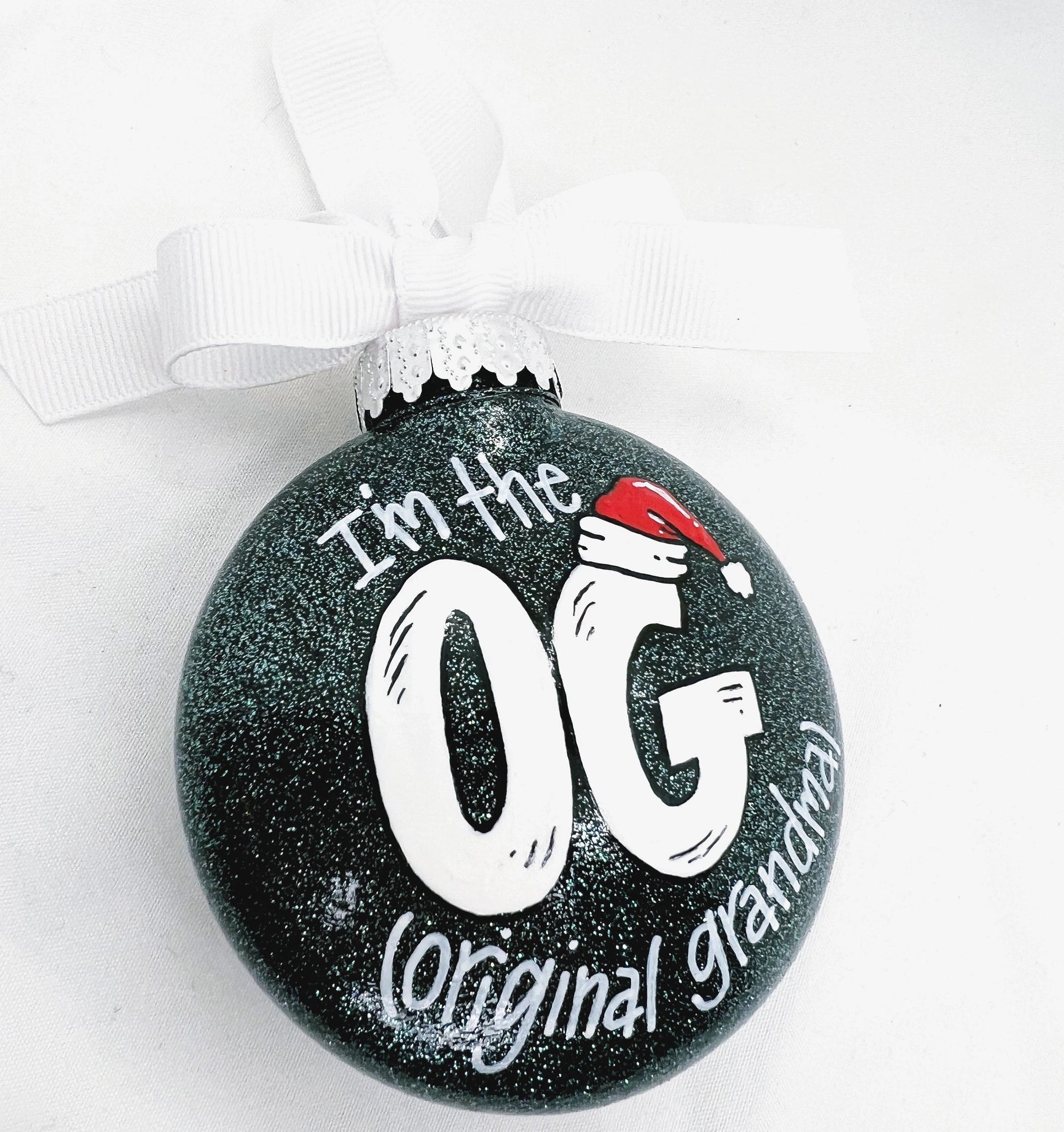 Celebrate the "OG" in your family with this fun and festive Christmas ornament, perfect for grandmas who hold a special place in everyone's heart! This unique and personalized ornament makes a wonderful gift for the holidays or a charming addition to your own tree.