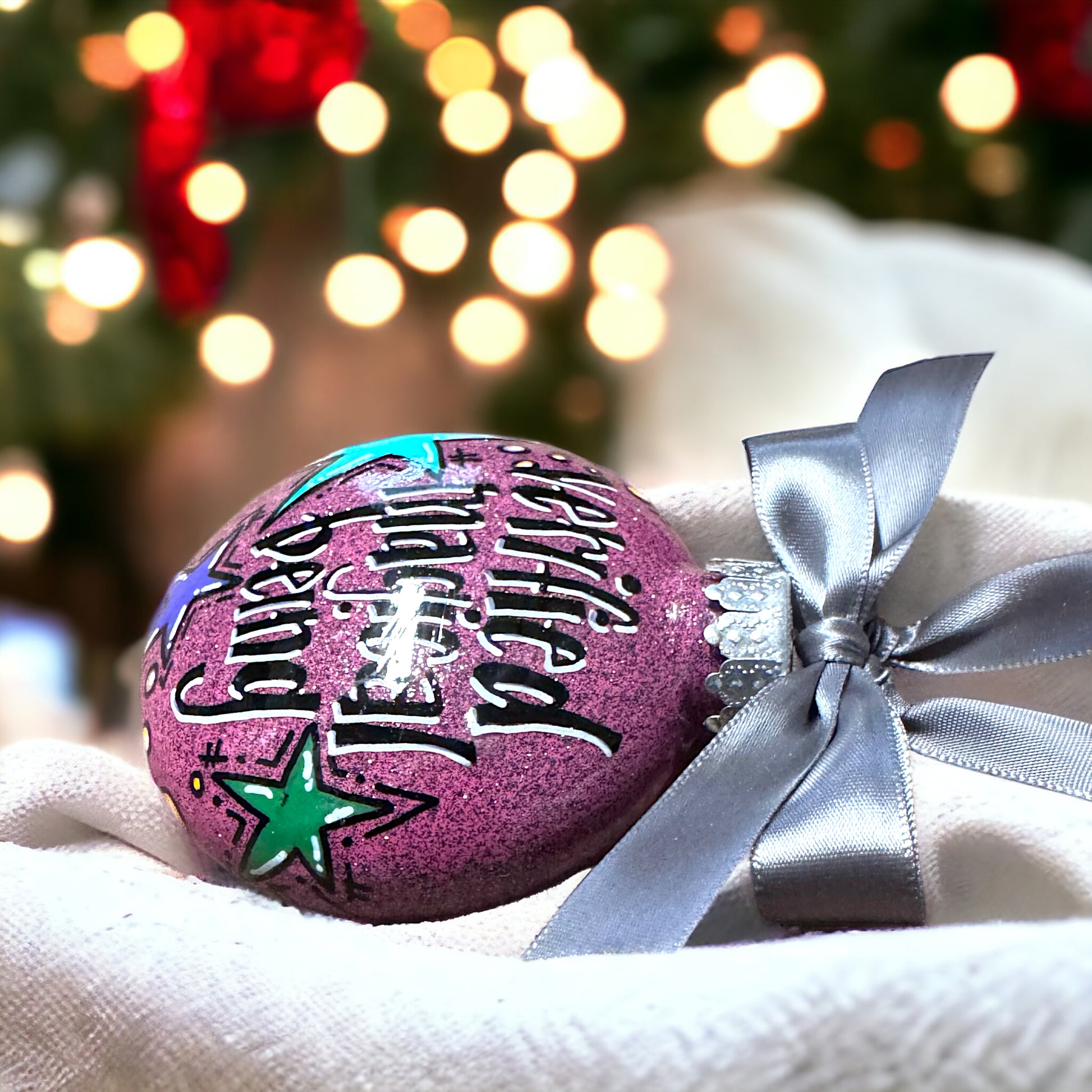 Each ornament is meticulously hand-painted, ensuring that no two pieces are ever alike. Please note that ribbon colors and paint details may vary depending on inventory, allowing for unique variations in every creation. The artist also includes their initials and the year created for an added touch of authenticity.