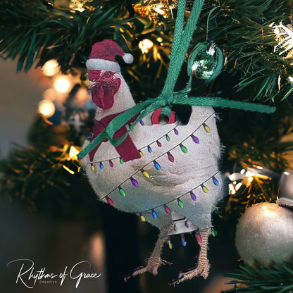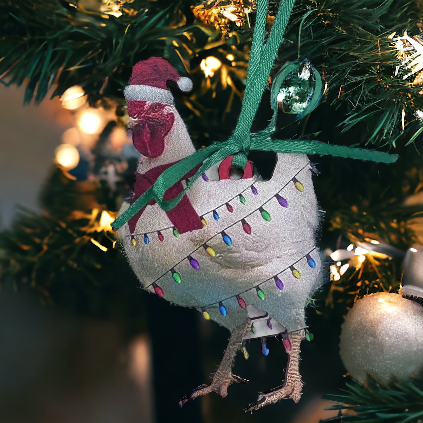 Cluckin' Around the Christmas Tree – White Rooster Ornament