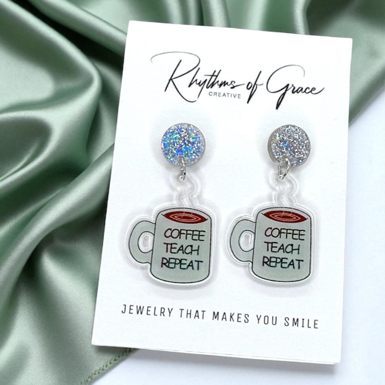 Coffee Teach Repeat Earrings – Caffeinated Style for Every Teacher! ☕