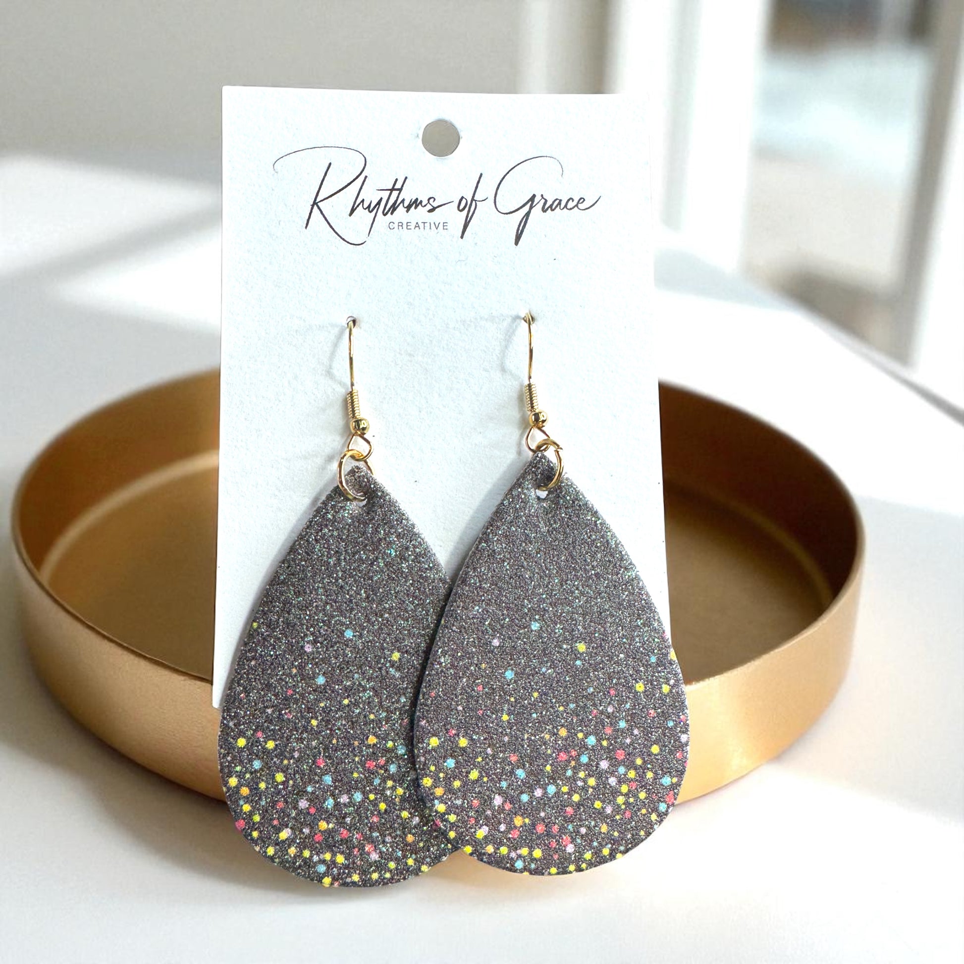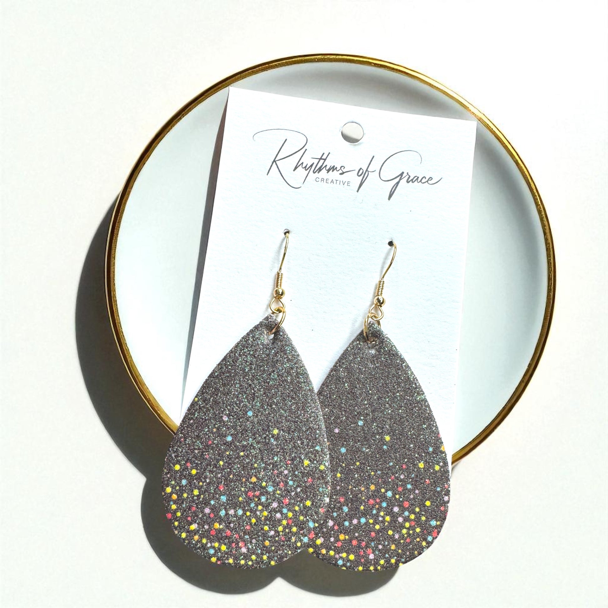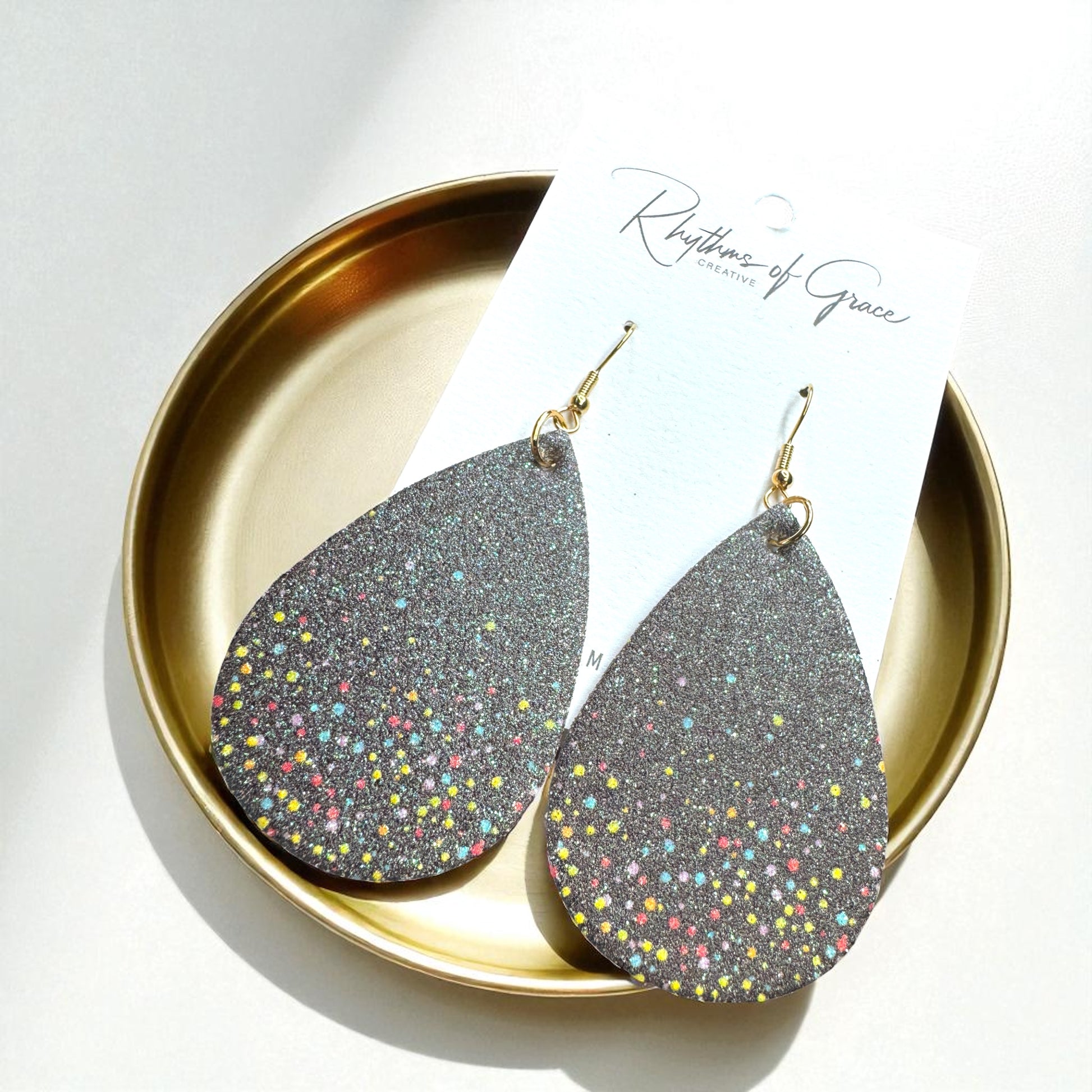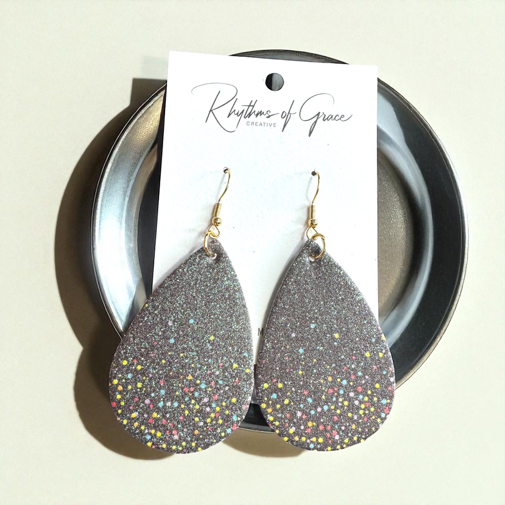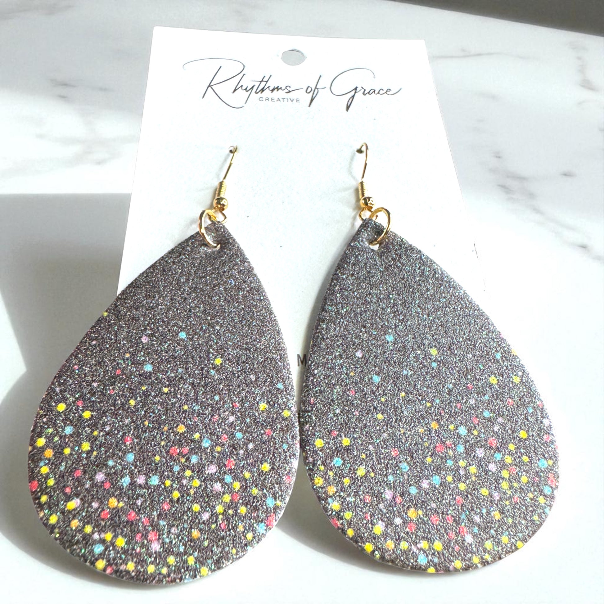 Ready to party? These Black Sparkly Teardrop Dangle Earrings bring the glam and the fun with a bold glitter finish and playful pops of colorful dots. Think starry skies meets confetti vibes — perfect for making a statement day or night. Lightweight and fabulous, they’re your go-to for instant sparkle.