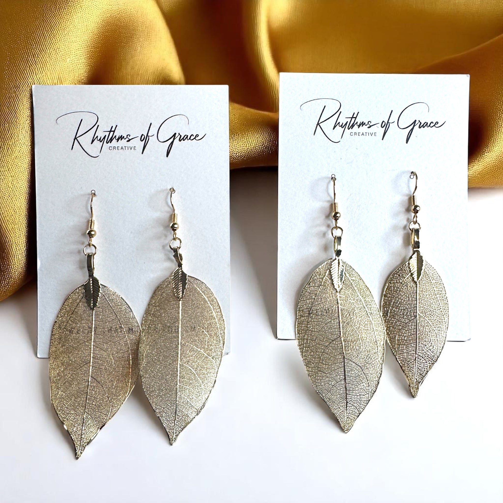Turn heads and steal hearts with these stunning Gold Leaf Earrings! 🌿 Perfect for a night out, a prom to remember, or just because you deserve a little glam.