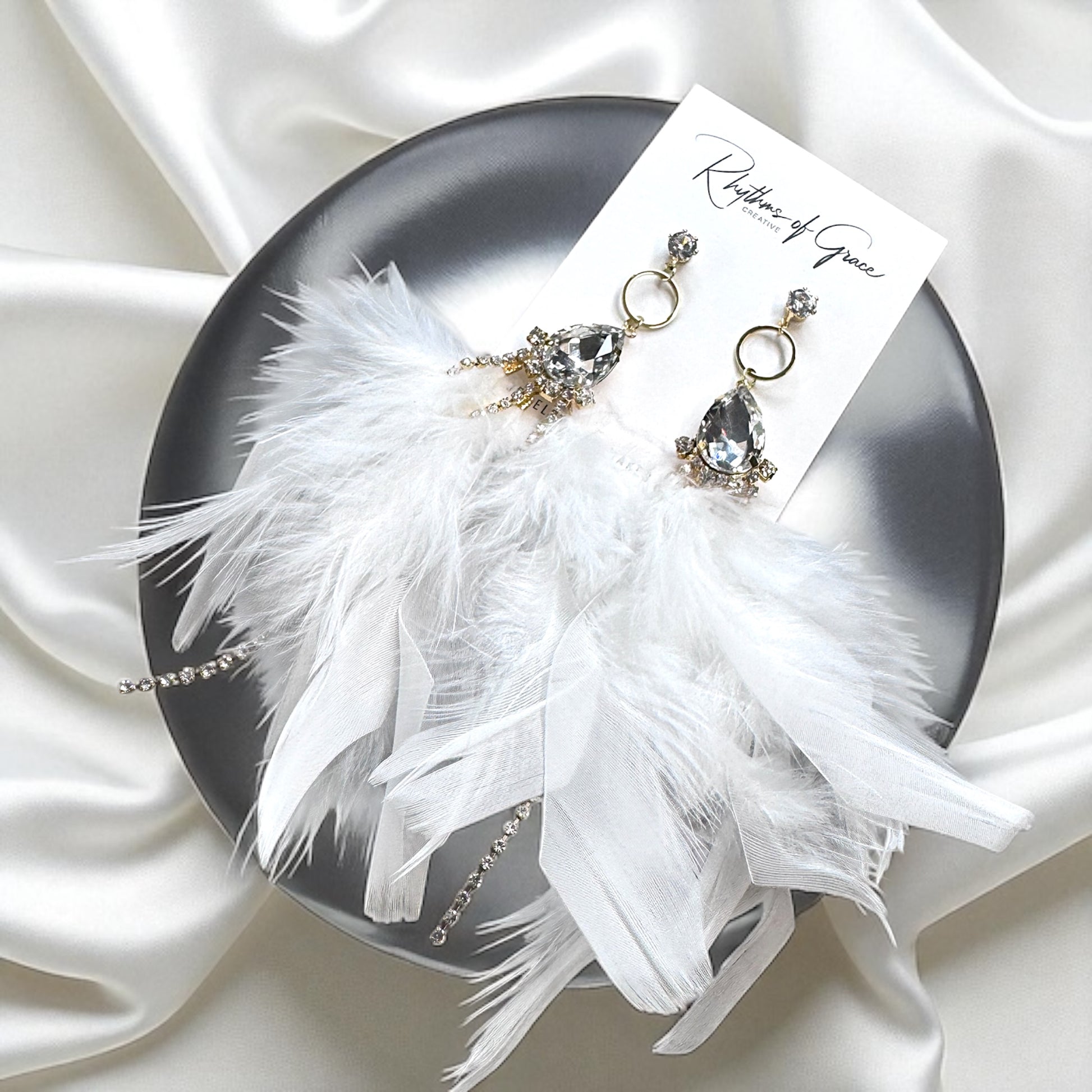- Materials: Stainless steel hooks, zinc alloy, sparkling rhinestones, natural feathers
