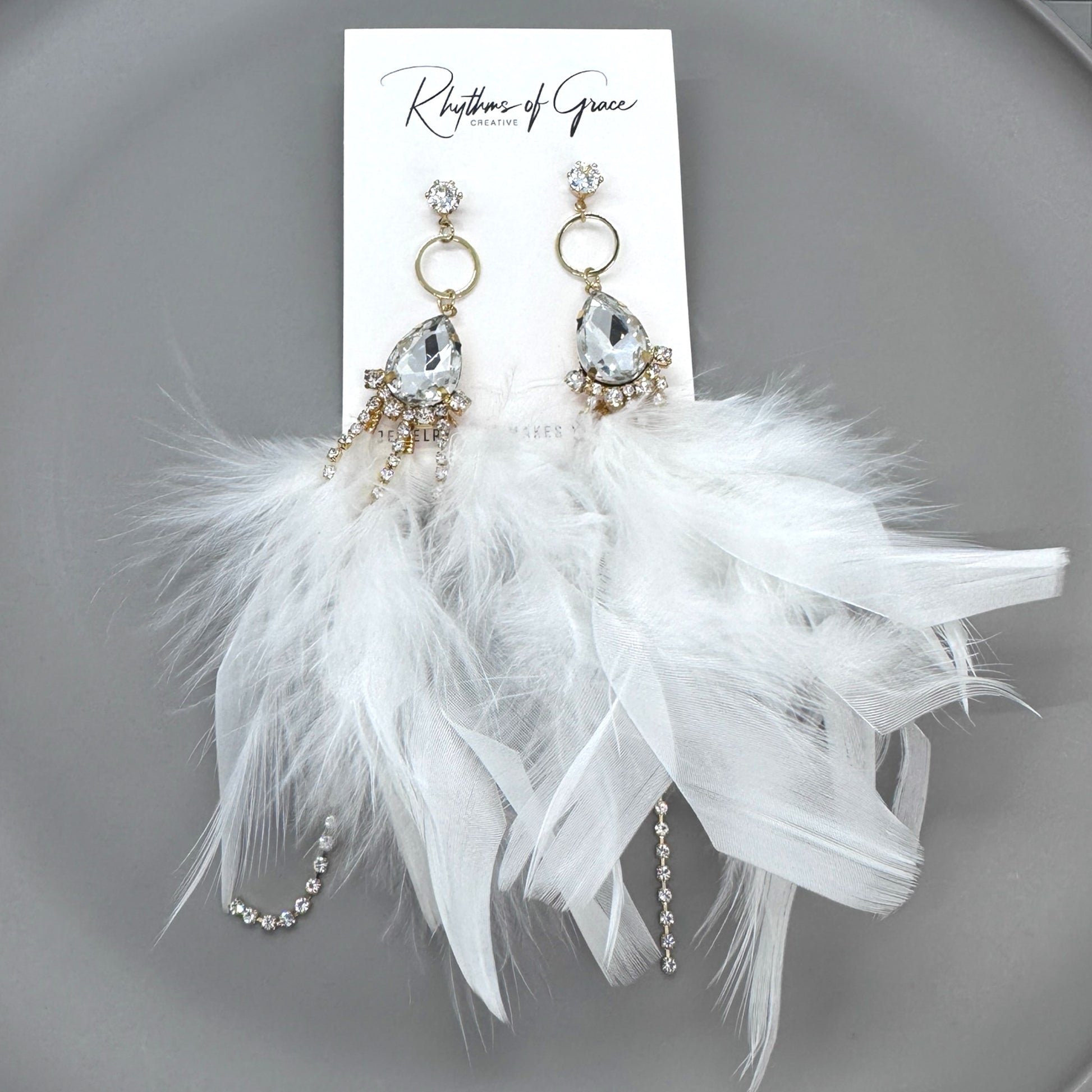 Dreamy White Feather Earrings – Rhinestone Dangles for Boho Queens