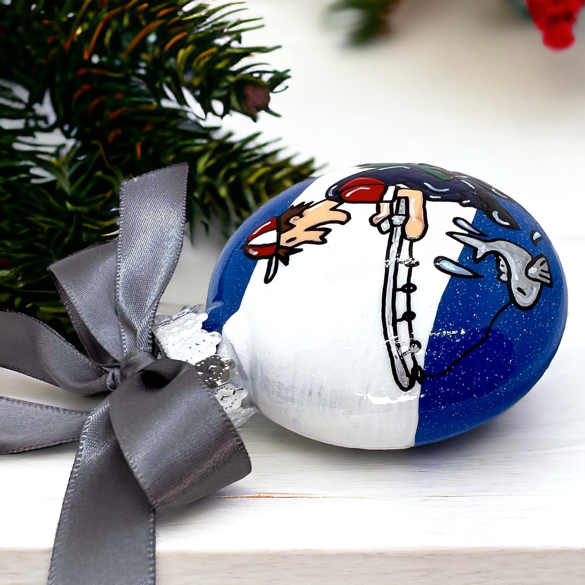 Each ornament is hand-painted, making every piece unique. Colors and ribbon styles may vary slightly, and the artist may take creative liberties to ensure every ornament is as special as the person receiving it.
