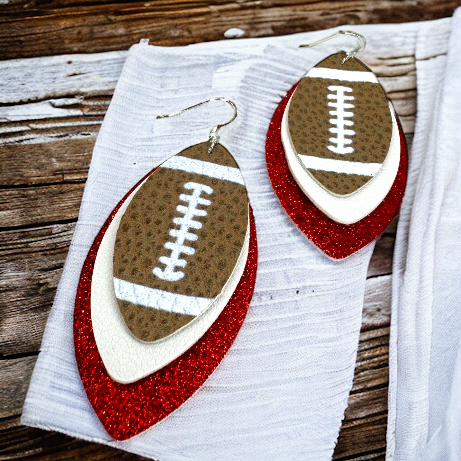 Football Earrings - Football Jewelry, Super Bowl Earrings, Handmade Earrings, Handmade Jewelry, Shell Earrings, Rugby Earrings, Cheerleader, Football Mom