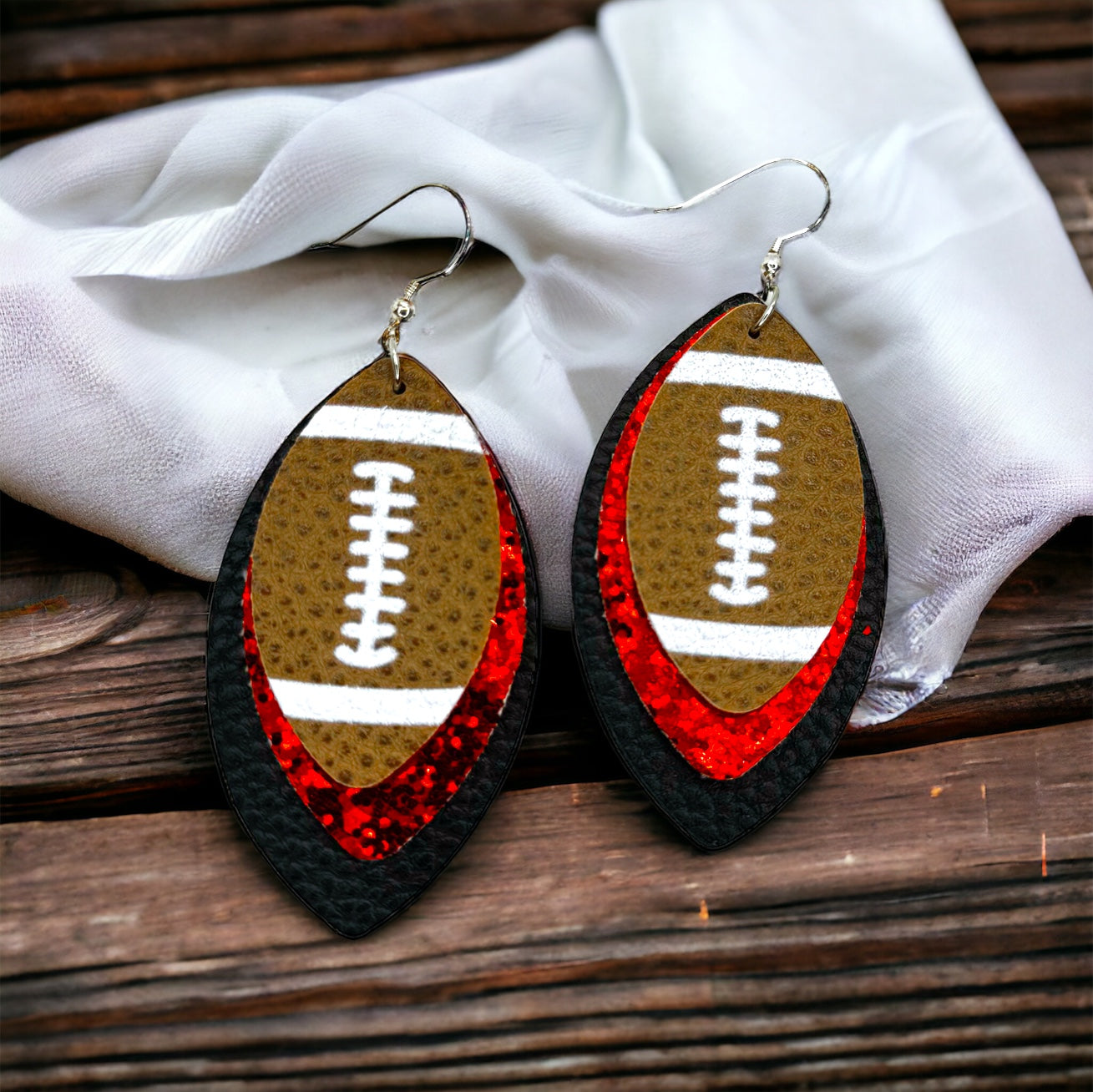 Introducing our striking three-layer football earrings, available in three color combinations: red and white, black and red, or black and white. With one shimmering layer of glitter, these earrings offer a touch of glamour for game day or everyday wear. Lightweight and eye-catching, they're the perfect accessory for football lovers.