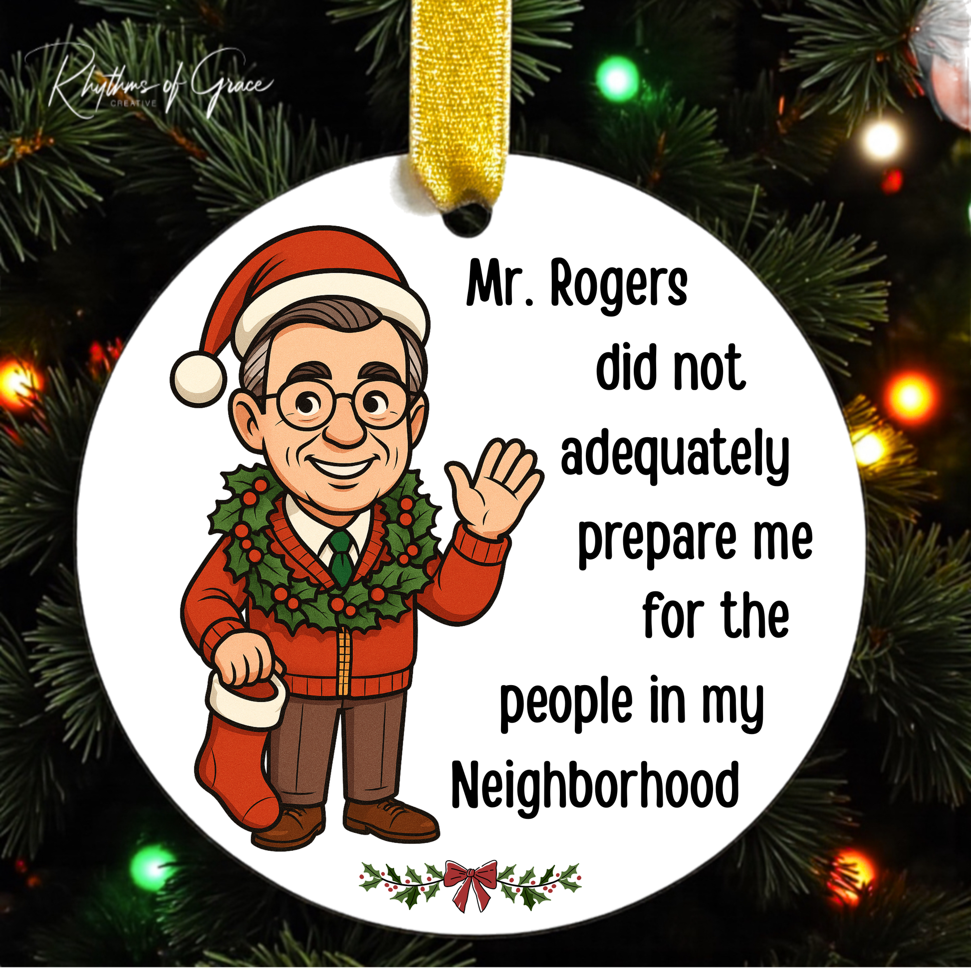 #MrRogersOrnament #FunnyChristmasOrnament #NeighborhoodDrama #HolidayHumor #SassyOrnaments #ChristmasTreeDecor #GiftIdeas2025 #WhiteElephantIdeas #StockingStuffer #CustomOrnaments #MemeOrnament #RhythmsOfGraceCreative #SmallBusinessHoliday