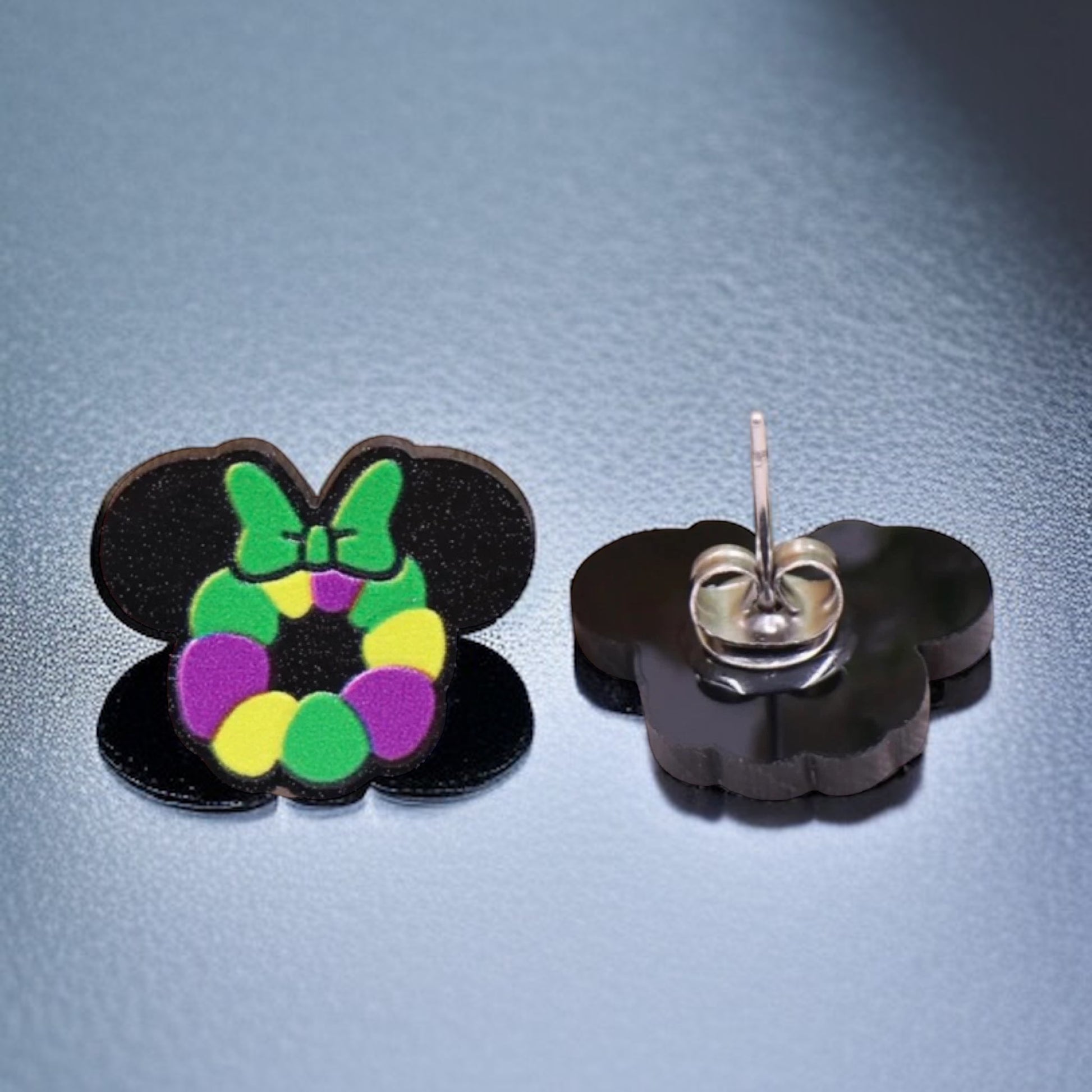 🎉 Add a Splash of Mardi Gras Magic! 🌟 Colorful Stud Mouse Ears Earrings 🎭