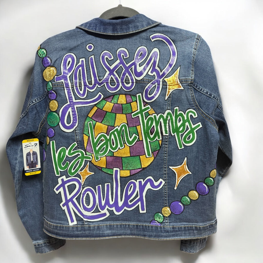 Hand Painted Jean Jacket: “Laissez les bon temps rouler”