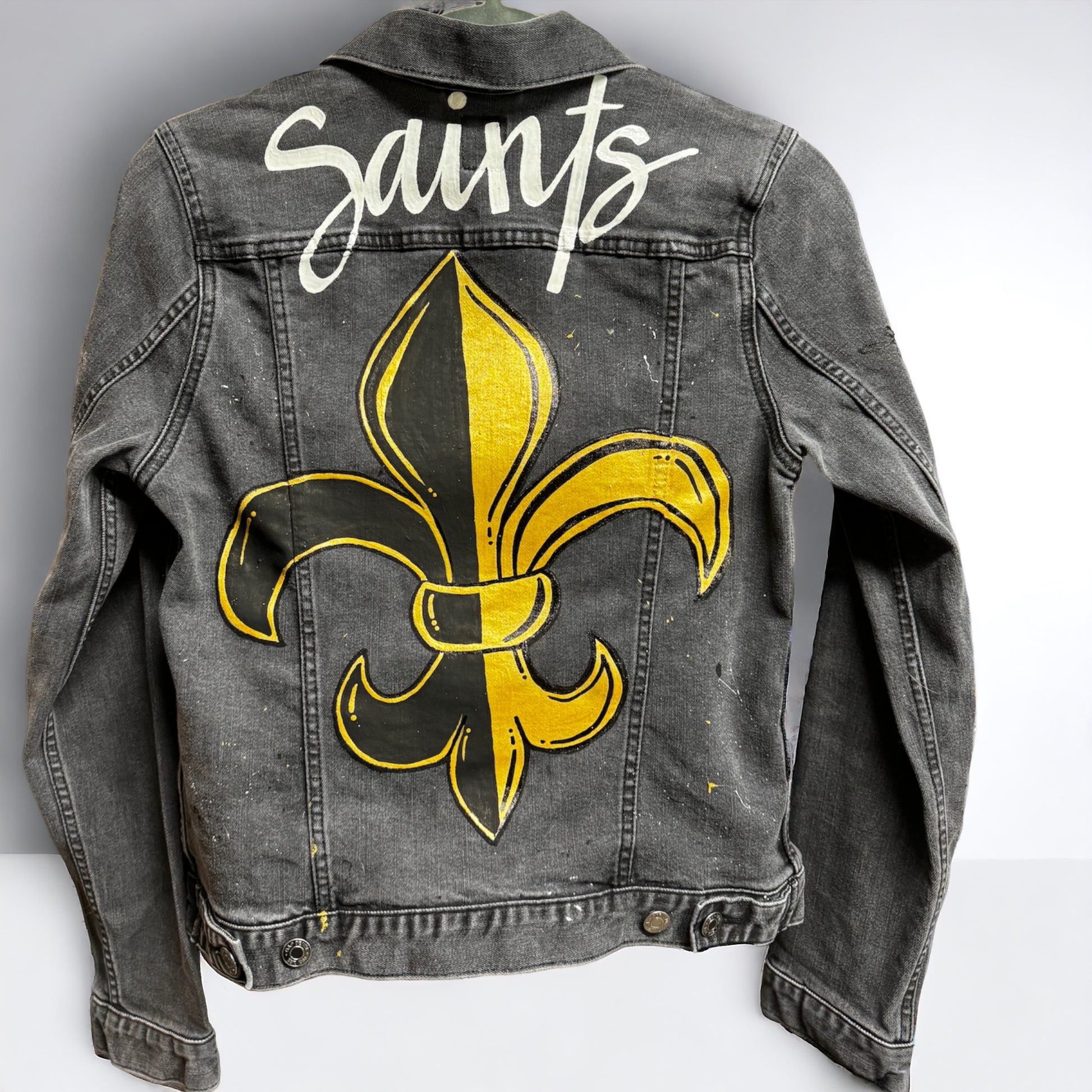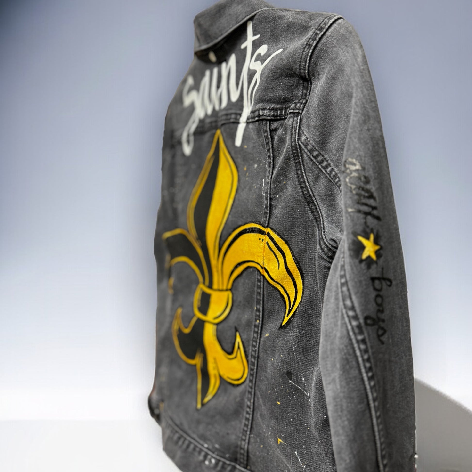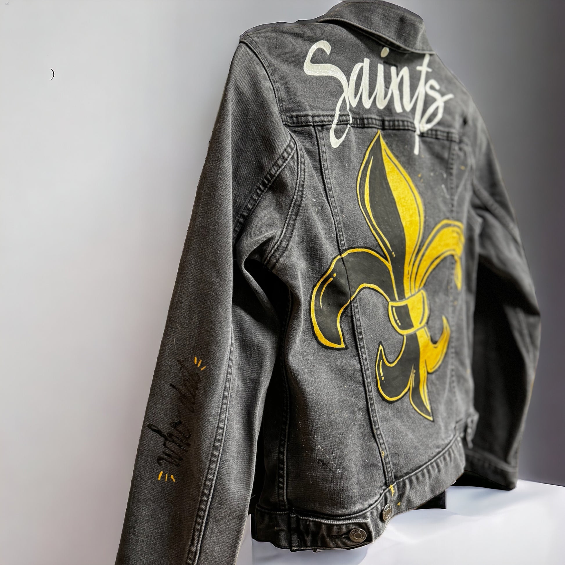 Unleash Your Inner Champion with the "Saints" Hand-Painted Jean Jacket!