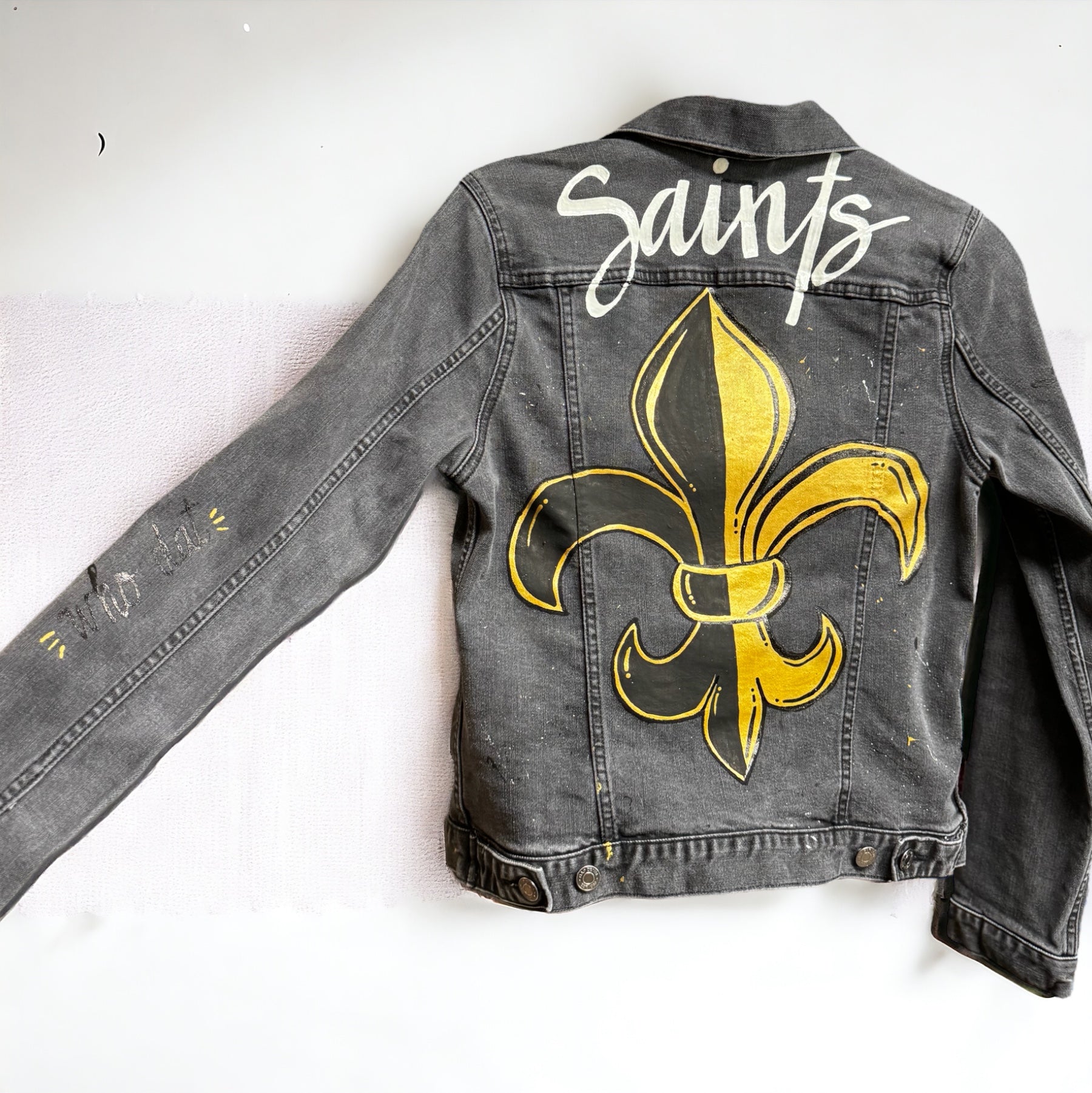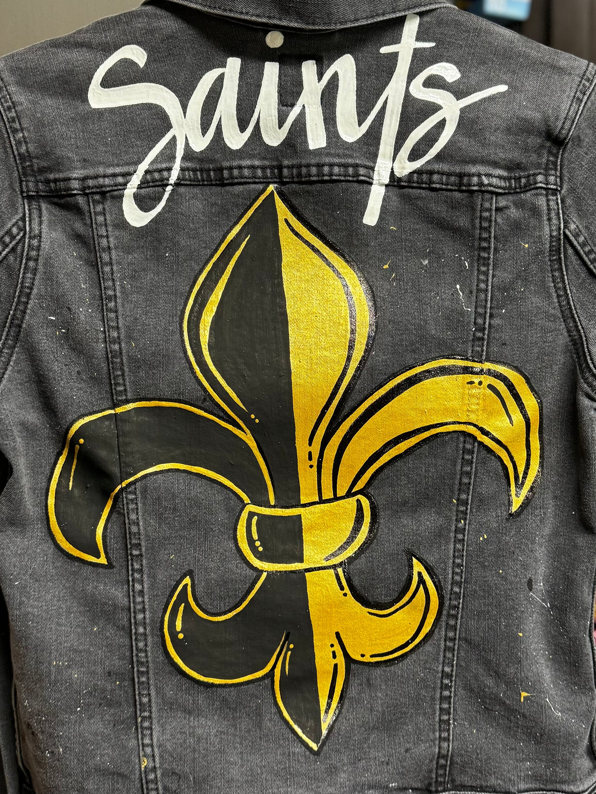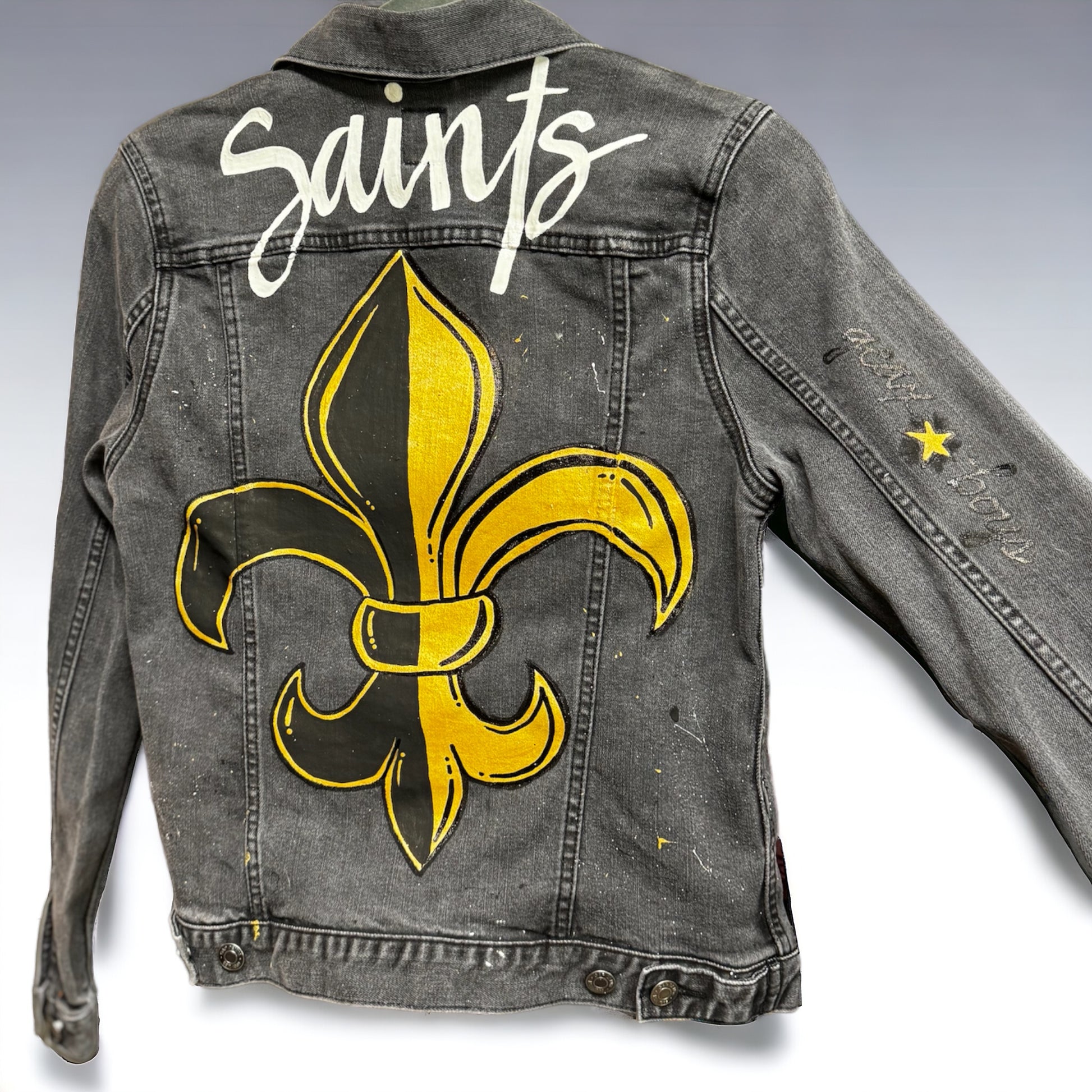 Unleash Your Inner Champion with the "Saints" Hand-Painted Jean Jacket!