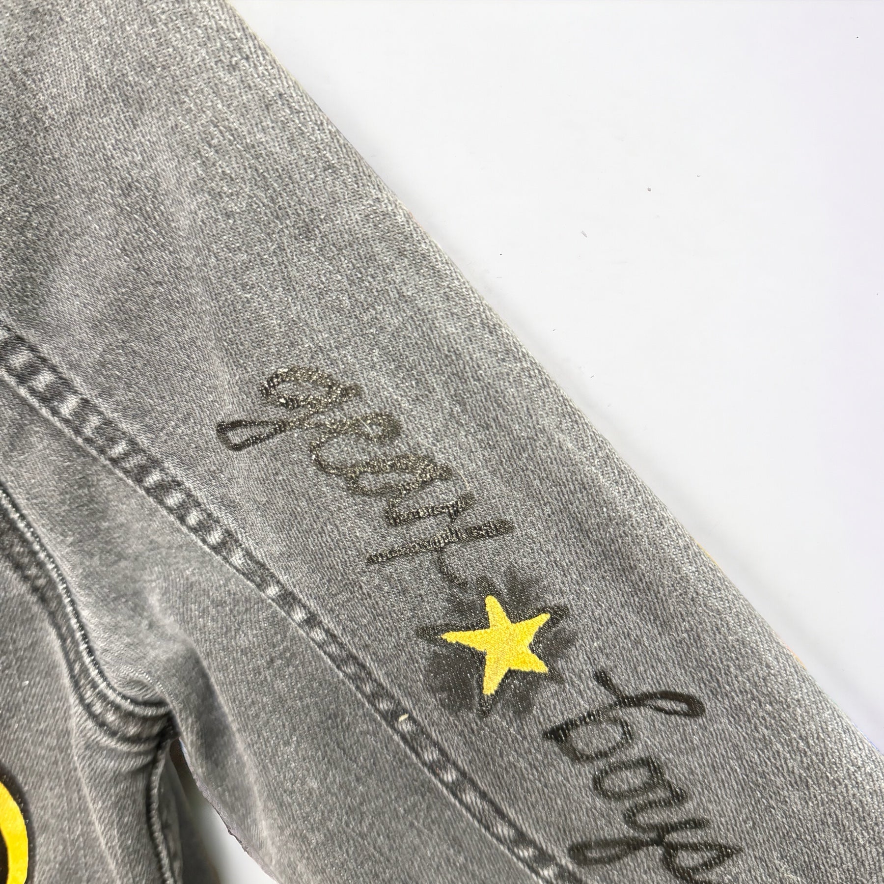 - Unique Hand-Painted Design: Each jacket is a masterpiece! Featuring a stunning black and gold fleur de lis, no two jackets are the same, adding a touch of individuality to your wardrobe.