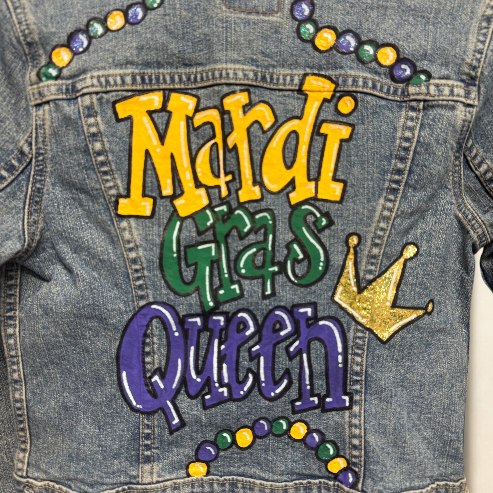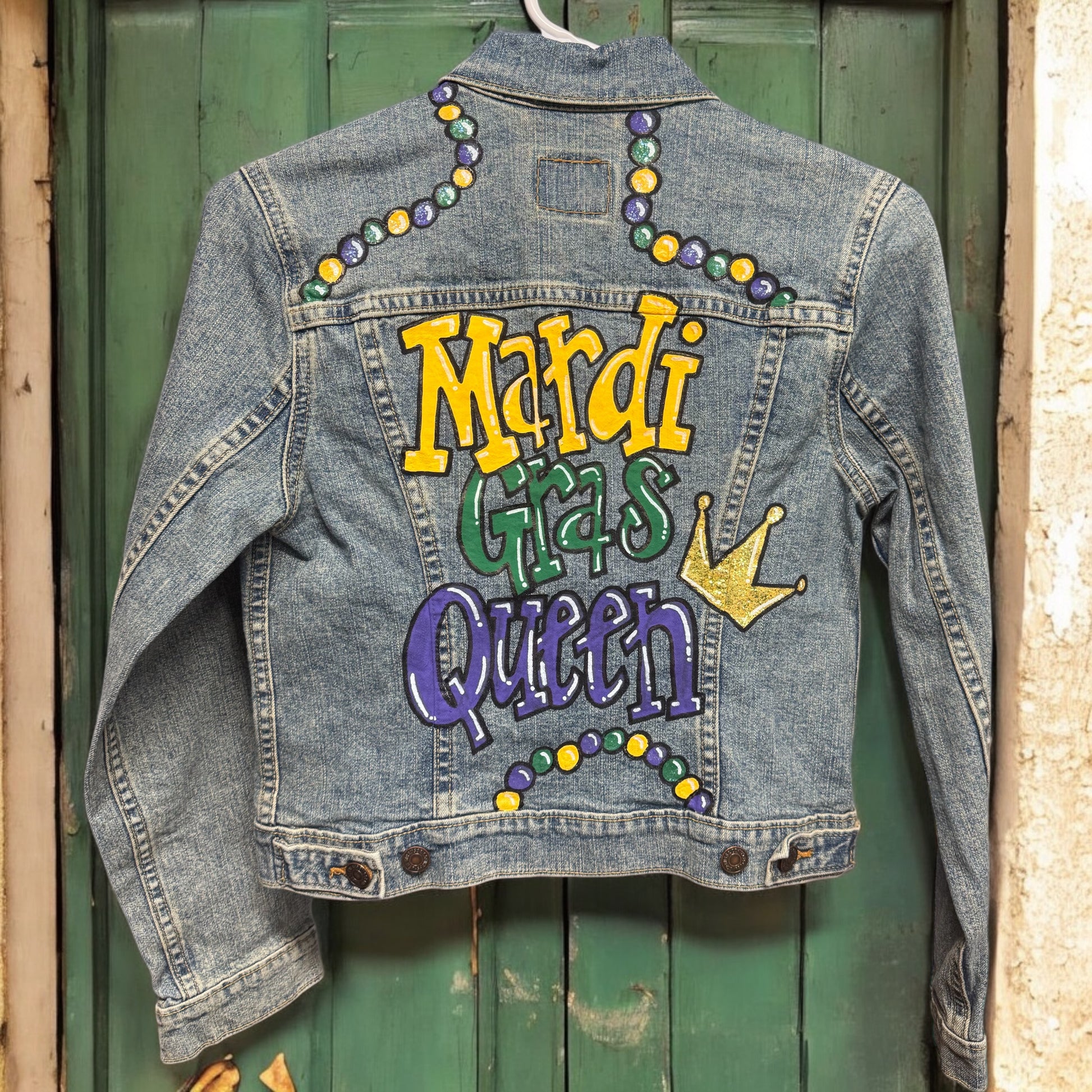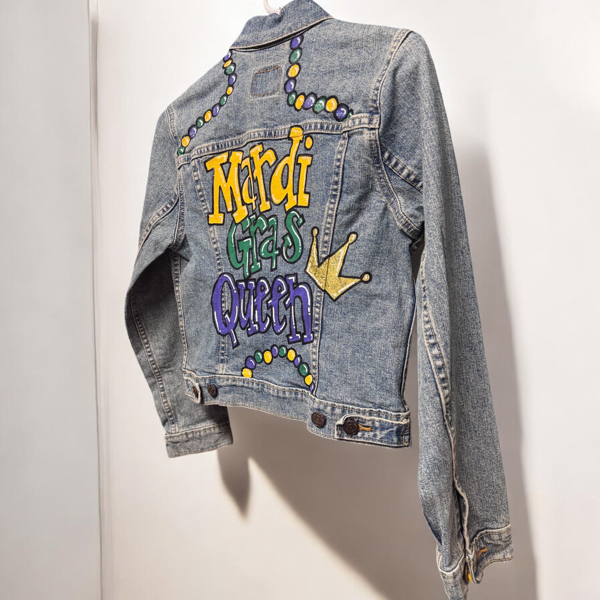 Hand Painted Jean Jacket: “Mardi Gras Queen”