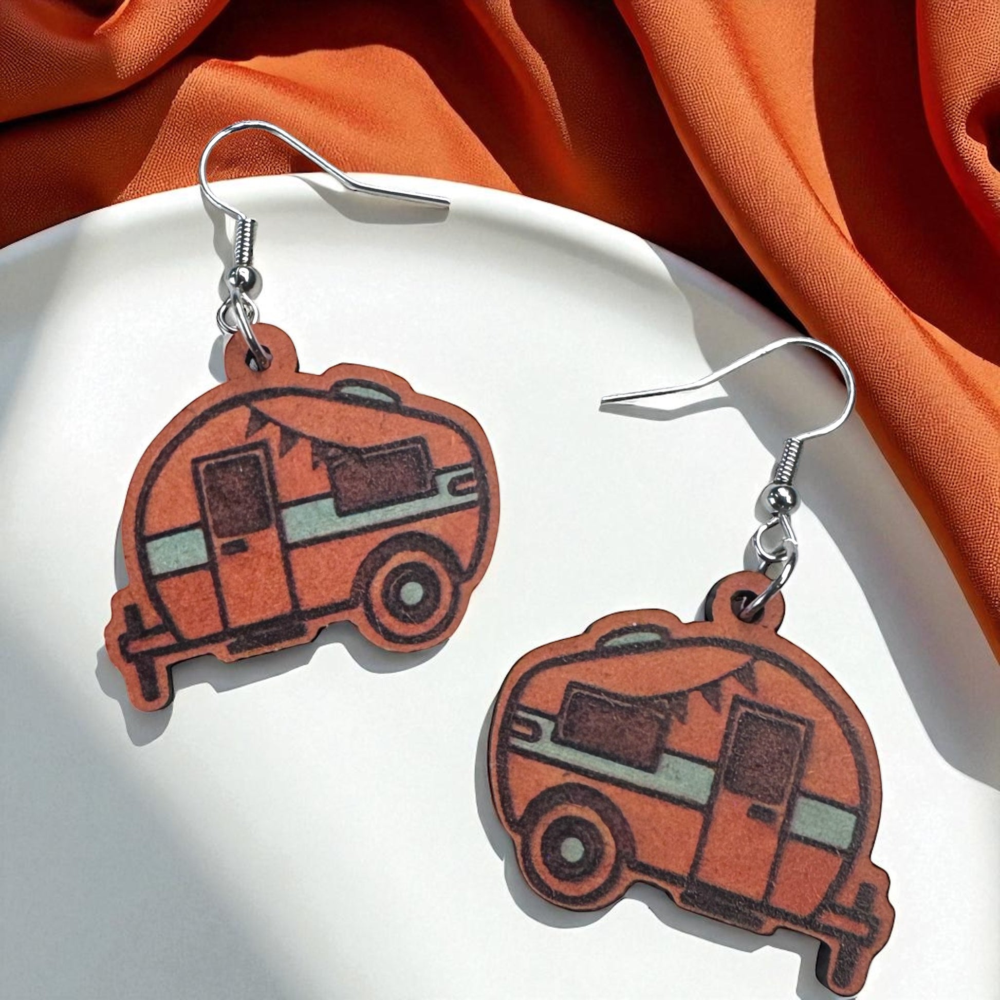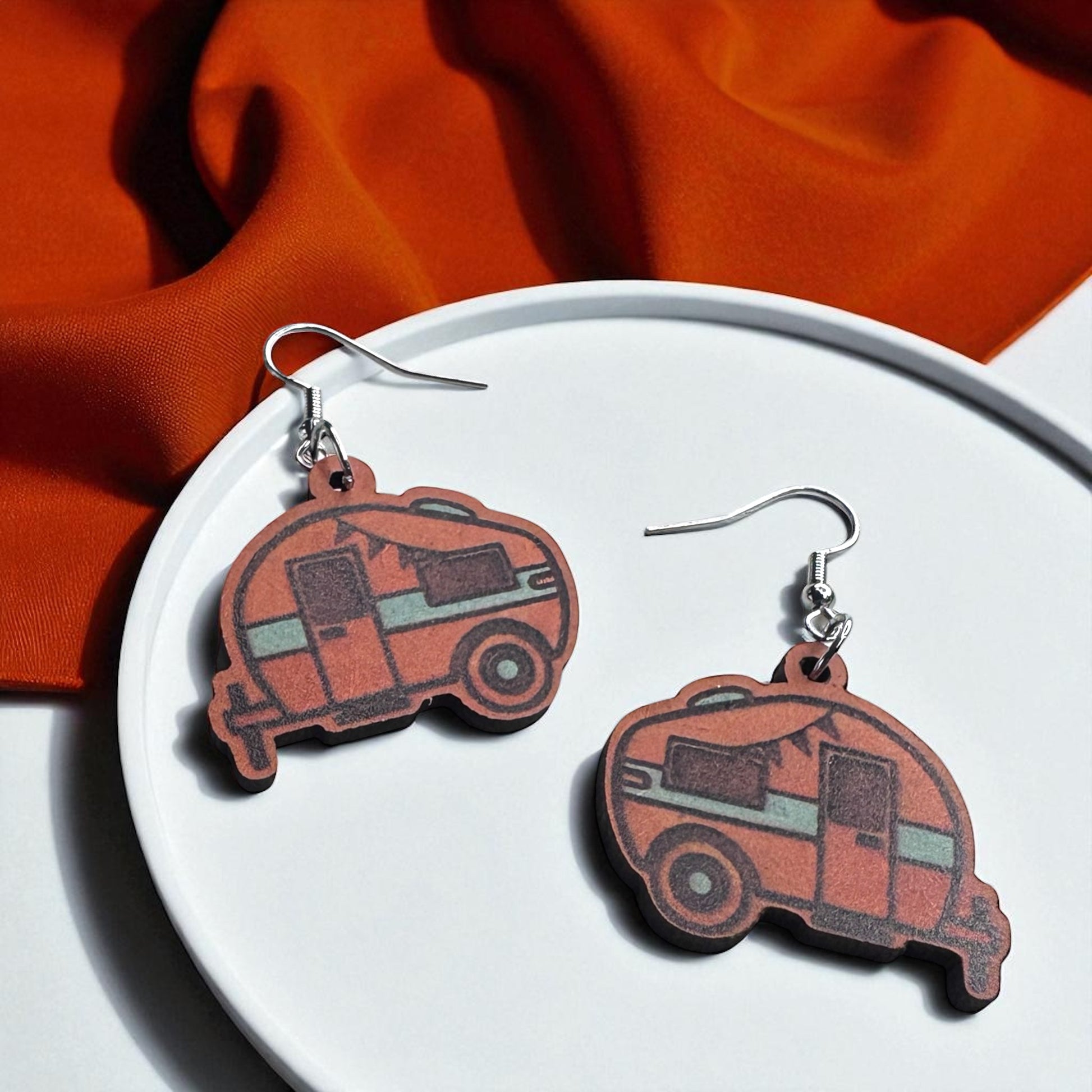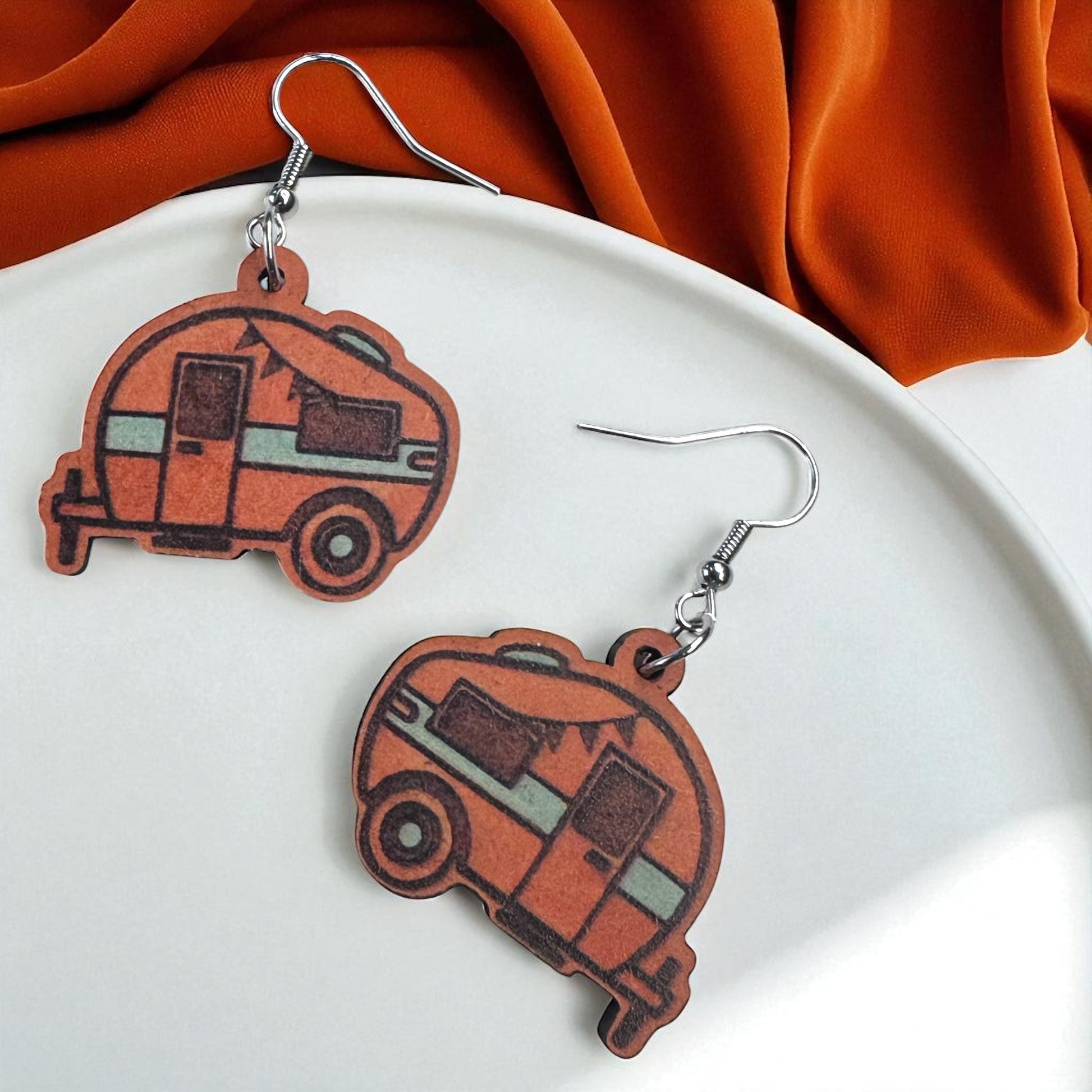 Happy Camper Vibes: Handmade Wooden Camper Dangle Earrings for Your Next Adventure