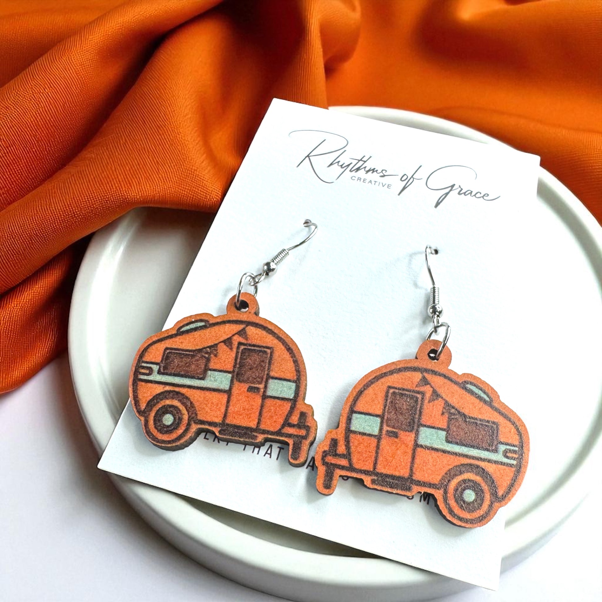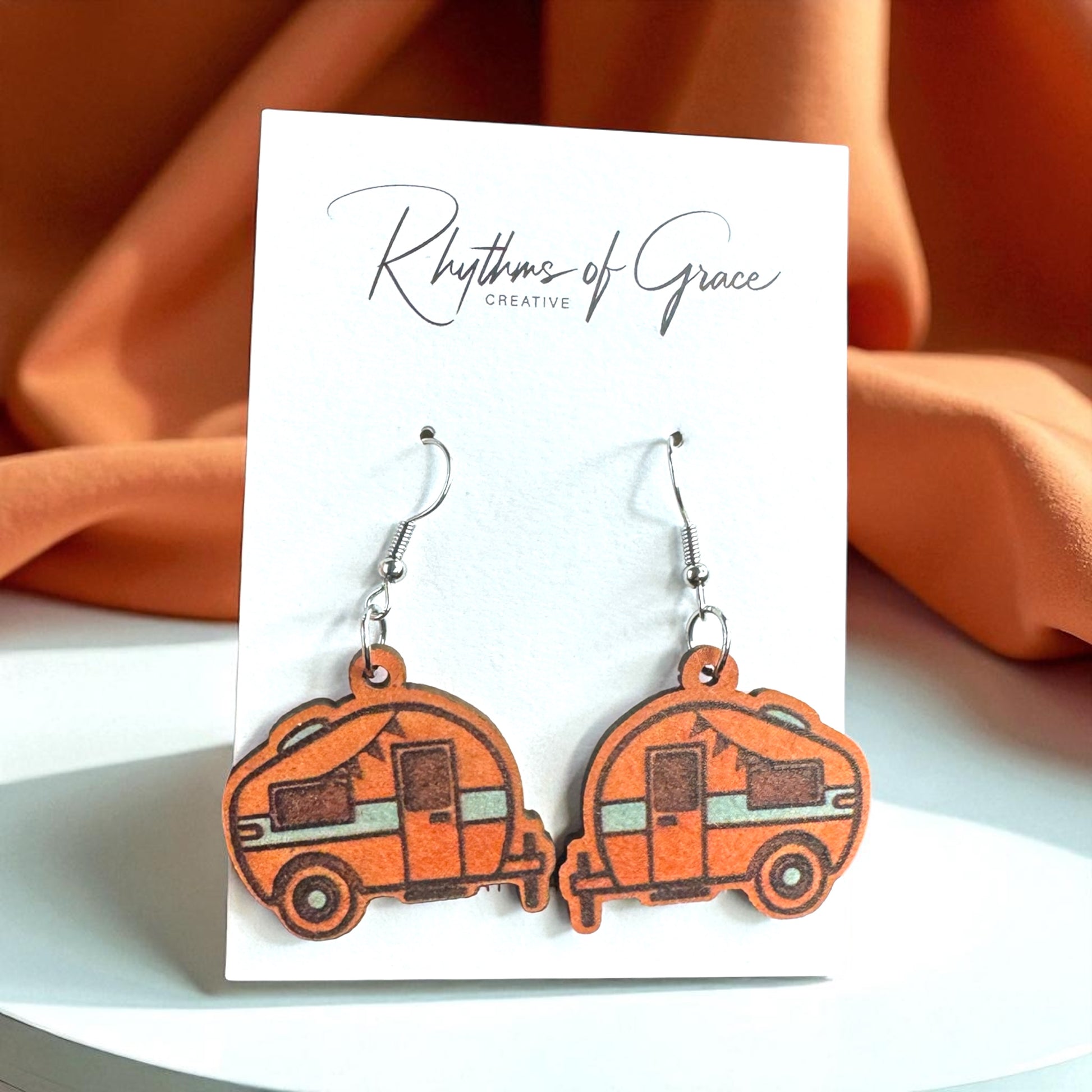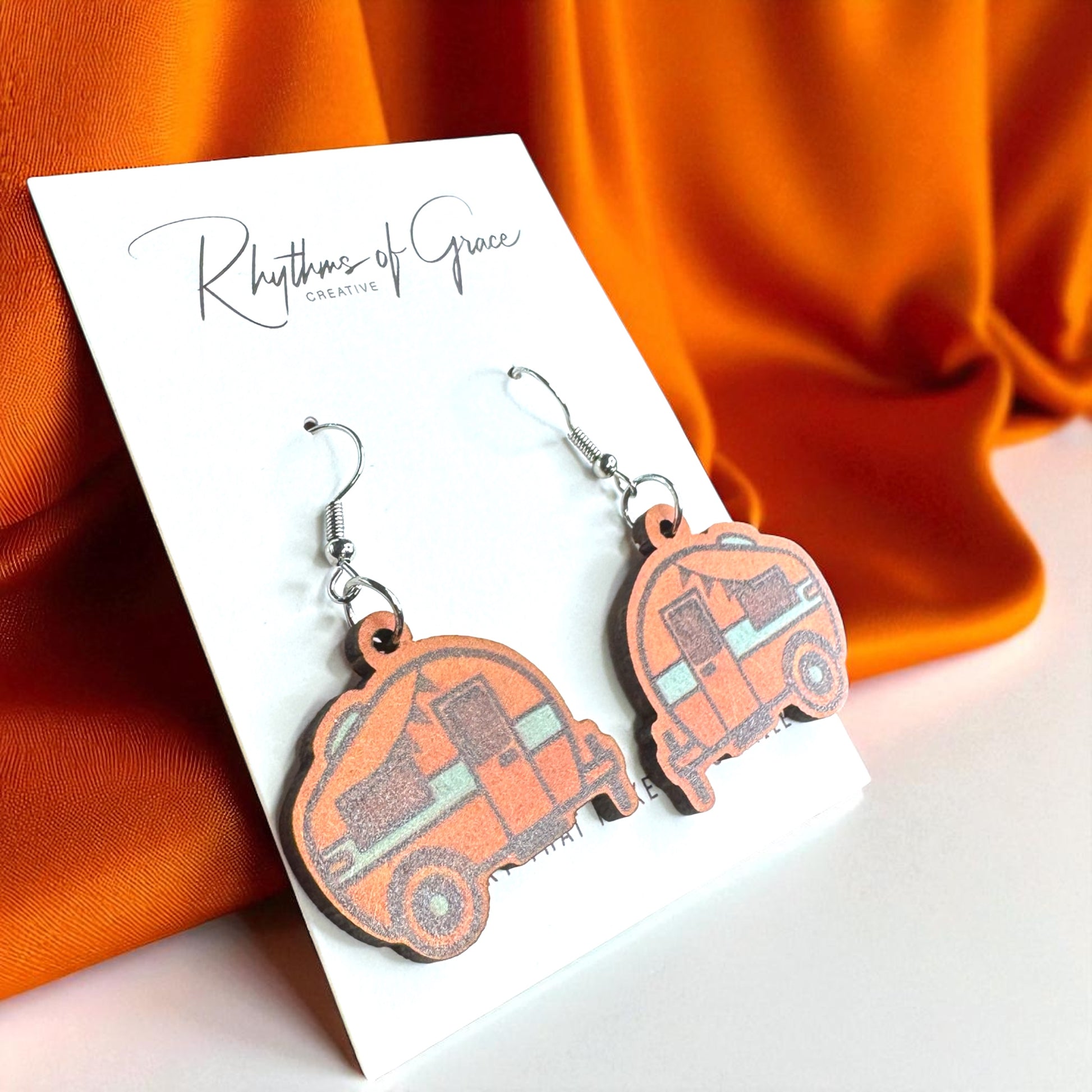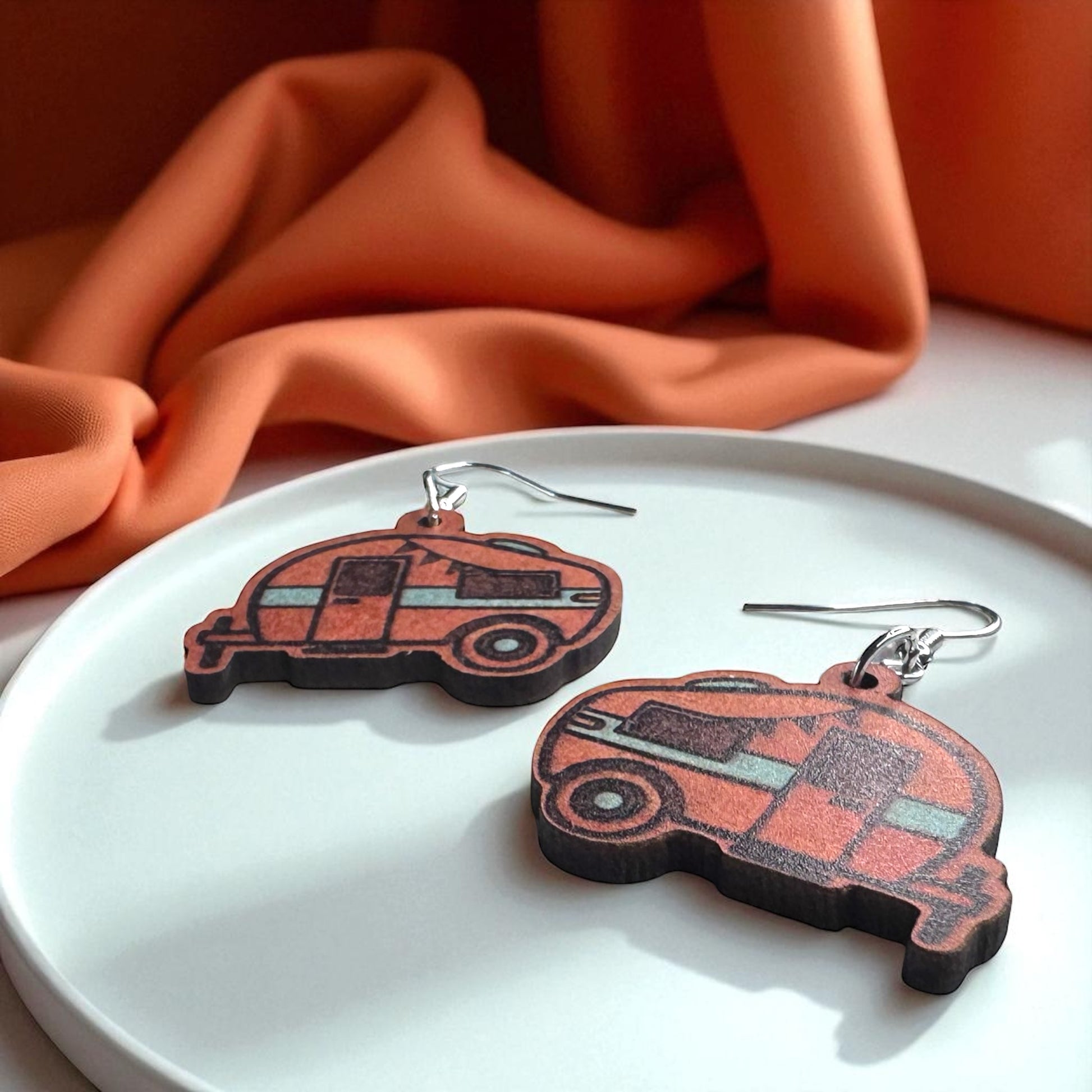 Happy Camper Vibes: Handmade Wooden Camper Dangle Earrings for Your Next Adventure