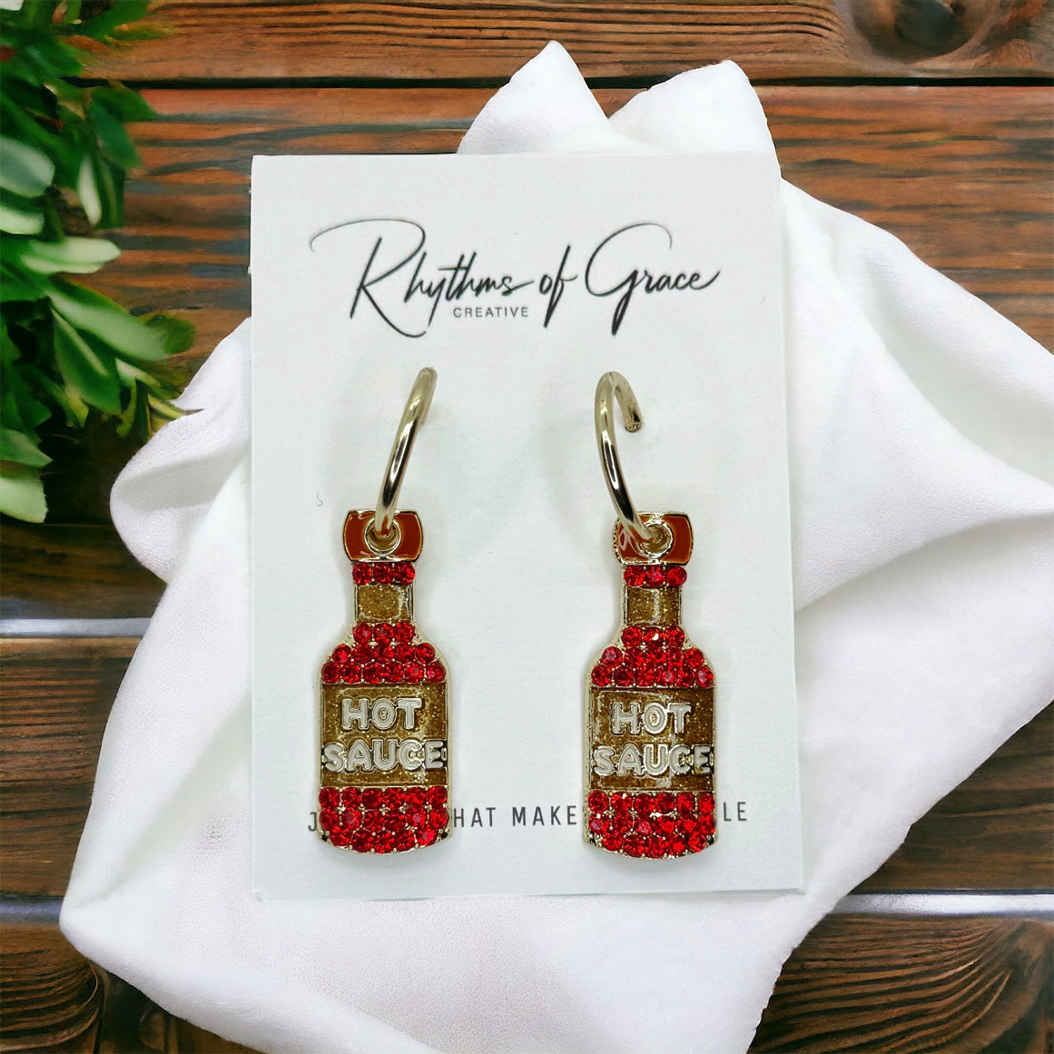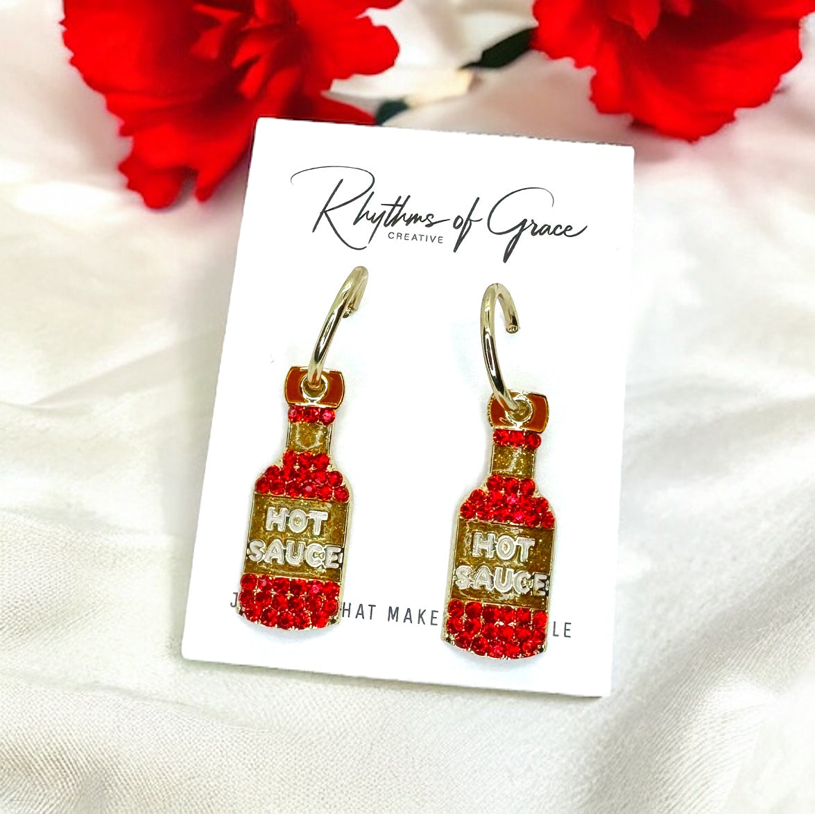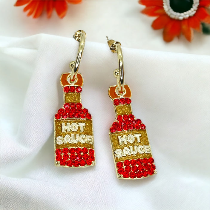 Heat things up with these dazzling rhinestone hot sauce bottle earrings! Perfect for those bold fashionistas who love a little extra kick in their style. These earrings are crafted with eye-catching details, ensuring you stand out whether you're at brunch or a night out!