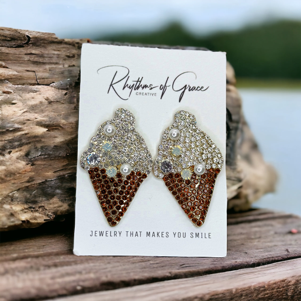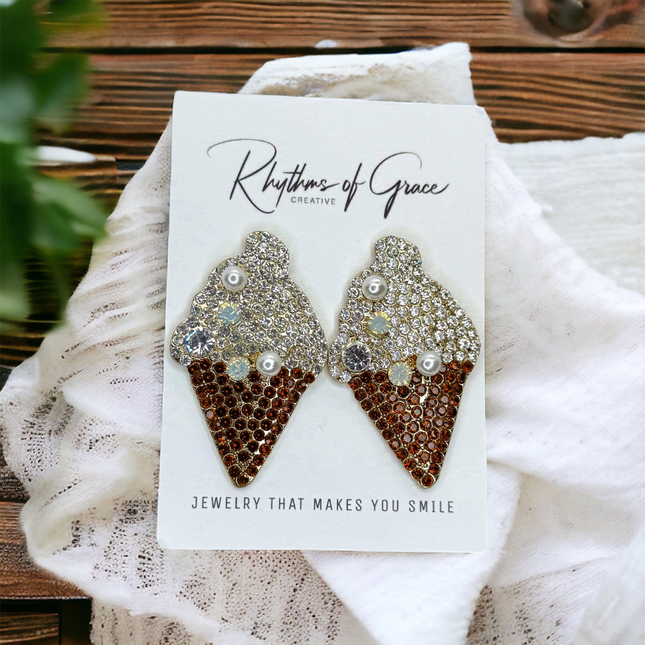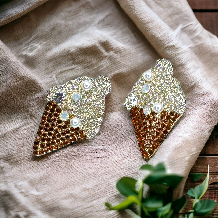 Indulge in the whimsical charm of our colorful rhinestone ice cream earrings, each pair a stunning and one-of-a-kind creation. Adorn your ears with these delightful treats, meticulously crafted to add a burst of joy to your style. Embrace the sweetness of life with these unique and eye-catching accessories that are sure to turn heads and spark conversations.