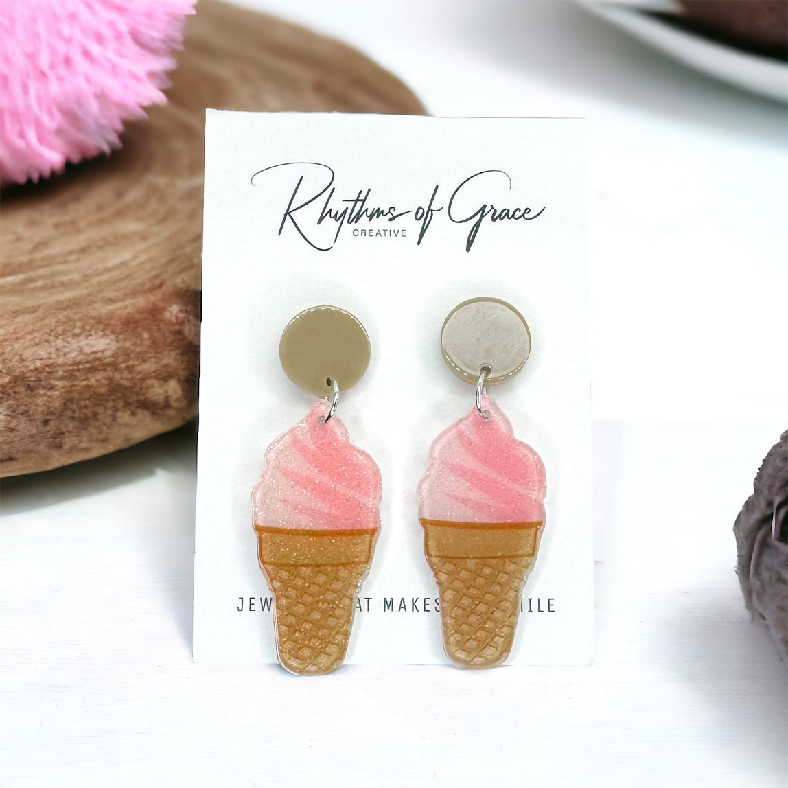 Ice Cream Earrings - Ice Cream Cone, Birthday Earrings, Handmade Jewelry, Ice Cream Jewelry, Food Earrings