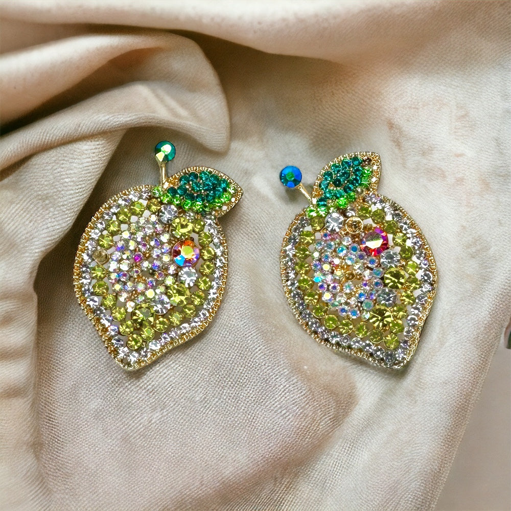 Brighten your day with these dazzling Lemon Rhinestone Earrings! Perfect for the bold and whimsical, each earring bursts with vibrant lemon-yellow rhinestones that catch the light and add a sunny sparkle to any ensemble.