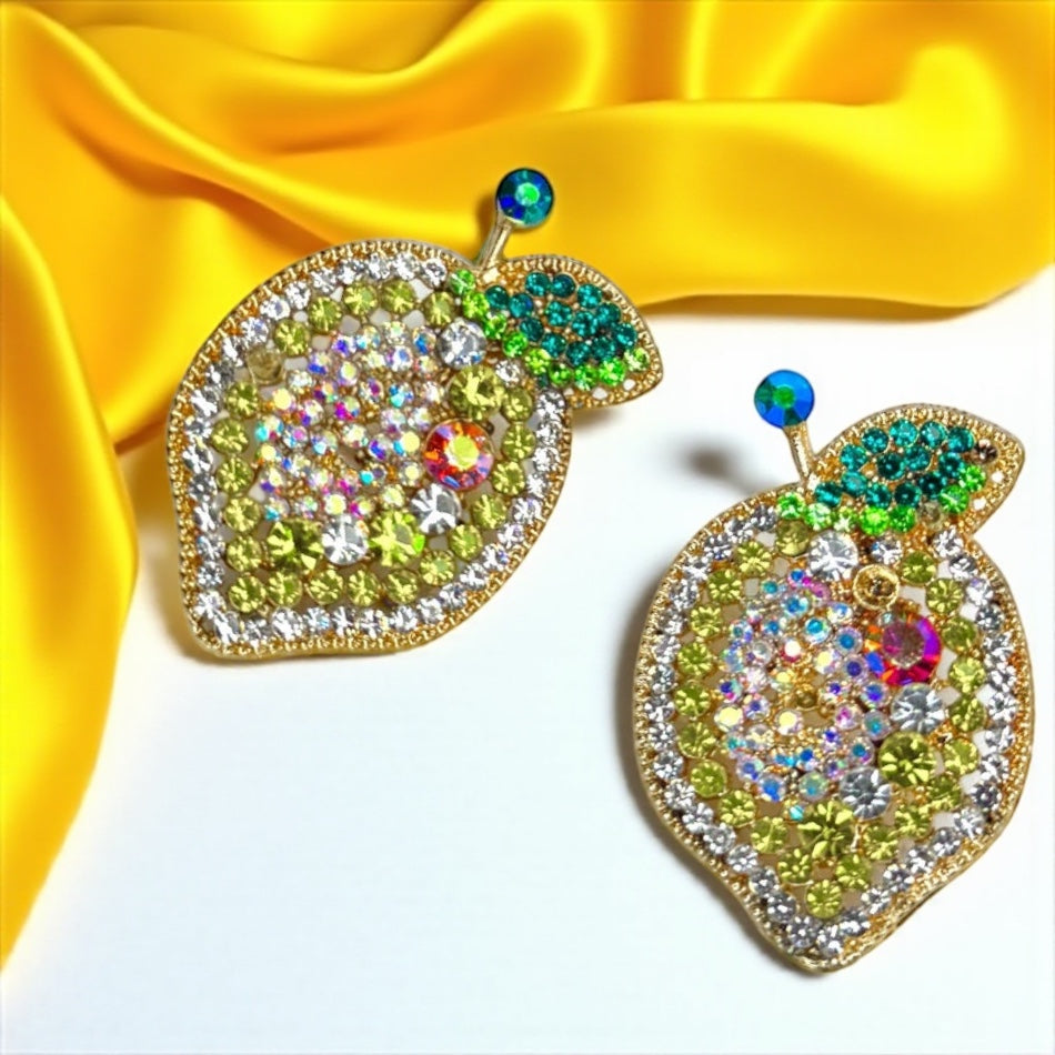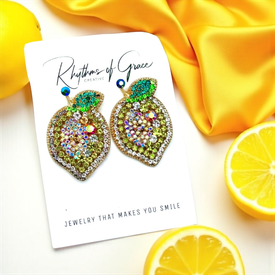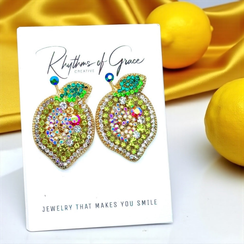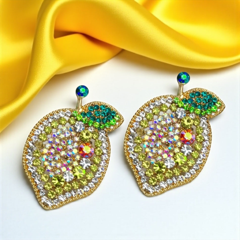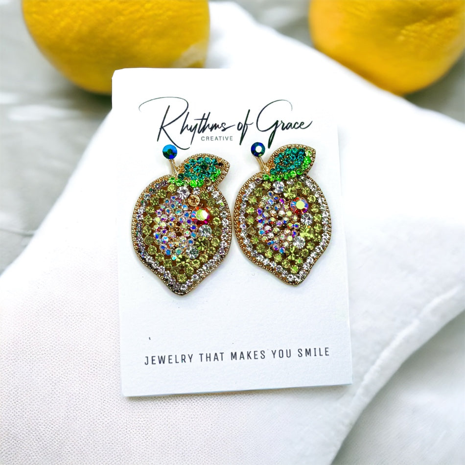 Zesty Lemon Rhinestone Earrings - Sparkle with Sunshine! 🍋