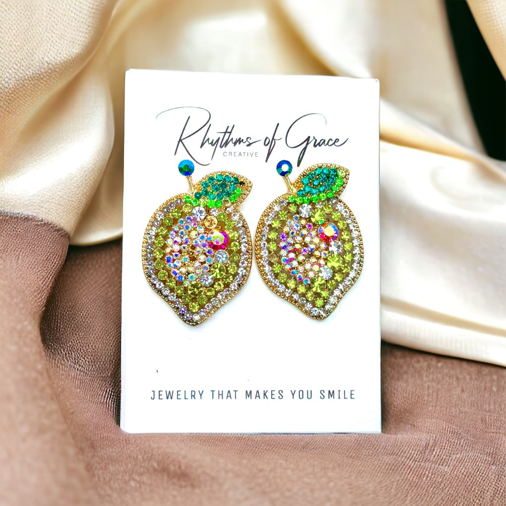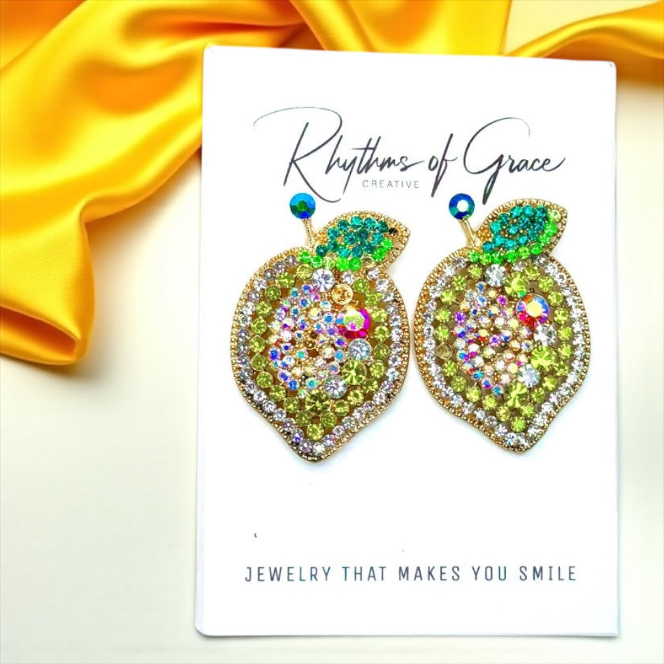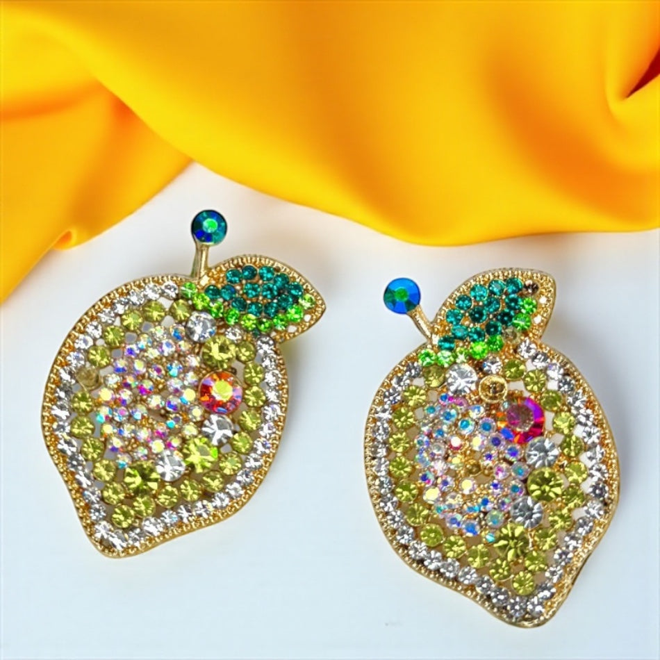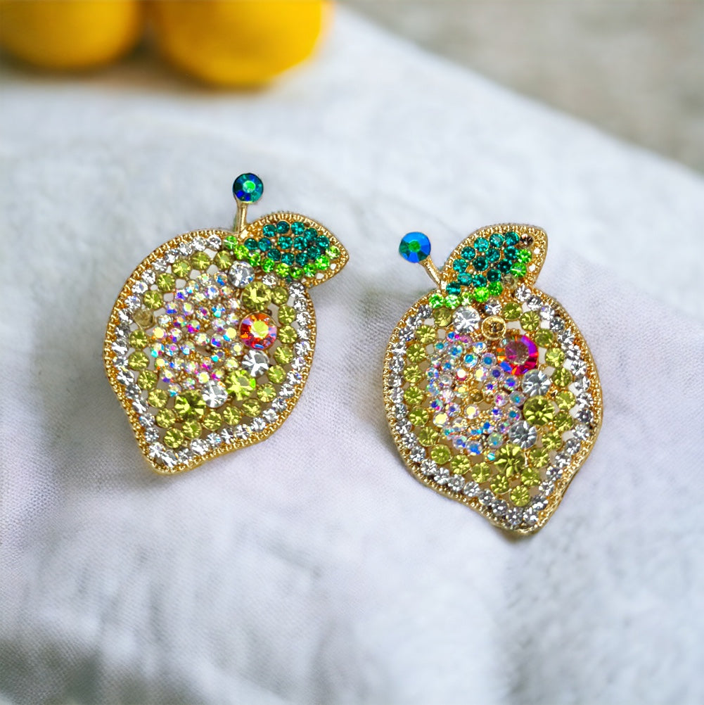 Zesty Lemon Rhinestone Earrings - Sparkle with Sunshine! 🍋