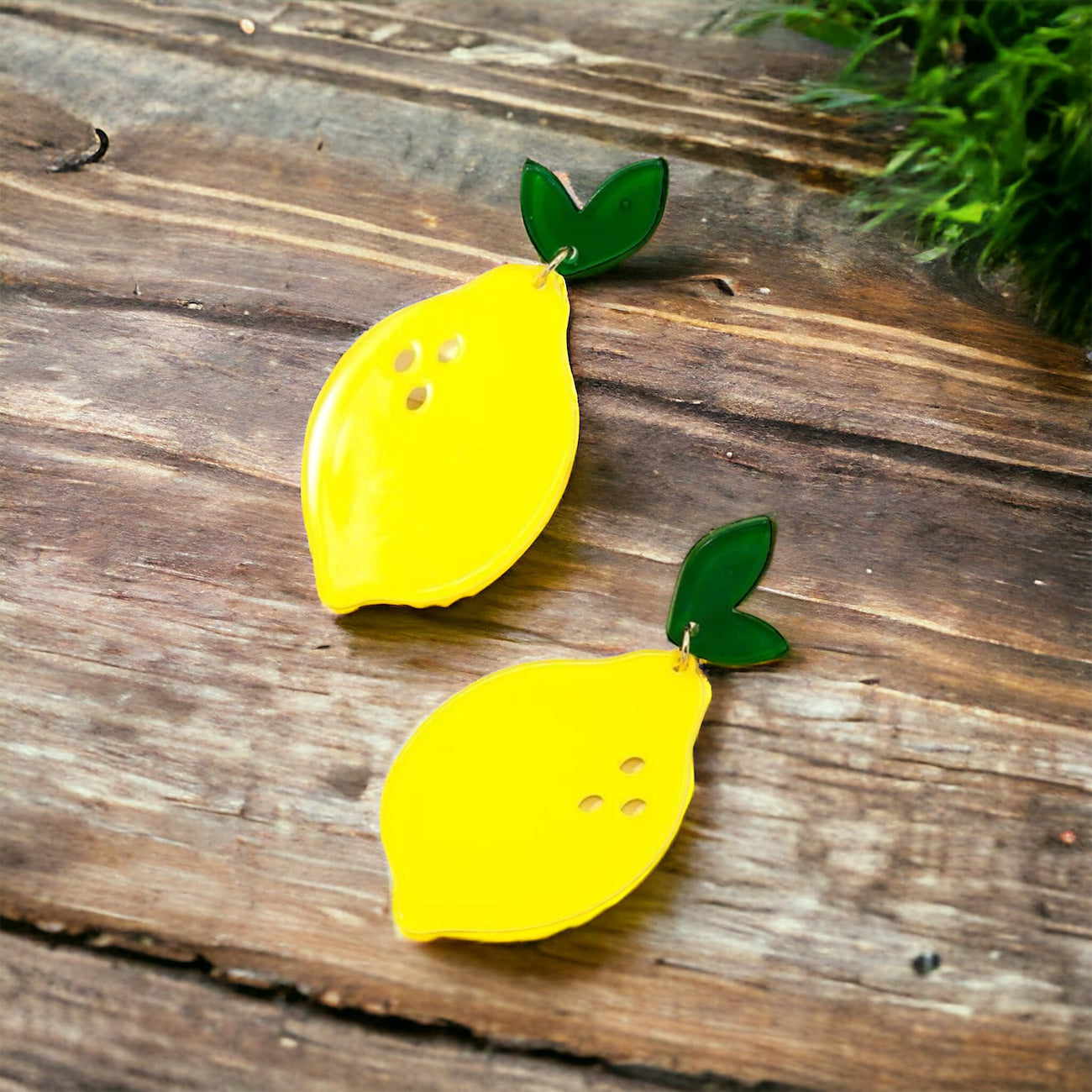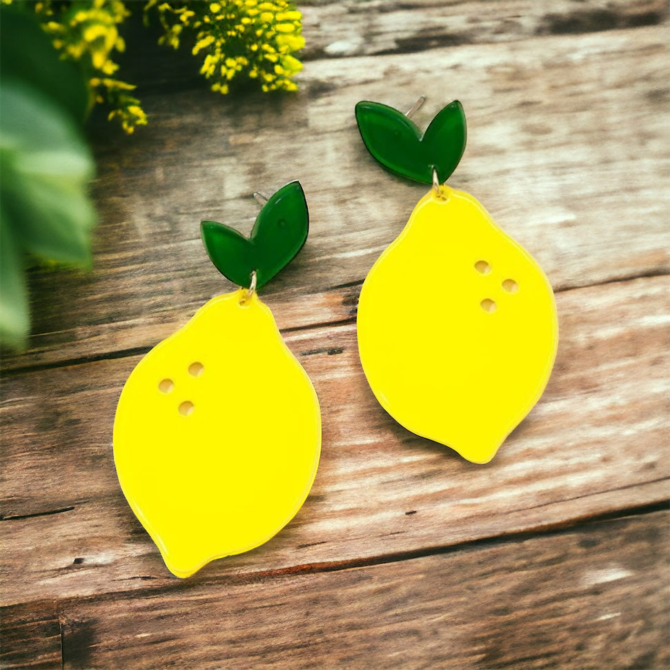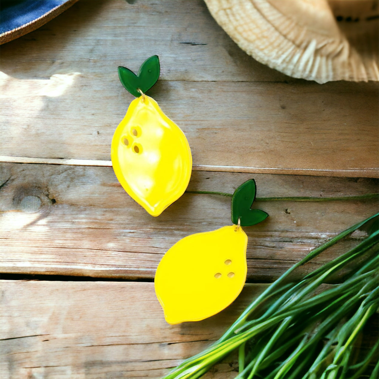 Add a splash of zest to your style with these vibrant lemon dangle earrings! These refreshing earrings capture the sunny allure of ripe lemons, bringing a pop of color and cheer to any outfit. Crafted with attention-grabbing detail, these earrings are a delightful way to showcase your love for all things fresh and citrusy. Whether you're a lover of fruity accessories, a fan of vibrant hues, or simply want to brighten up your look, these earrings are the perfect choice. Ideal for adding a touch of summery flair to your everyday style or for gifting to a fellow fruit enthusiast, these lemon dangle earrings are a must-have for anyone who appreciates the beauty of nature in wearable form. Embrace the juicy charm of these delightful earrings and let your style shine as bright as a sun-kissed lemon!