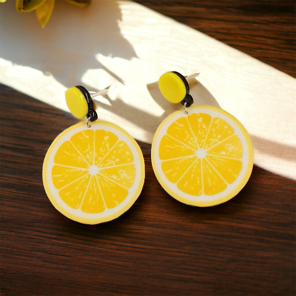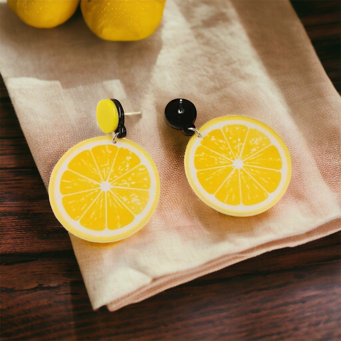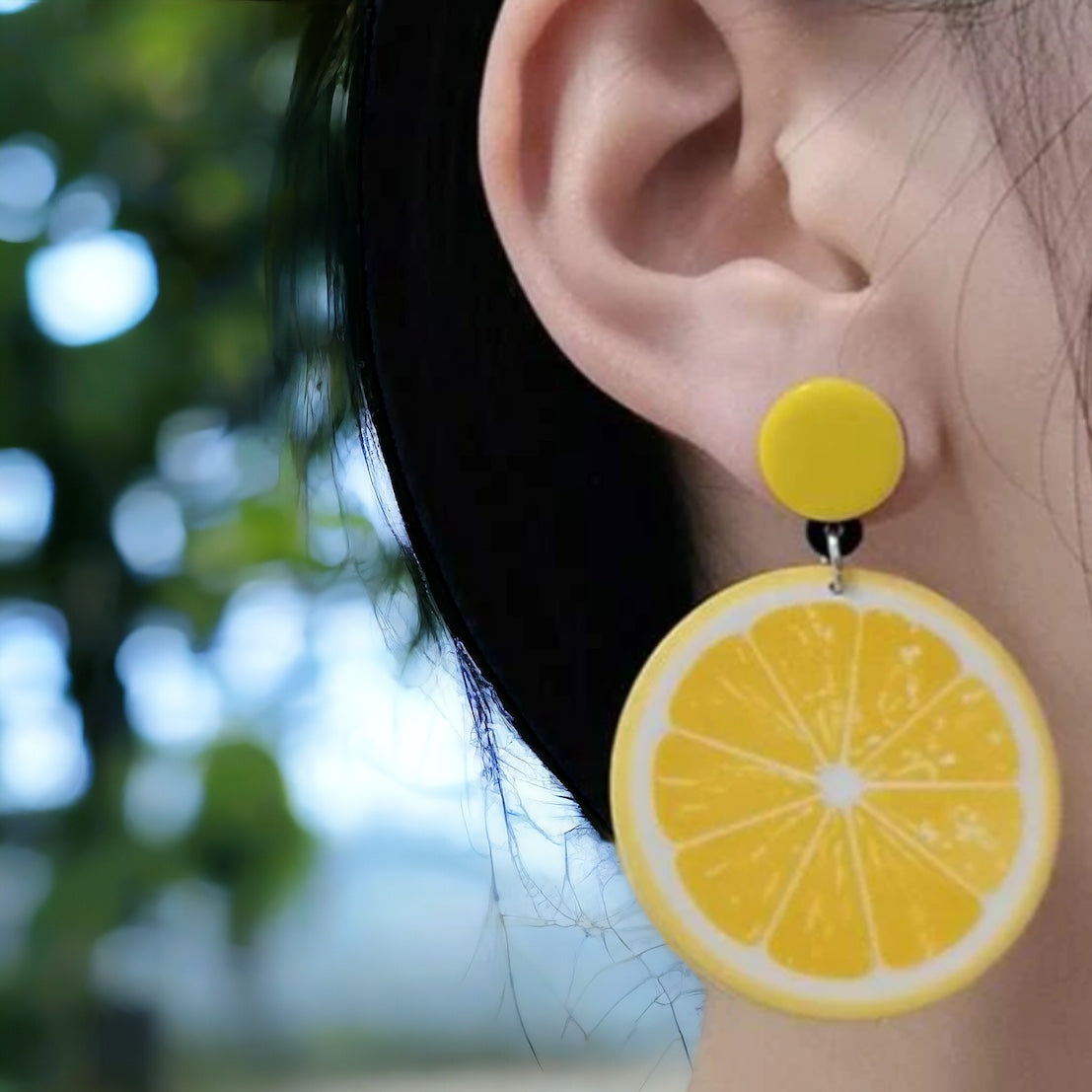 Add a splash of zest to your style with these vibrant lemon dangle earrings! These refreshing earrings capture the sunny allure of ripe lemons, bringing a pop of color and cheer to any outfit. Crafted with attention-grabbing detail, these earrings are a delightful way to showcase your love for all things fresh and citrusy. Whether you're a lover of fruity accessories, a fan of vibrant hues, or simply want to brighten up your look, these earrings are the perfect choice. Ideal for adding a touch of summery flair to your everyday style or for gifting to a fellow fruit enthusiast, these lemon dangle earrings are a must-have for anyone who appreciates the beauty of nature in wearable form. Embrace the juicy charm of these delightful earrings and let your style shine as bright as a sun-kissed lemon!