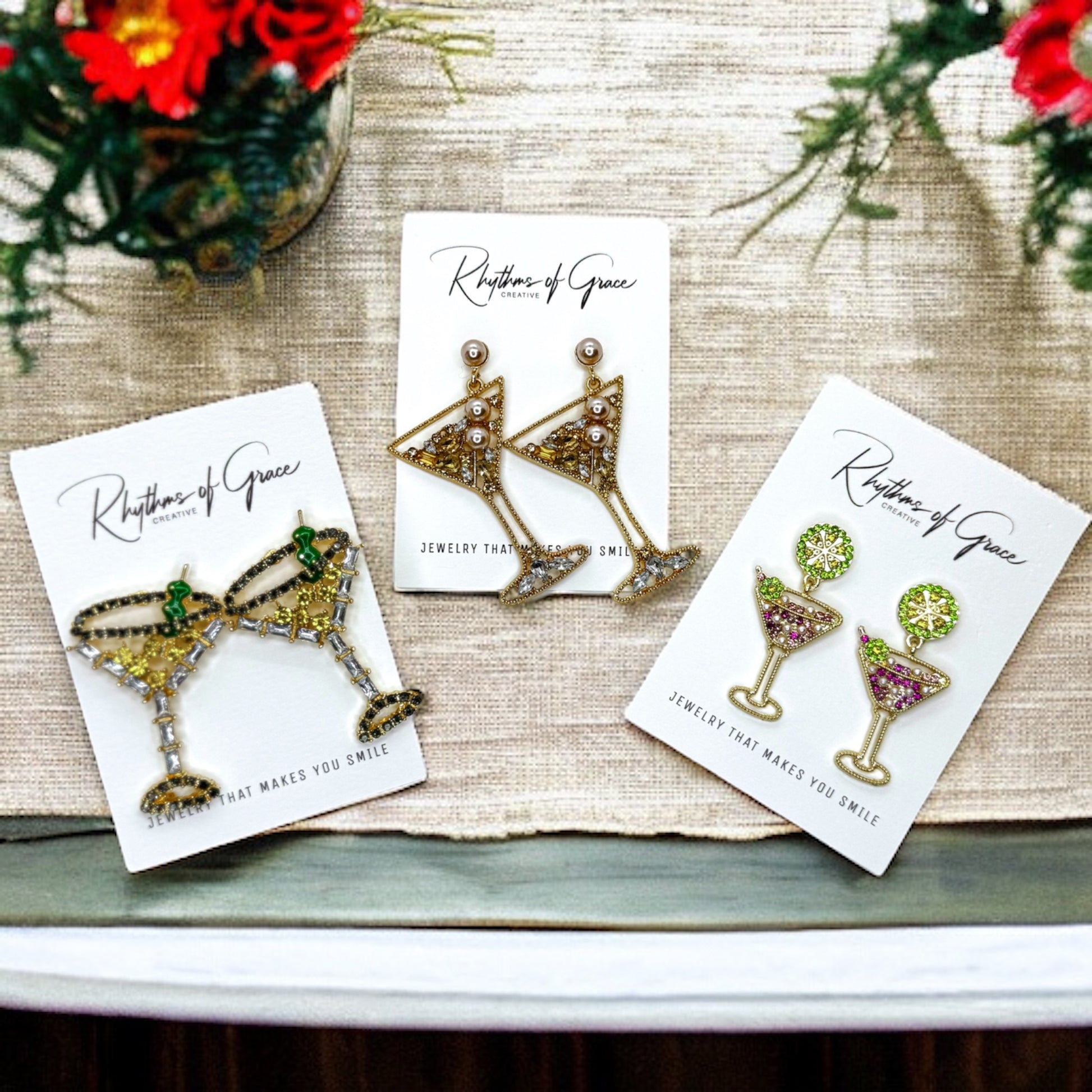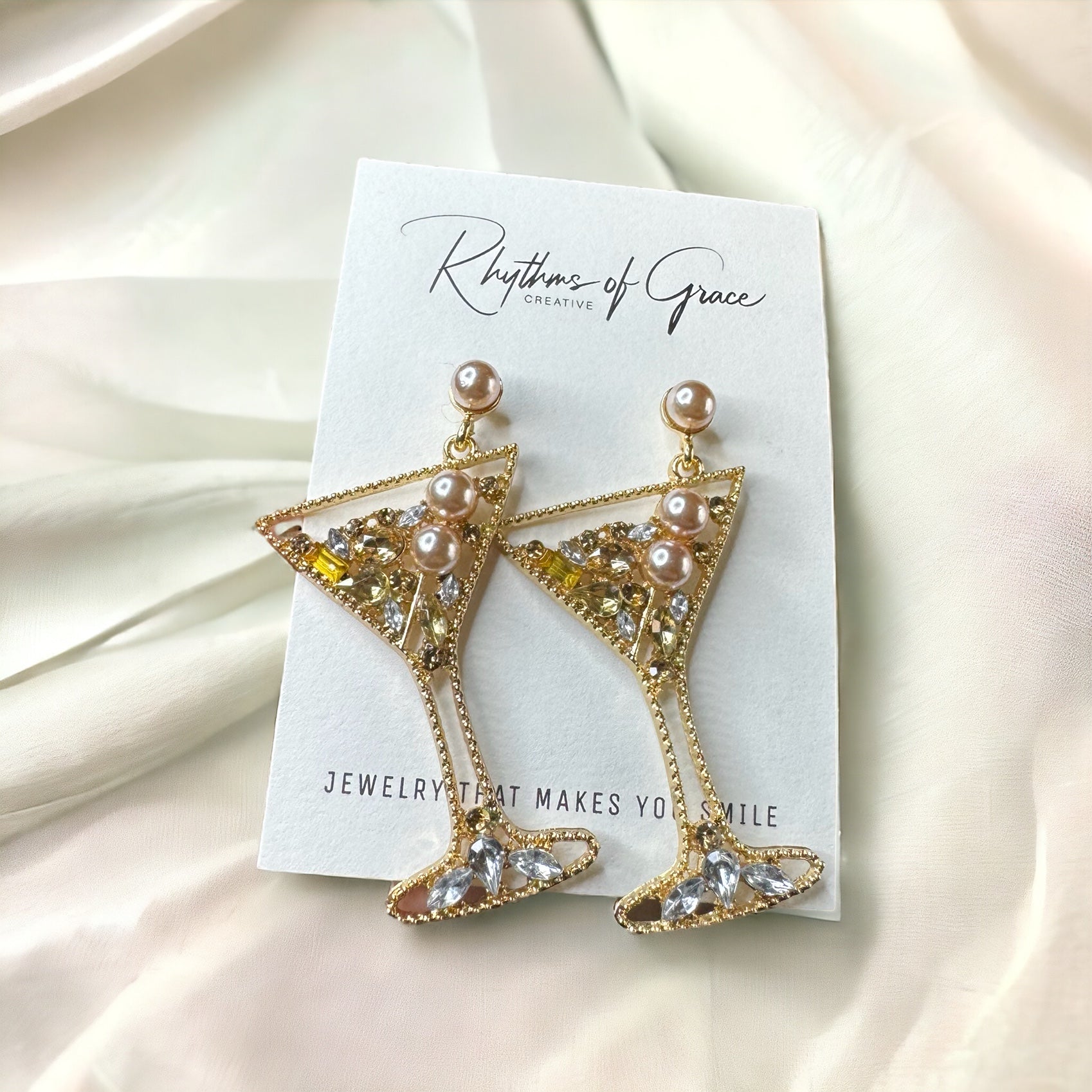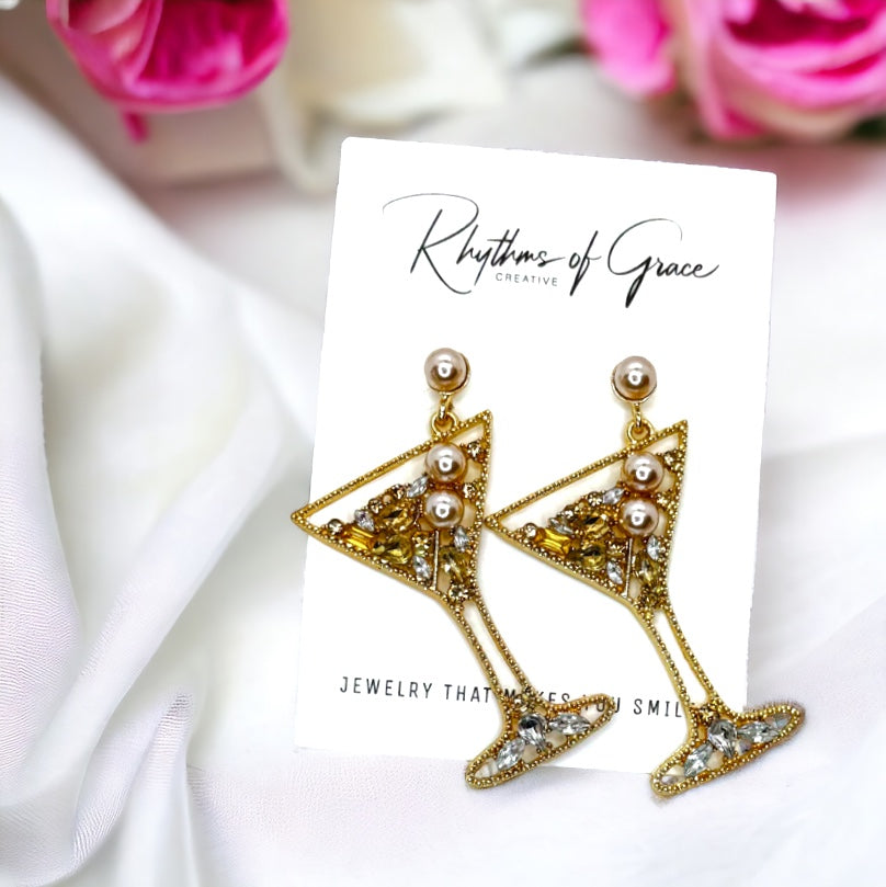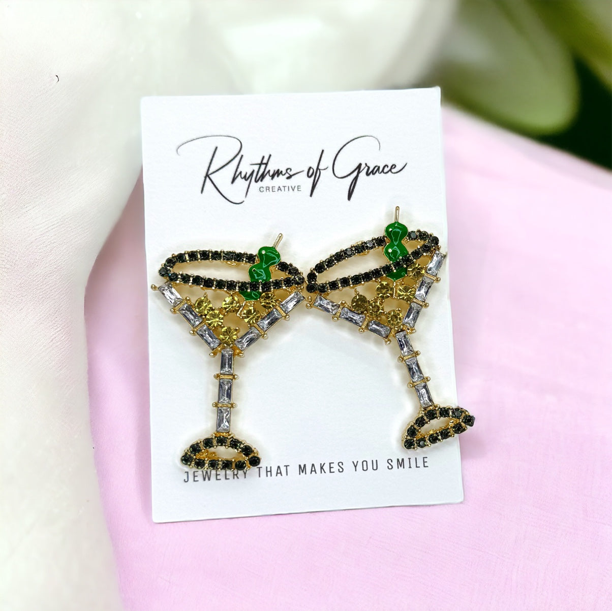 Martini Earrings - Martini Jewelry, Champagne Bottle, Wine Earrings, Shaken Not Stirred, Martini Glass, Wine Accessories