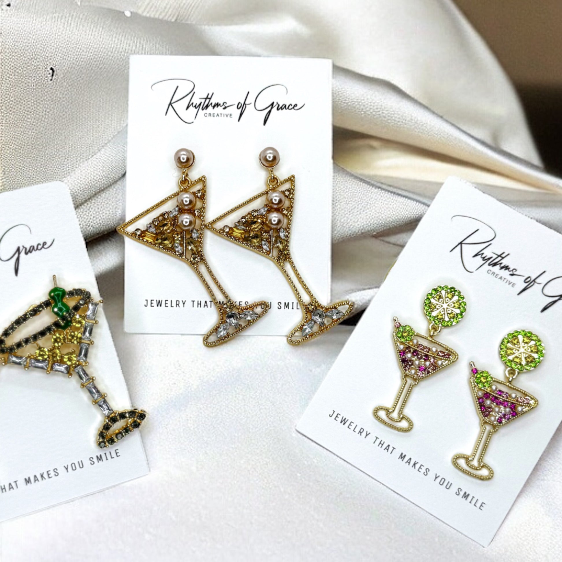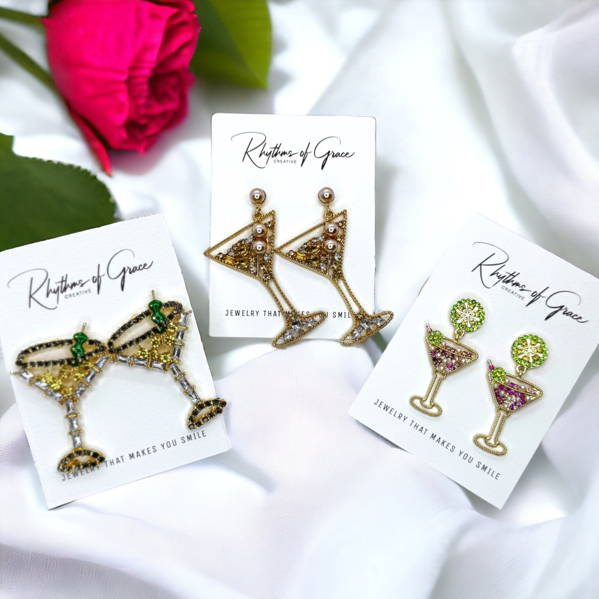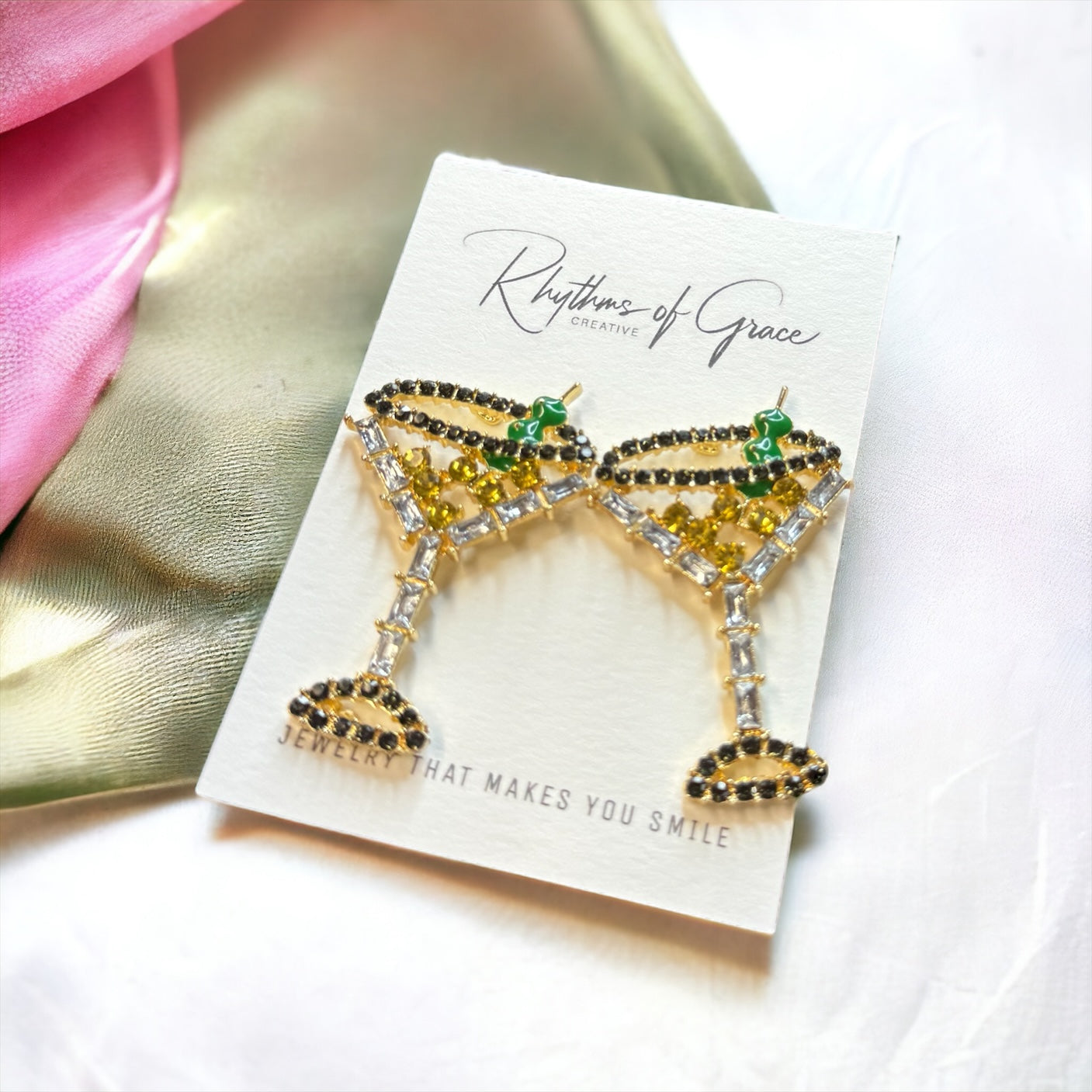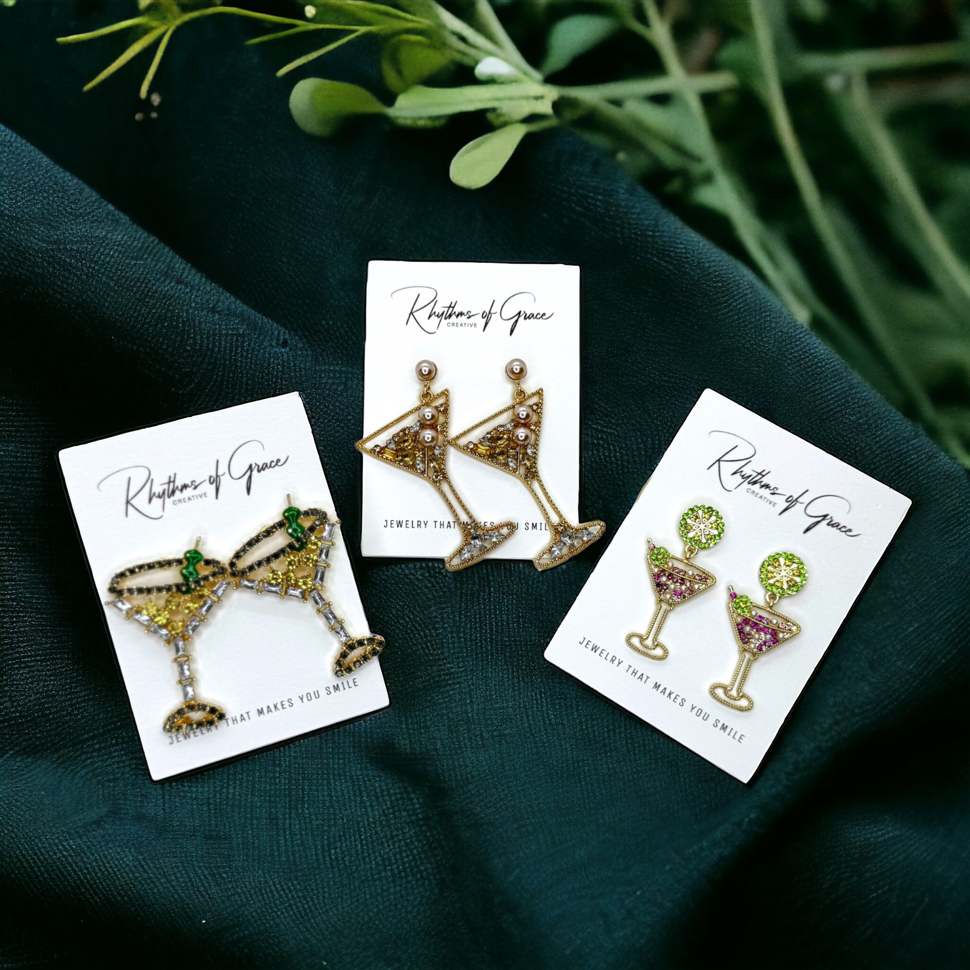 Martini Earrings - Martini Jewelry, Champagne Bottle, Wine Earrings, Shaken Not Stirred, Martini Glass, Wine Accessories