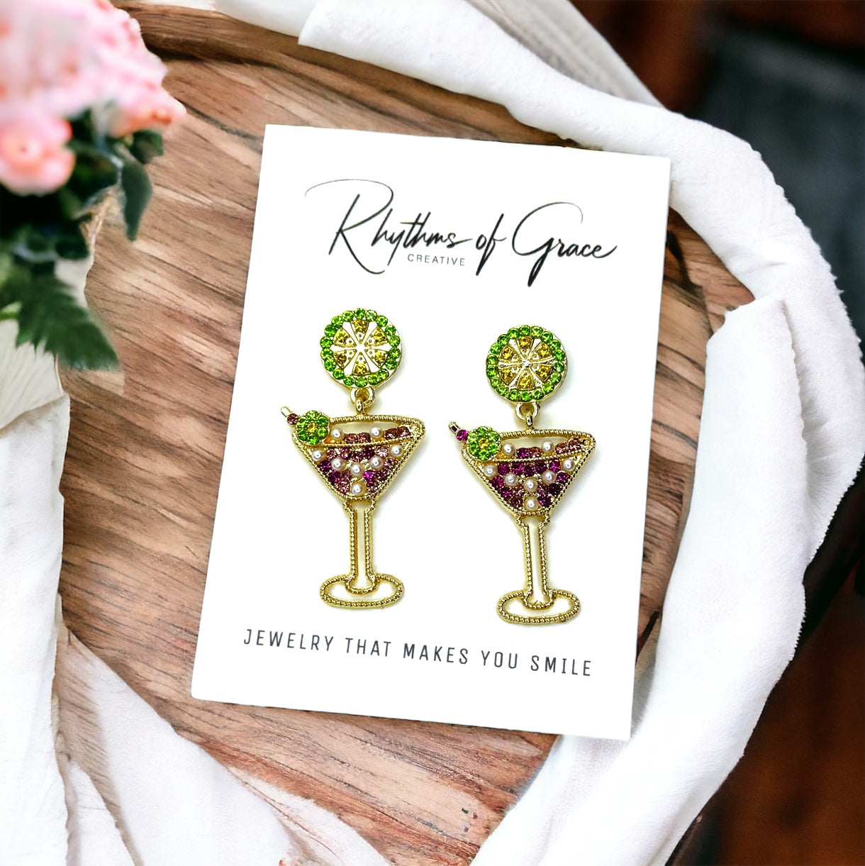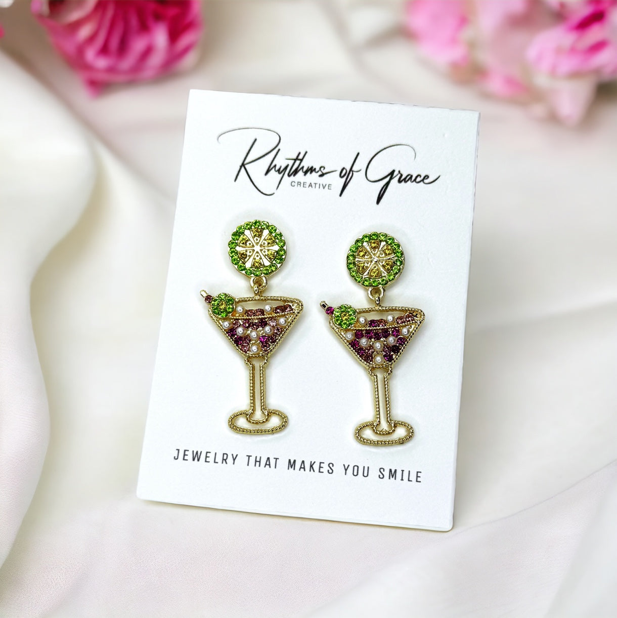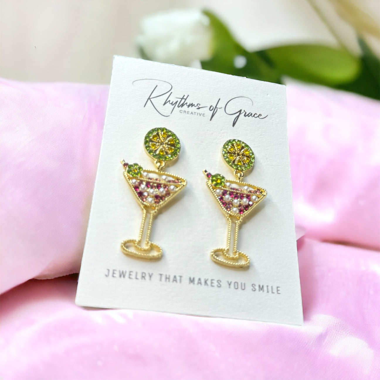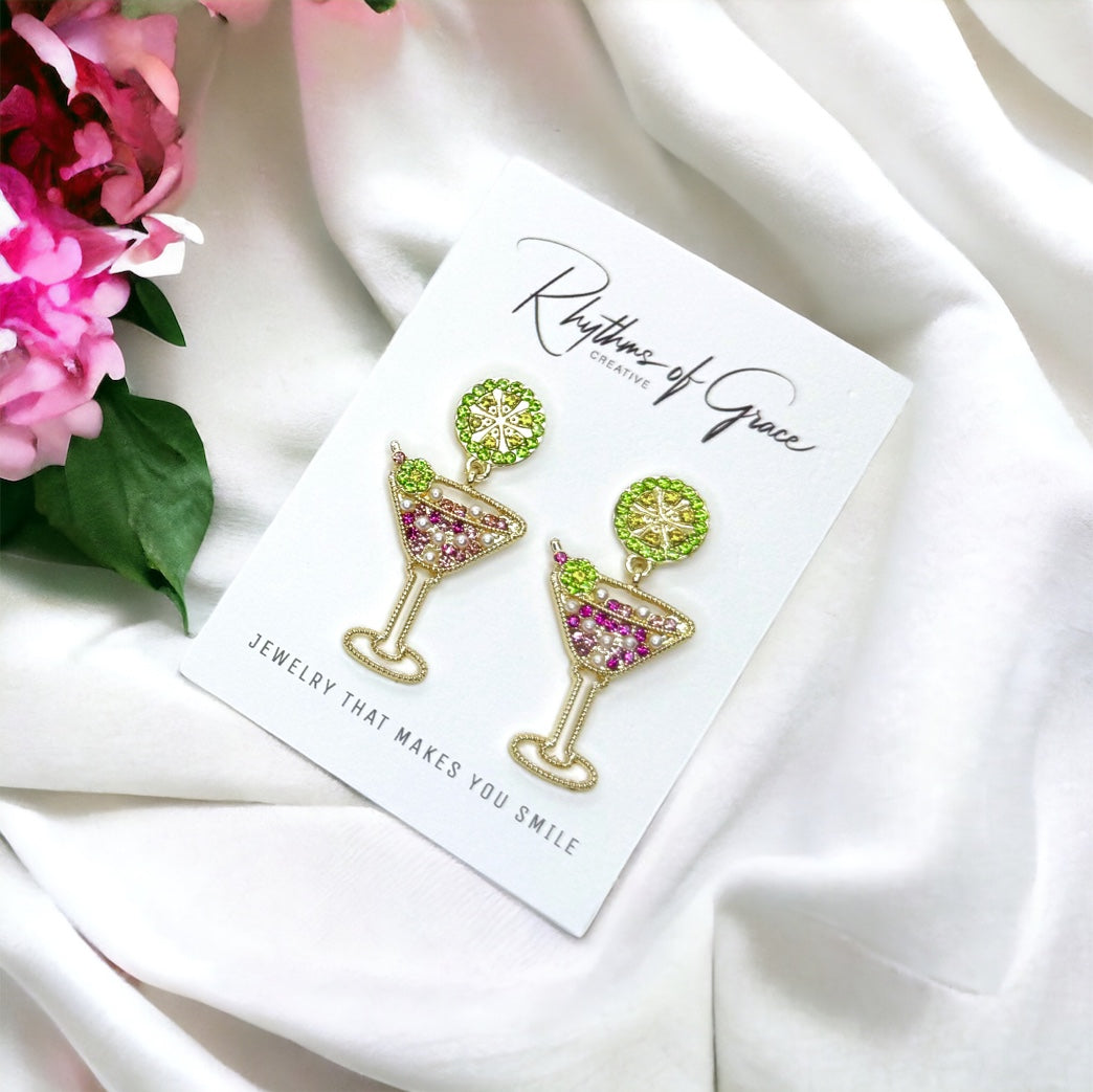 Martini Earrings - Martini Jewelry, Champagne Bottle, Wine Earrings, Shaken Not Stirred, Martini Glass, Wine Accessories