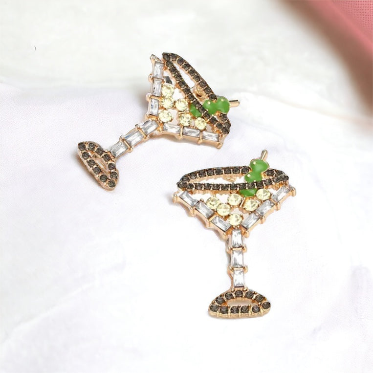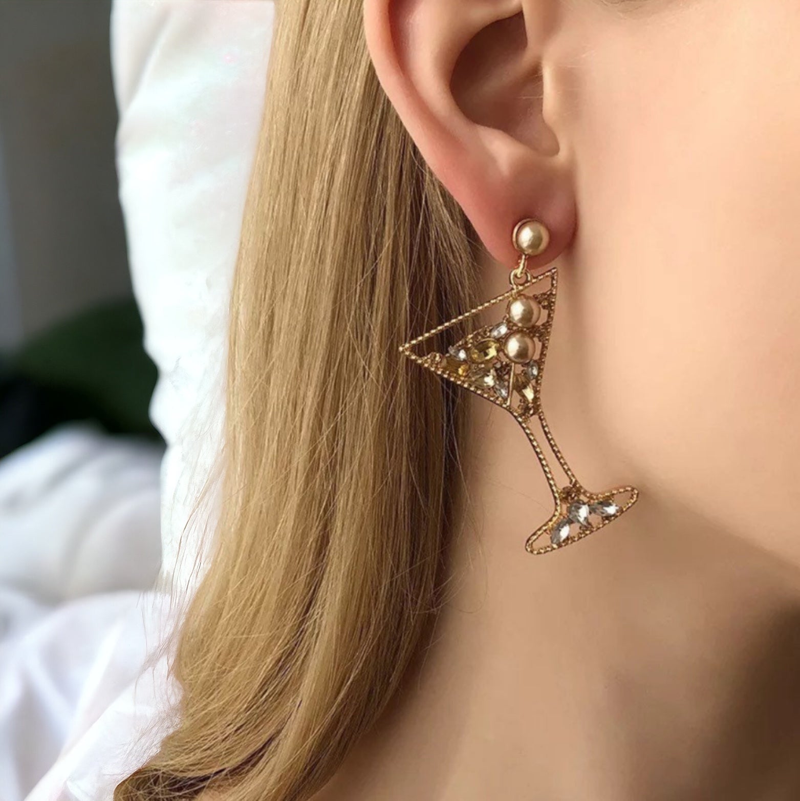Elevate your style with our dazzling rhinestone martini glass earrings, designed to capture the essence of celebration and sophistication. These exquisite earrings embody the spirit of glamour and luxury, adding a touch of refinement to any outfit. Crafted with precision and attention to detail, they are the perfect accessory for those who appreciate the finer things in life. Make a statement and exude elegance with every wear.