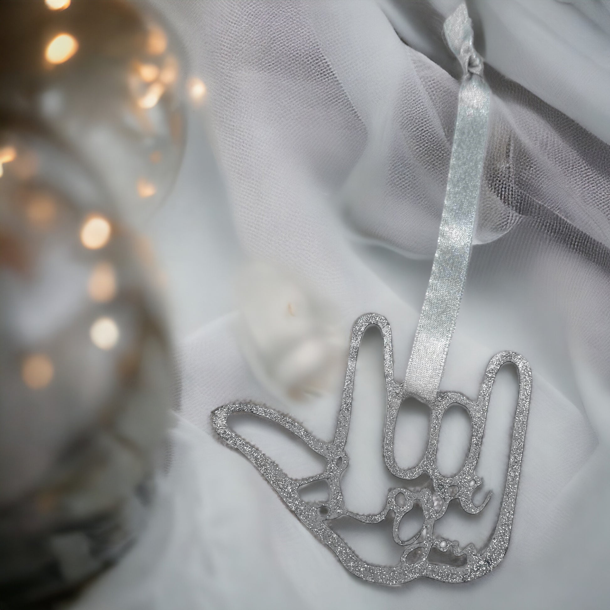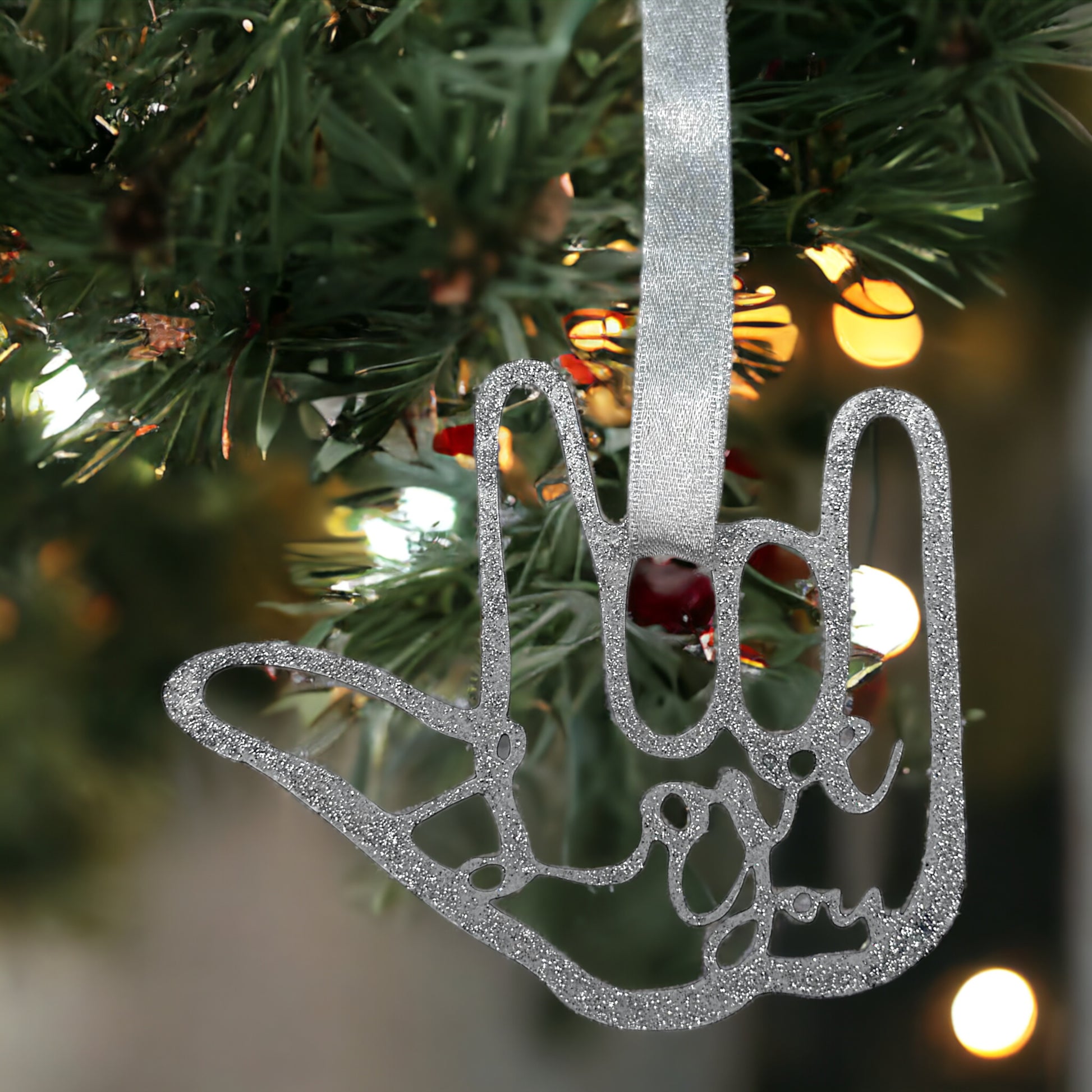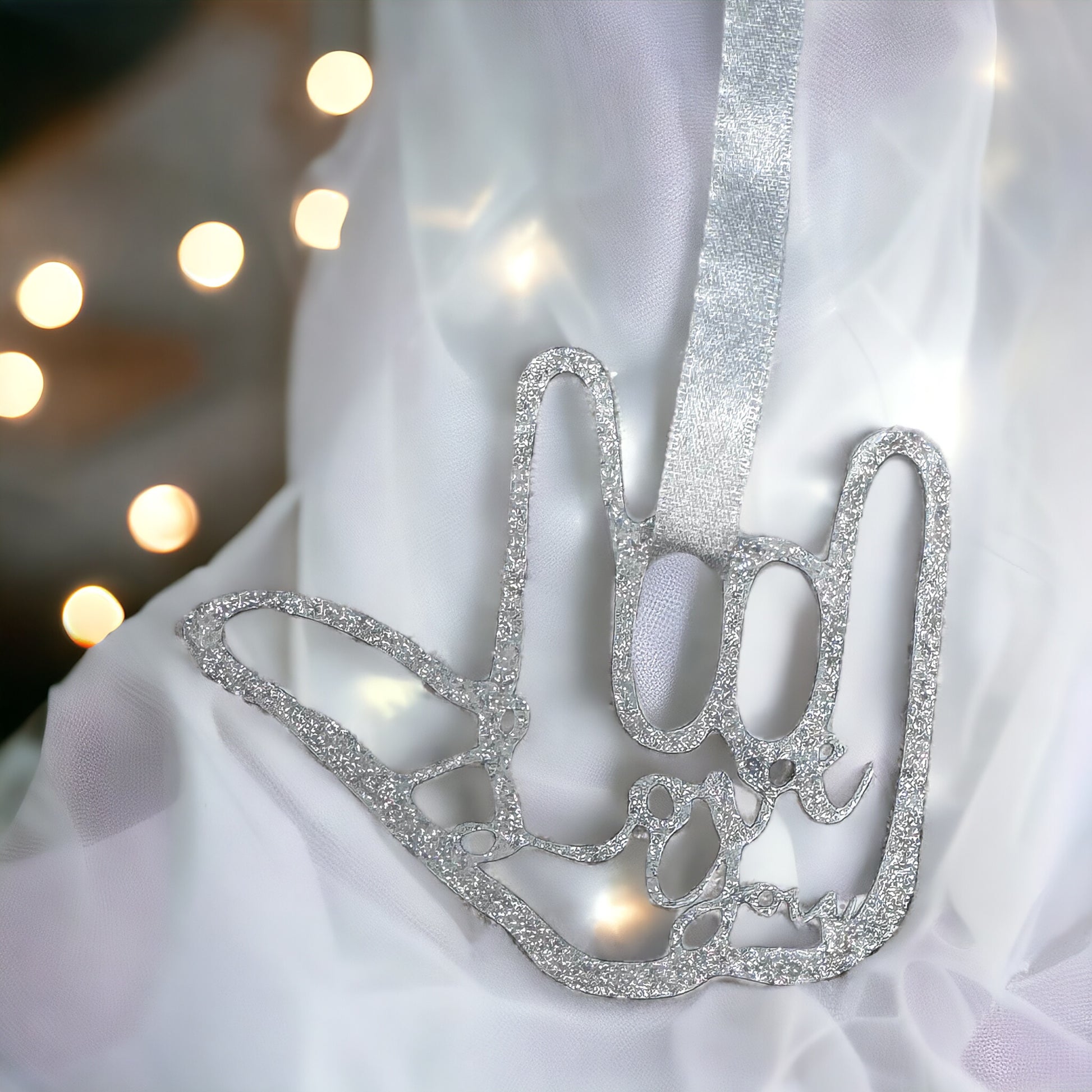 Celebrate love and connection with our exquisite metal ornament, perfect for any occasion! This stunning piece showcases the sign language symbol for "I Love You," making it a heartfelt addition to your holiday decorations or a unique gift for a loved one.