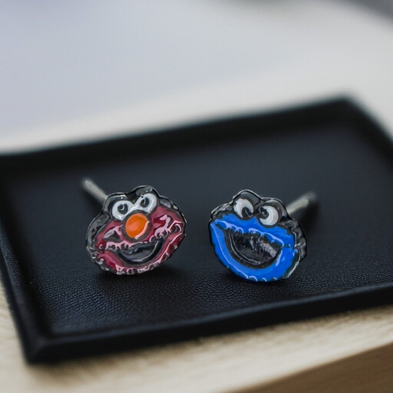 Get ready to bring some fun to your accessory game with our playful mismatched Elmo and Cookie Monster stud earrings! 🎈✨