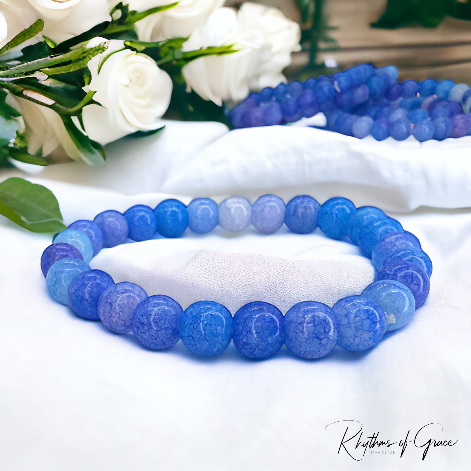 Ocean Vibes: Stretchy Blue Glass Beaded Bracelet