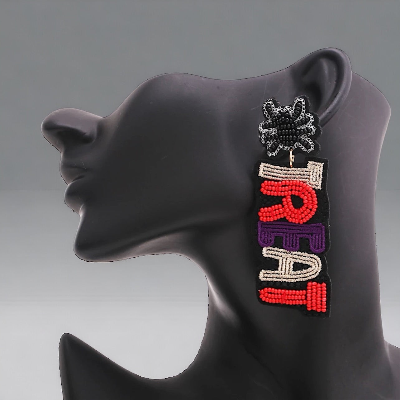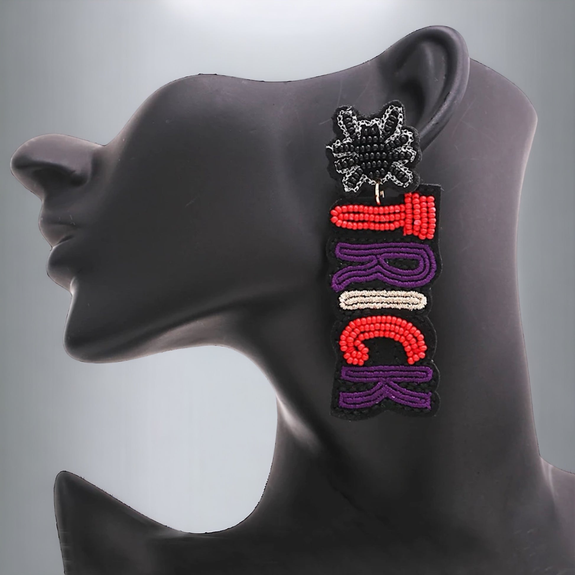 One-of-a-Kind Halloween Beaded Trick-or-Treat Earrings - Spooky Fashion Accessory for Fall!