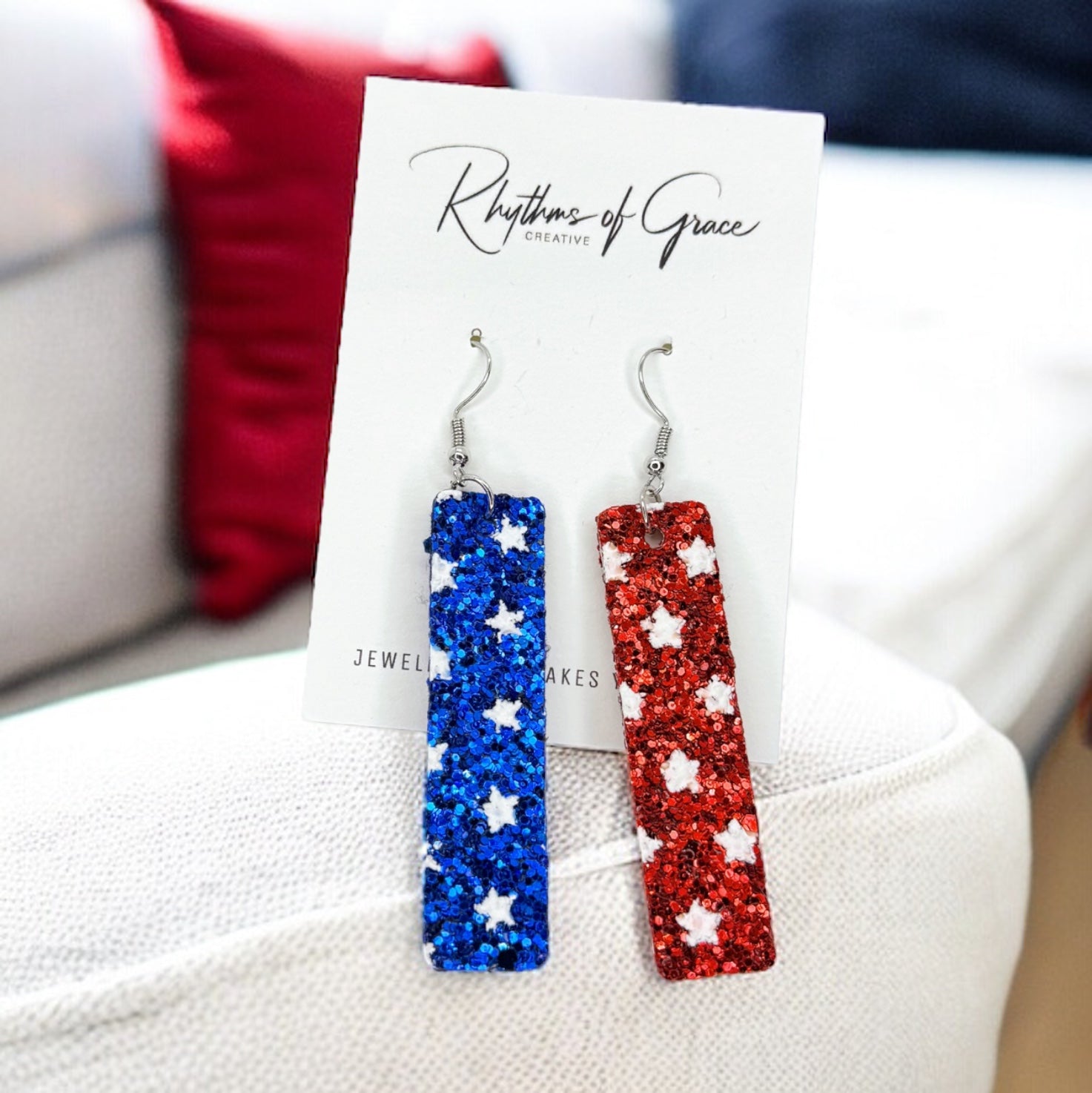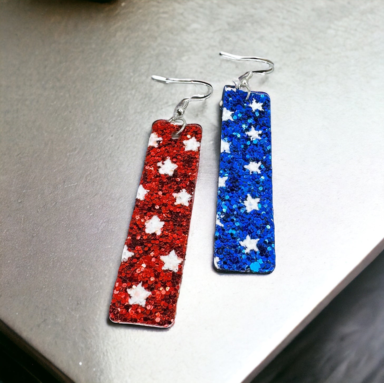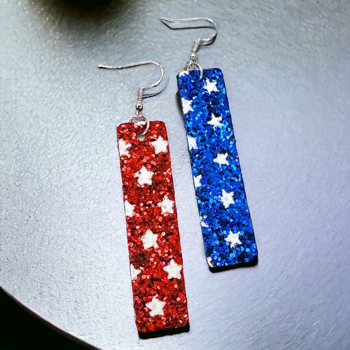 Patriotic Glitter Dangle Earrings - Sparkly and Simple