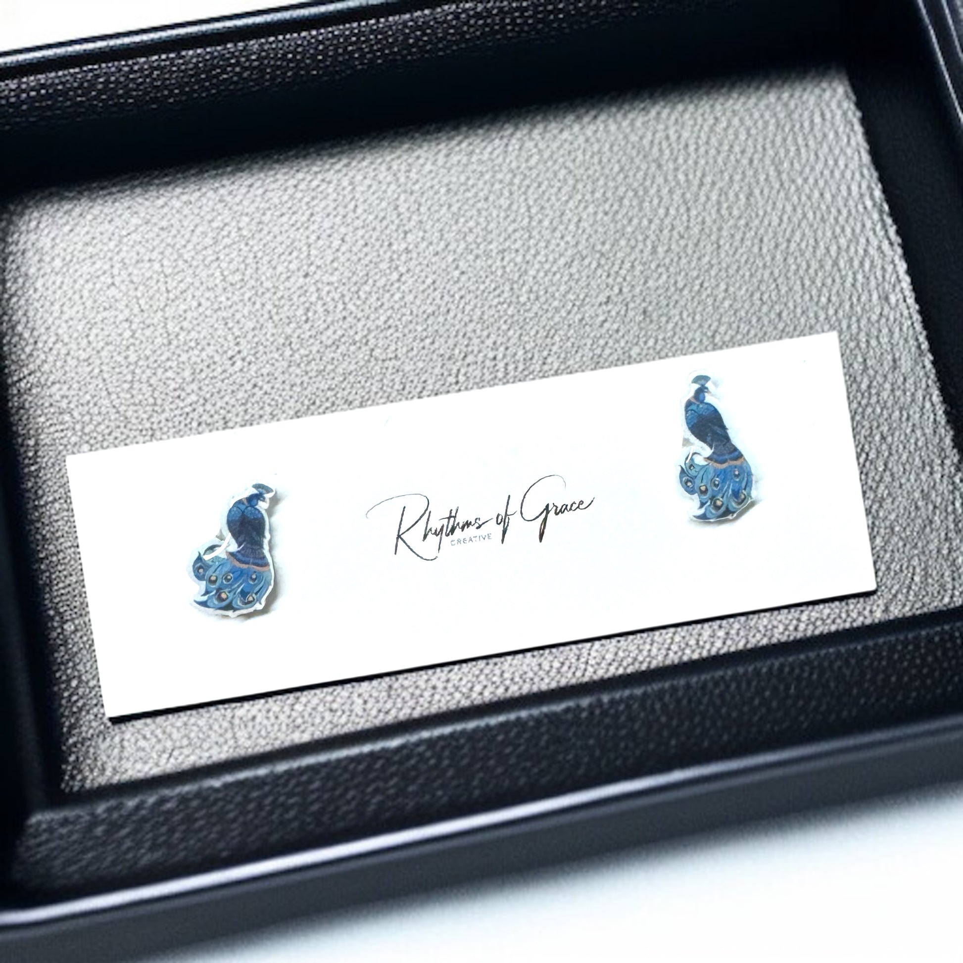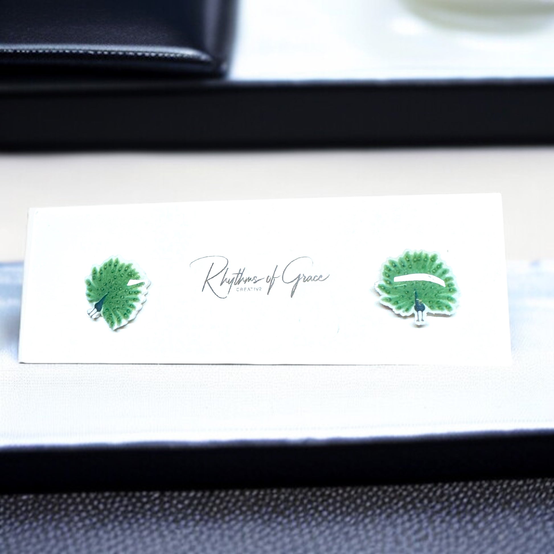 Unleash your inner elegance with our beautifully handcrafted Peacock Stud Earrings! These stunning pieces of jewelry celebrate the vibrant beauty of peacocks, bringing a splash of color and charm to any outfit.