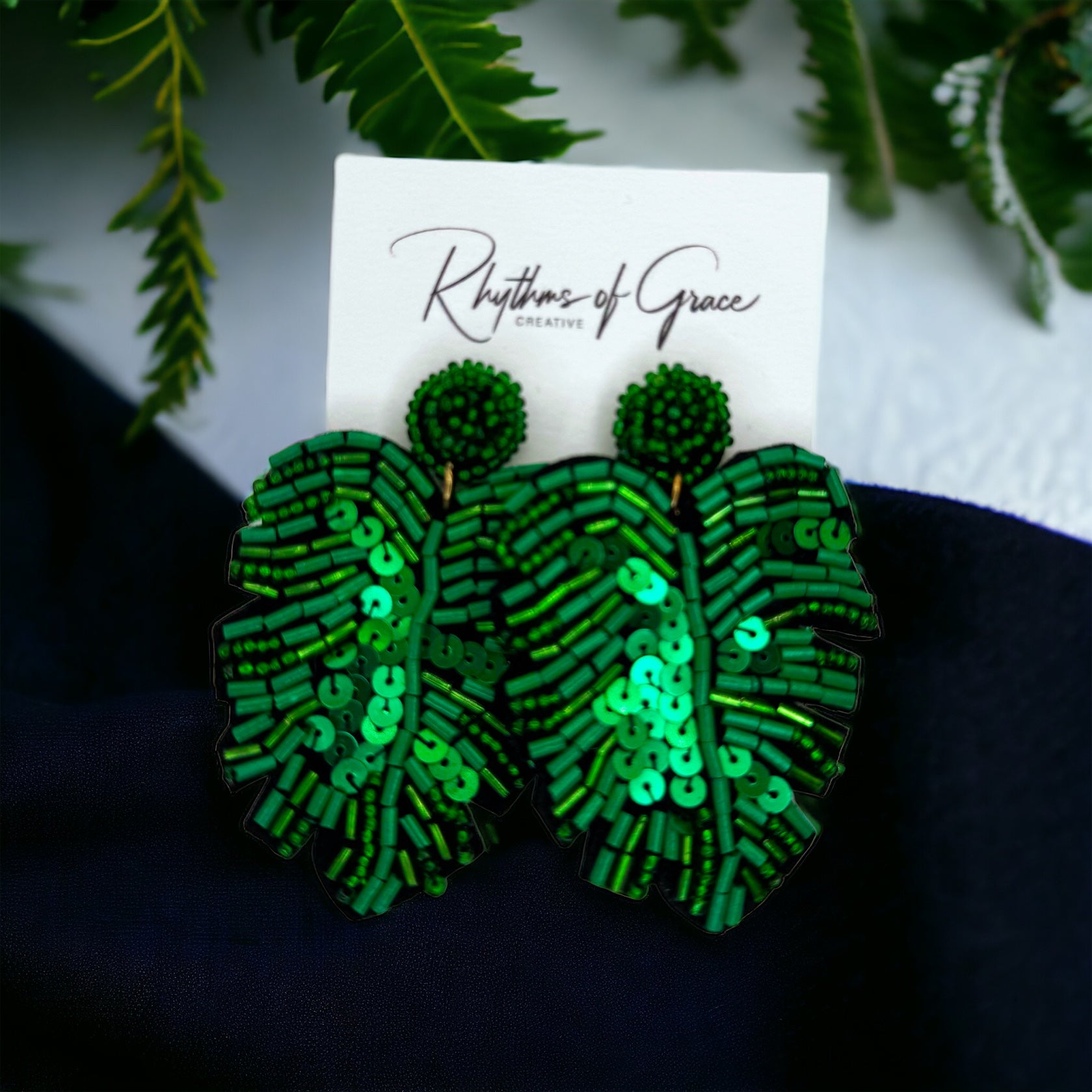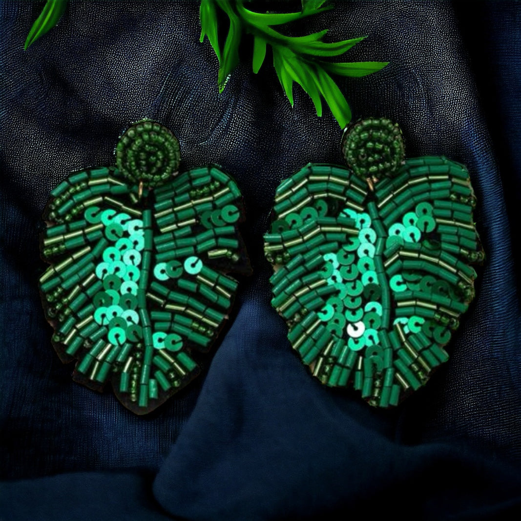 - Unique Design: Leaf-shaped earrings adorned with shimmering sequins and vibrant glass beads.