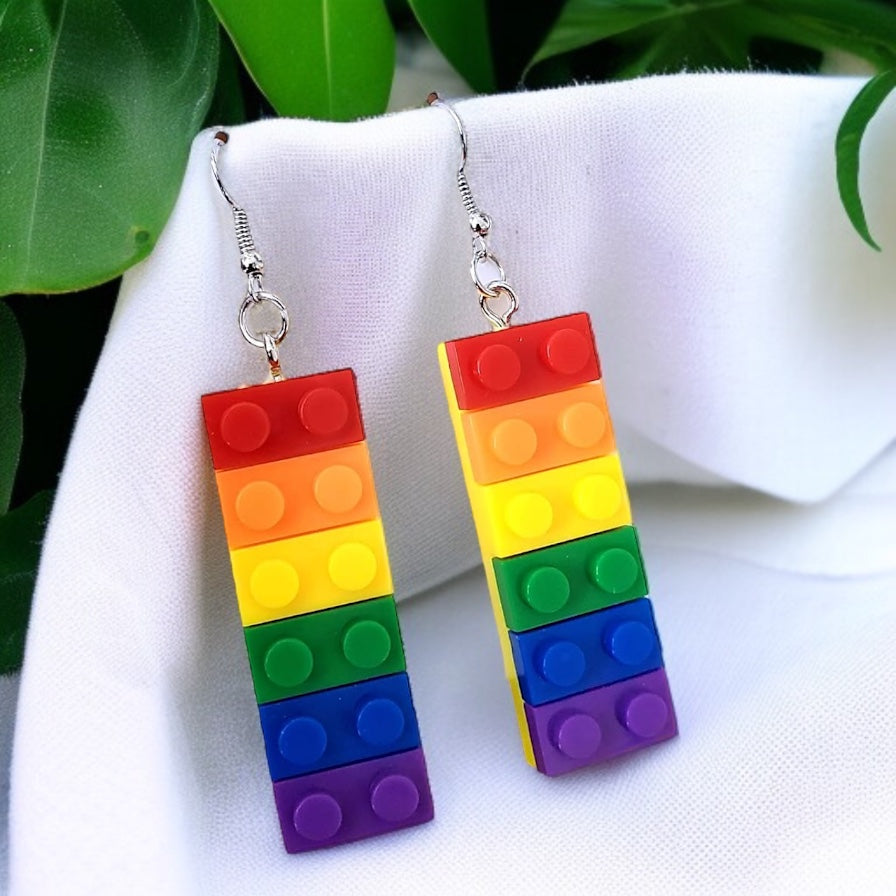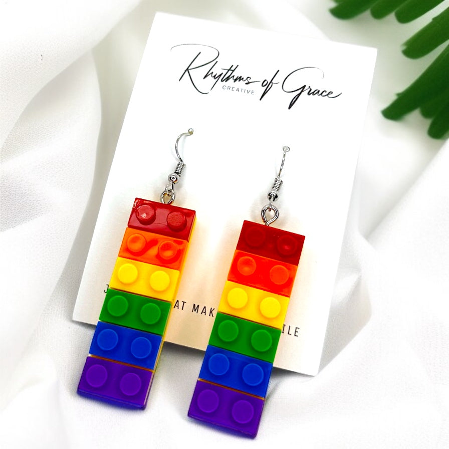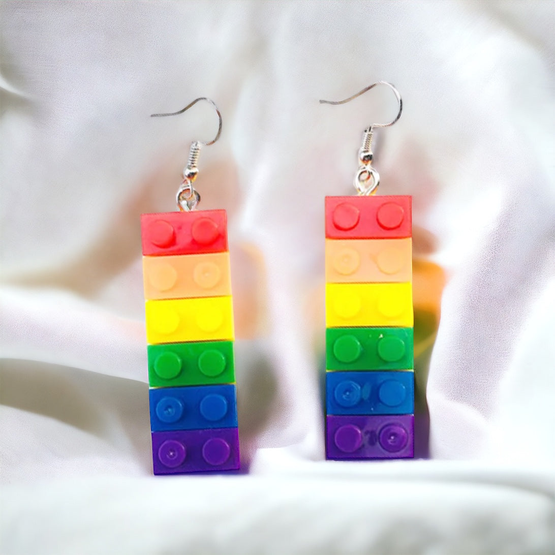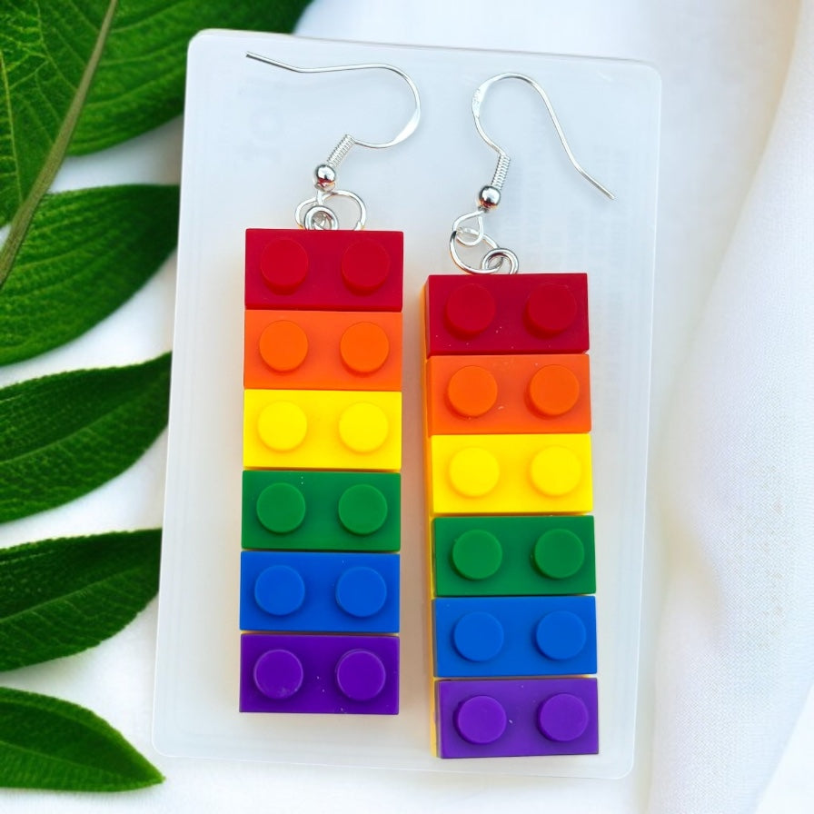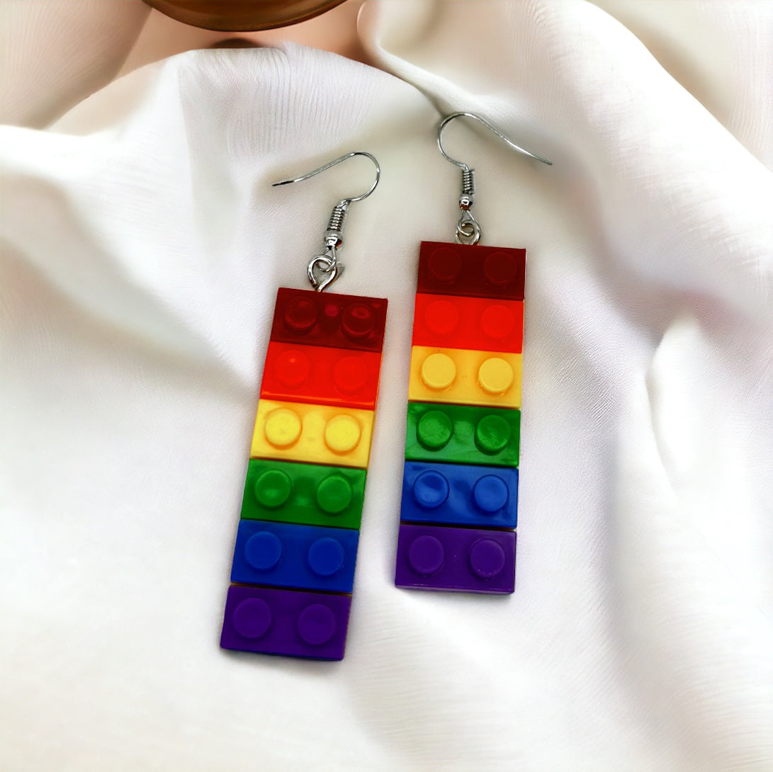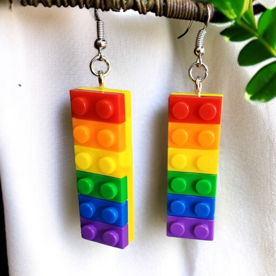 Colorful Love: Rainbow Block Dangle Earrings for Proud Hearts!