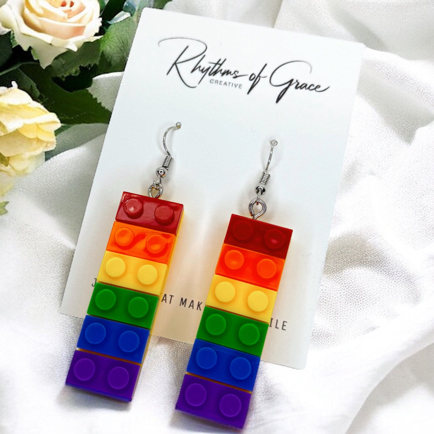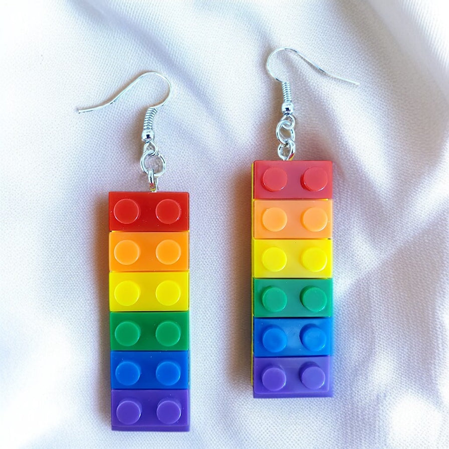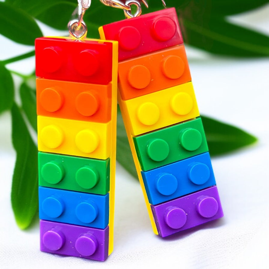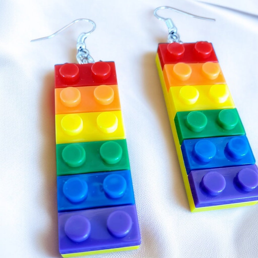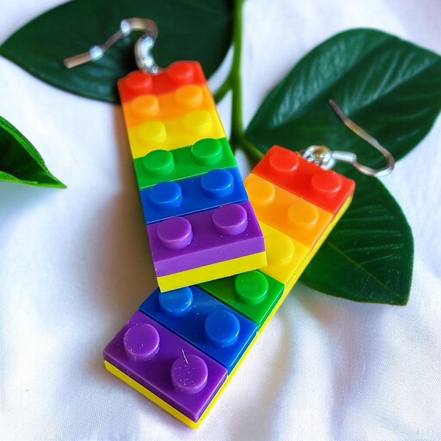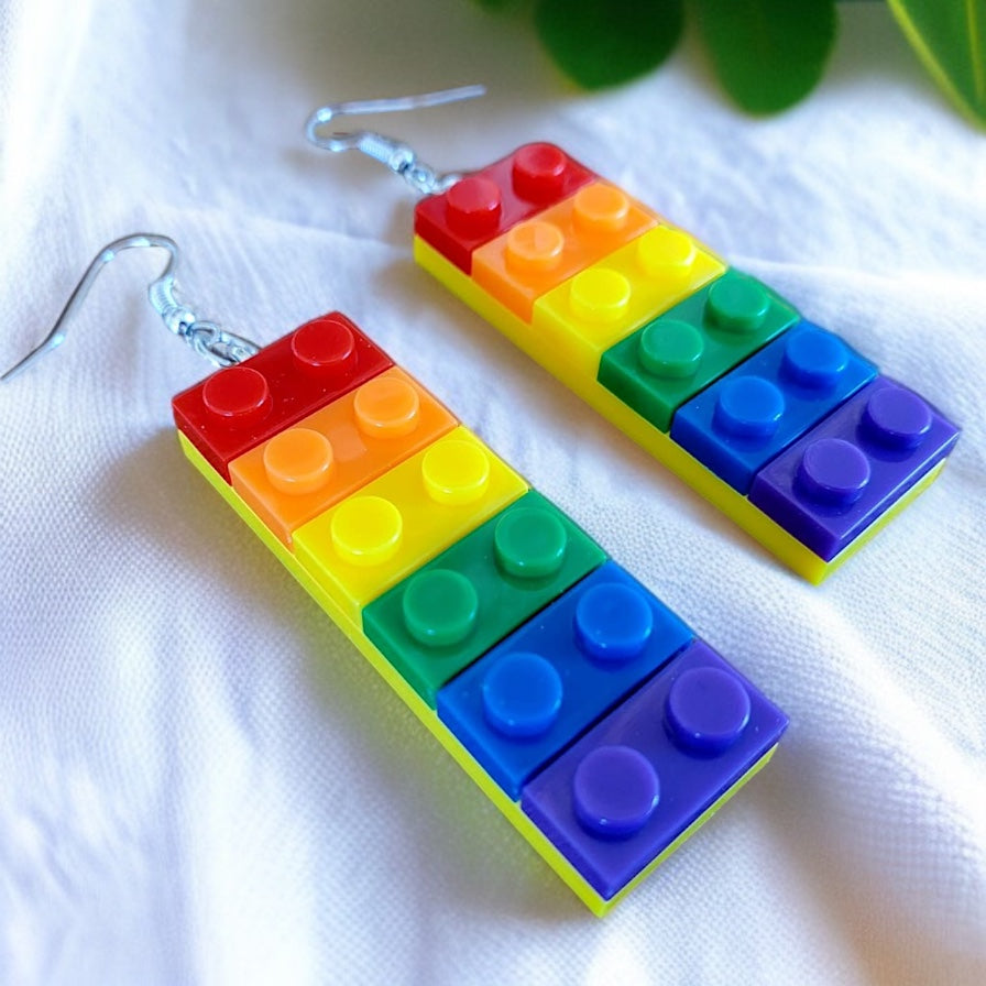 Colorful Love: Rainbow Block Dangle Earrings for Proud Hearts!