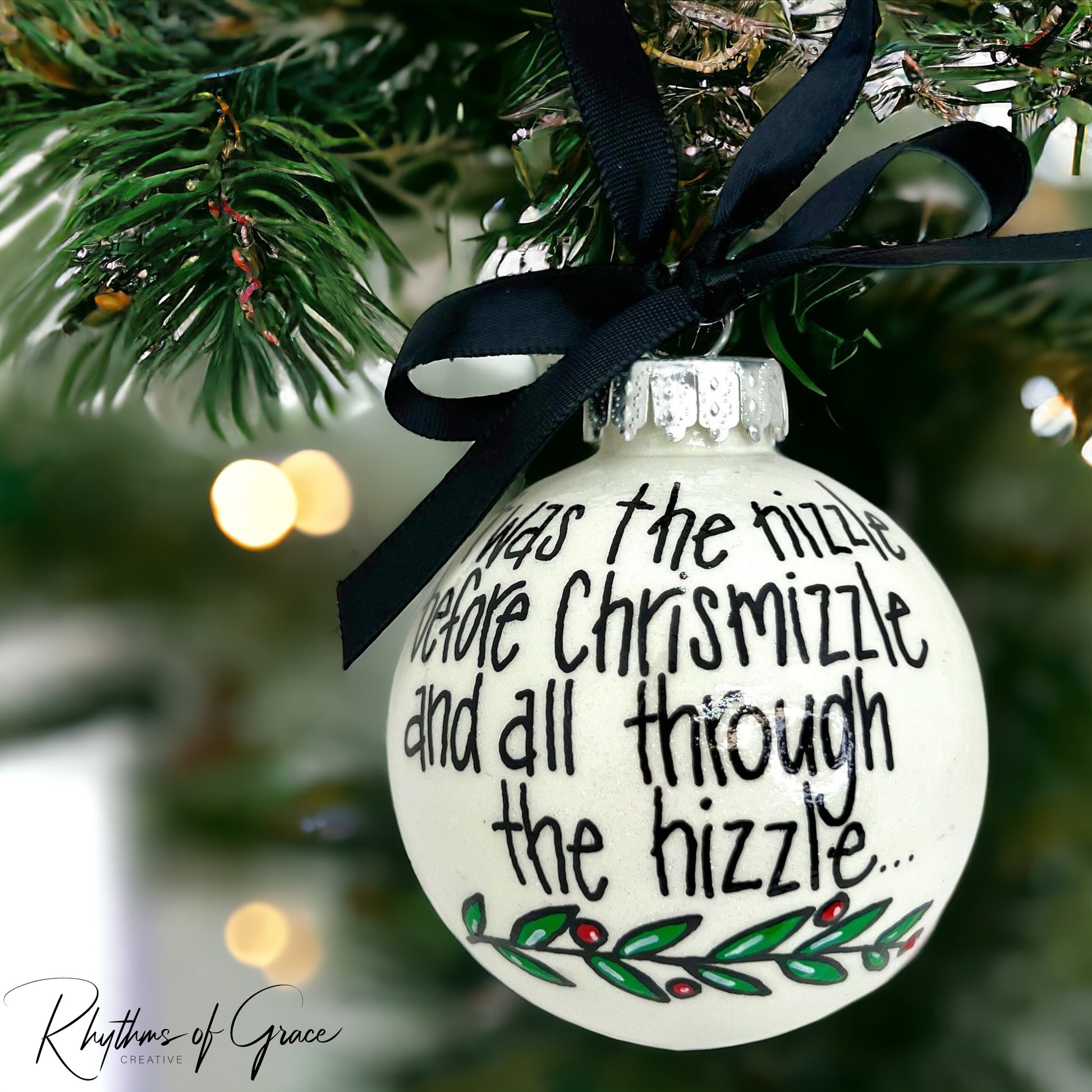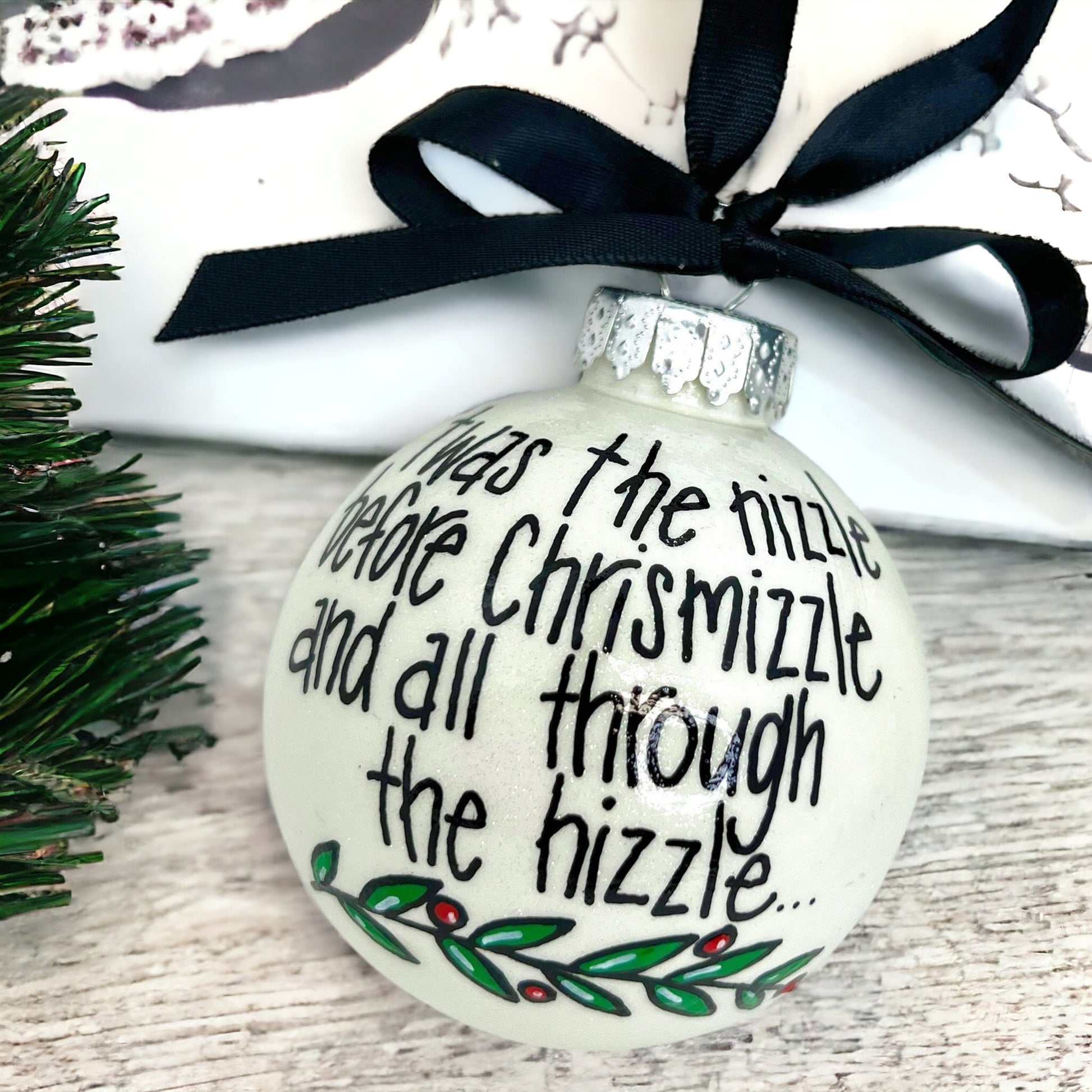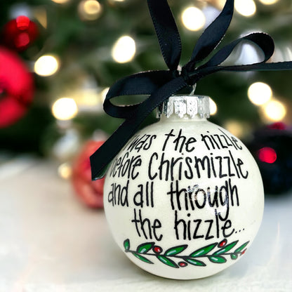 Add a little humor and flair to your holiday decor with this fun and trendy ornament: “‘Twas the night before Chrismizzle and all through the hizzle.” Perfect for anyone who loves a little slang in their holiday celebrations!