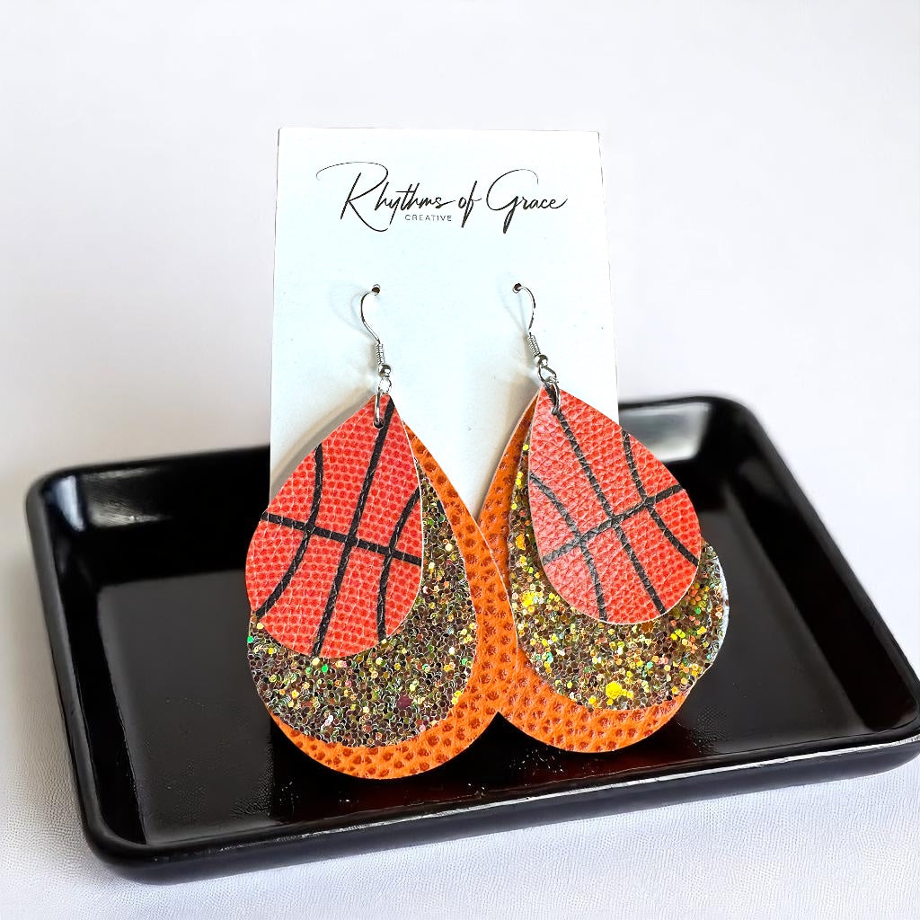 Sparkle on the Court: Basketball Glitter Dangle Earrings 🏀