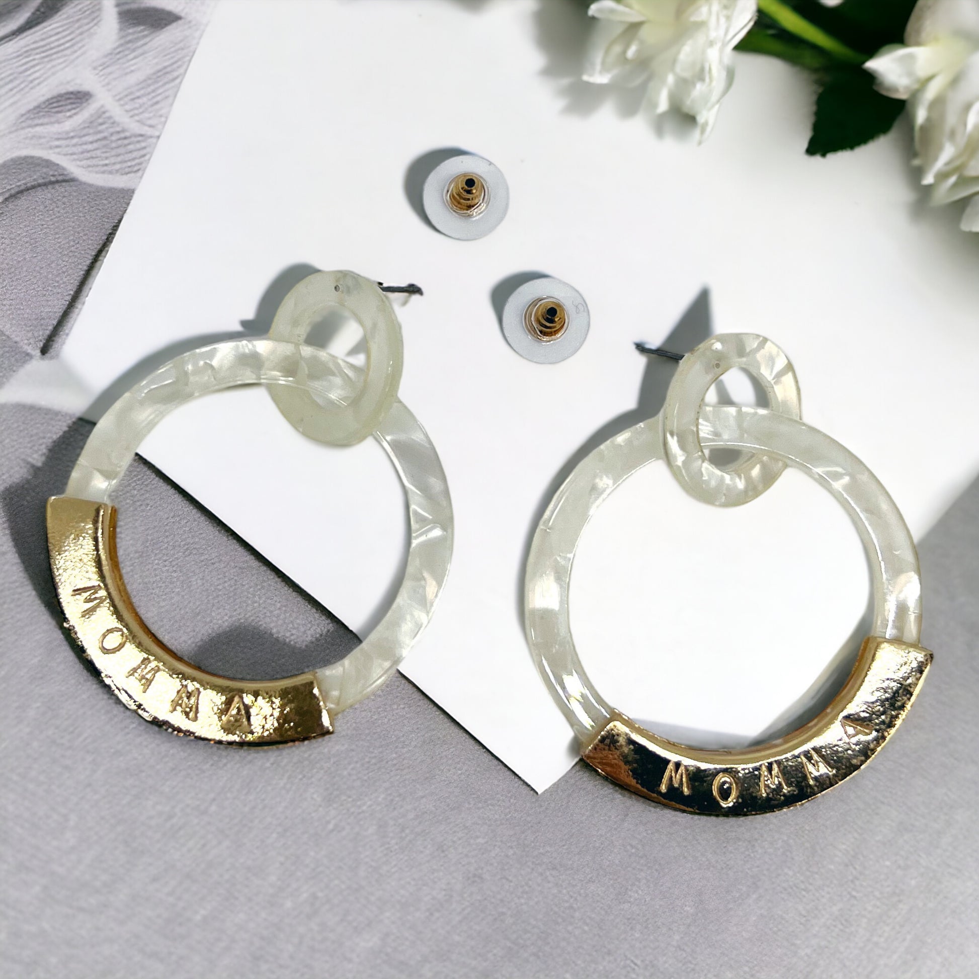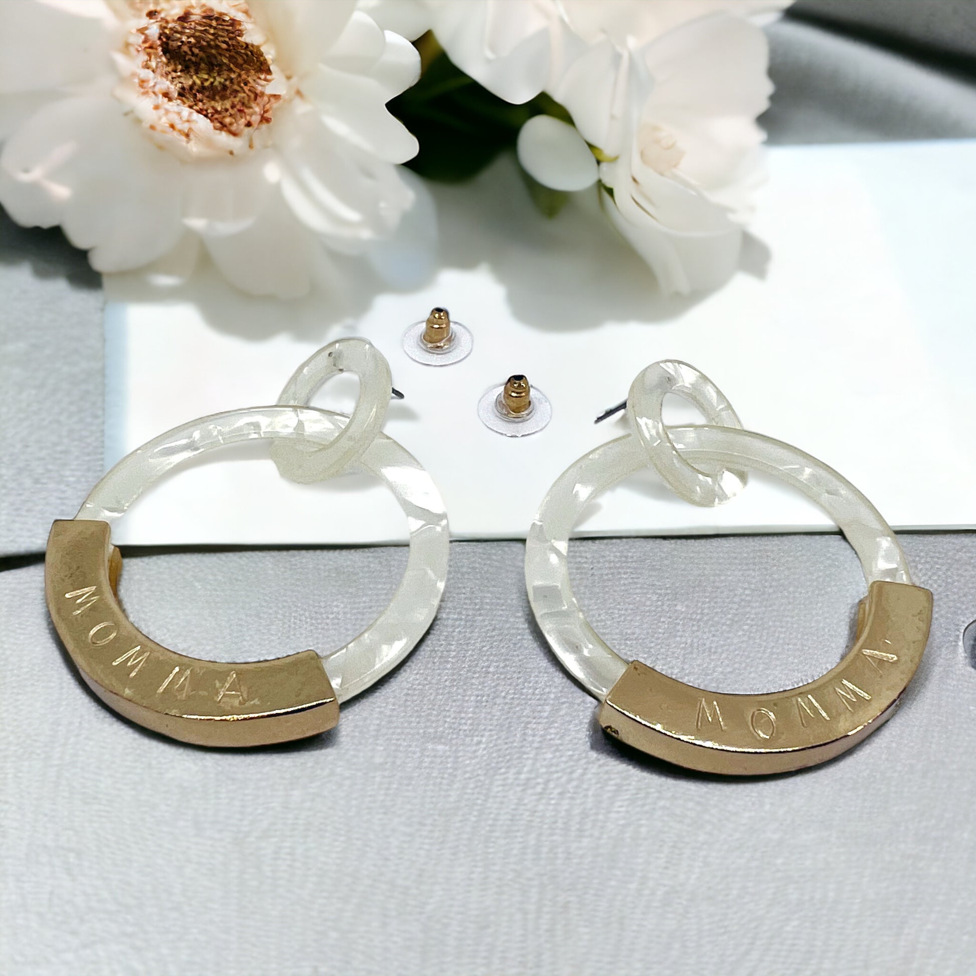 Unique Handmade Acrylic and Gold Earrings - "MAMA" Stamped - Great Gift for Mom!