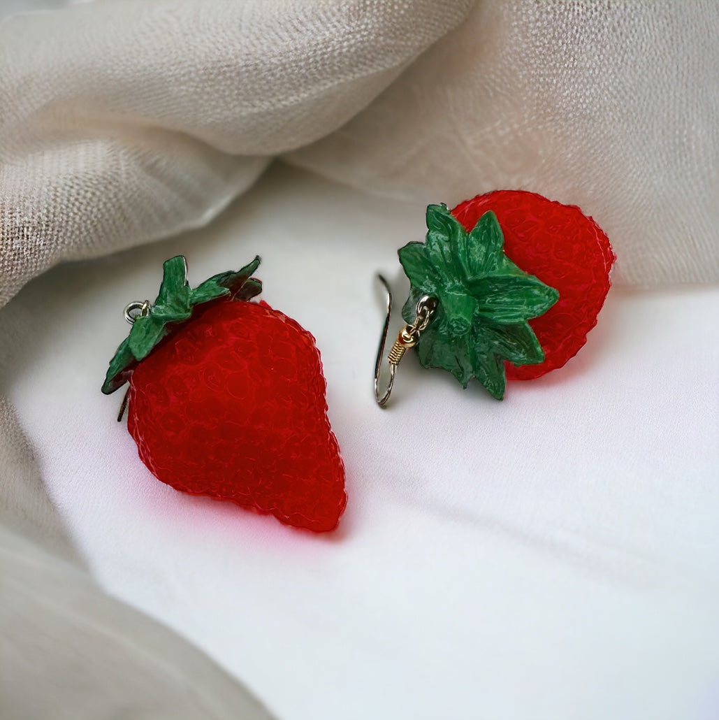 Add a splash of fruity fun to your accessory collection with our Realistic Strawberry Dangle Earrings! These handmade acrylic delights are the perfect way to celebrate summer vibes all year round.